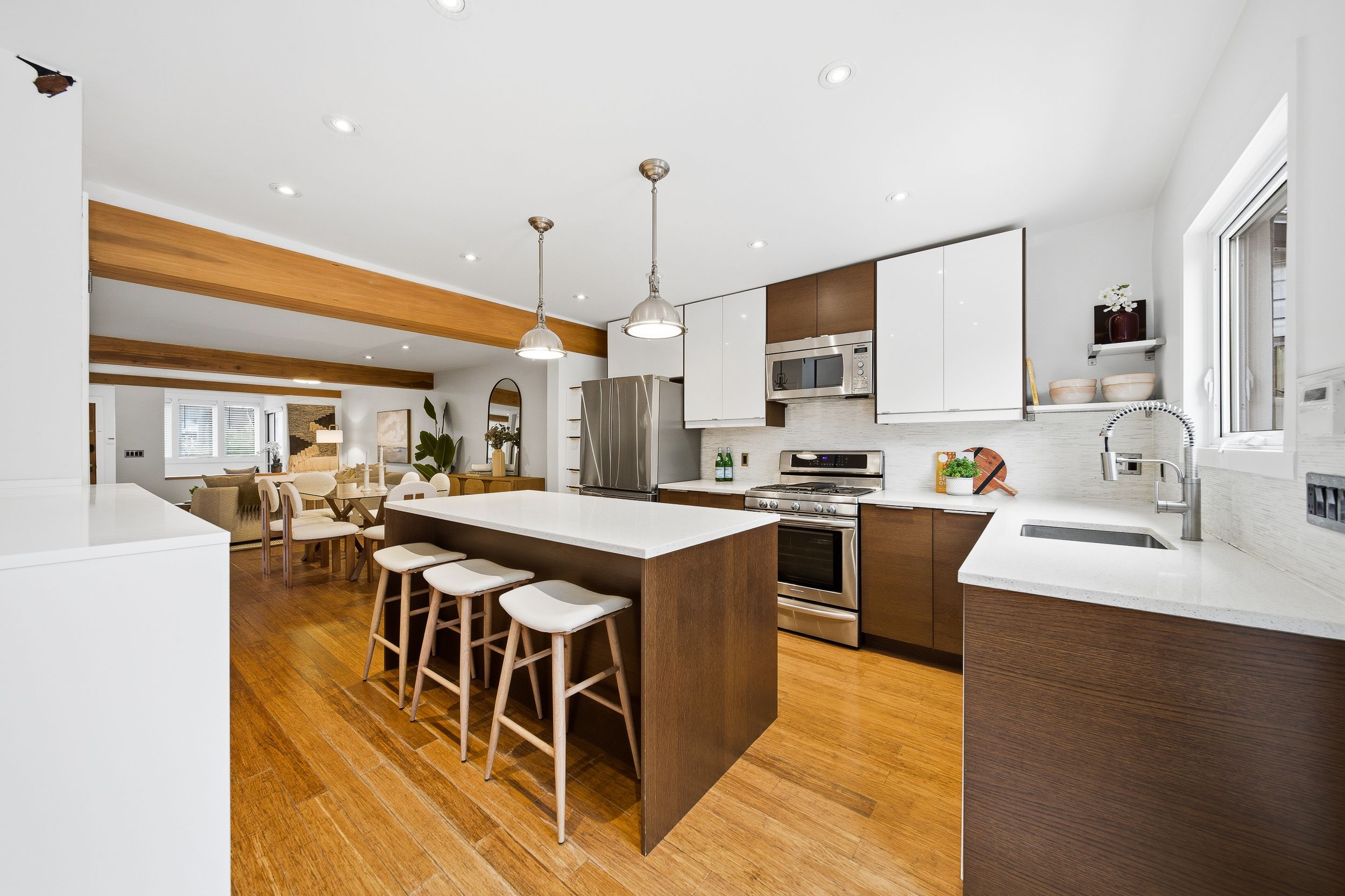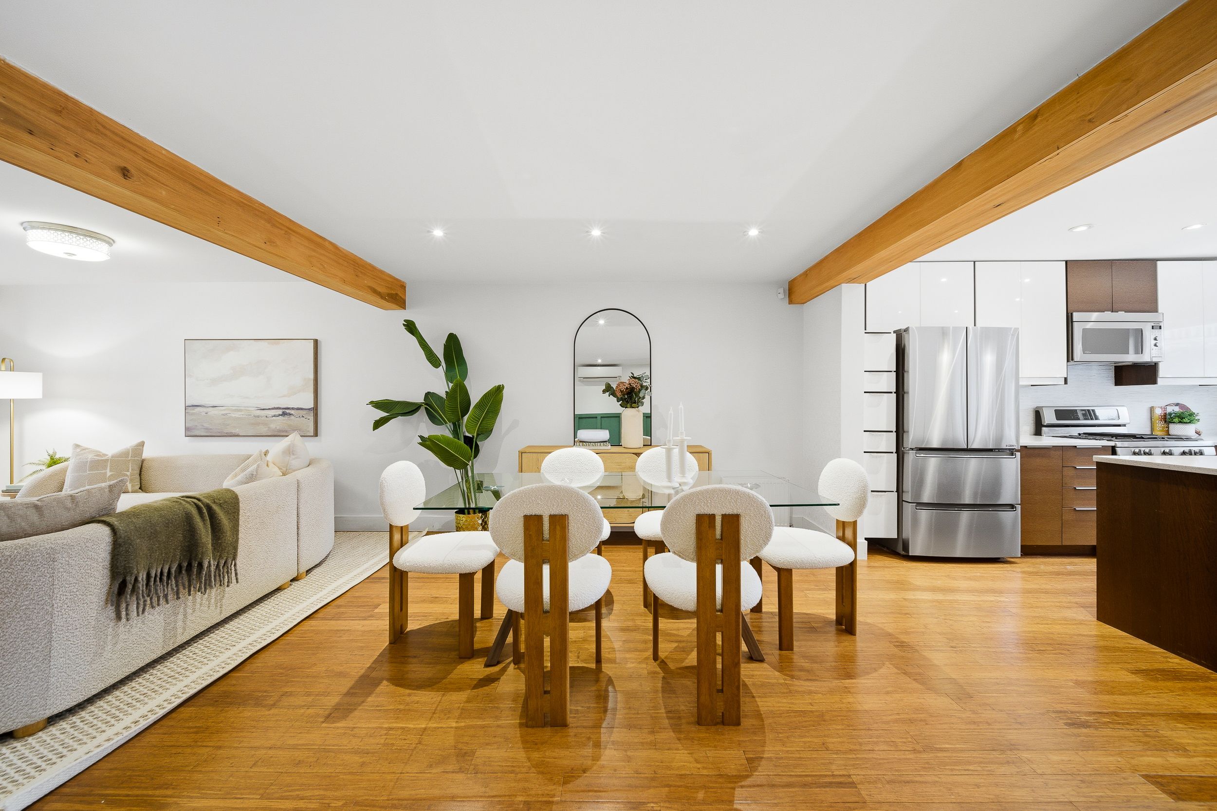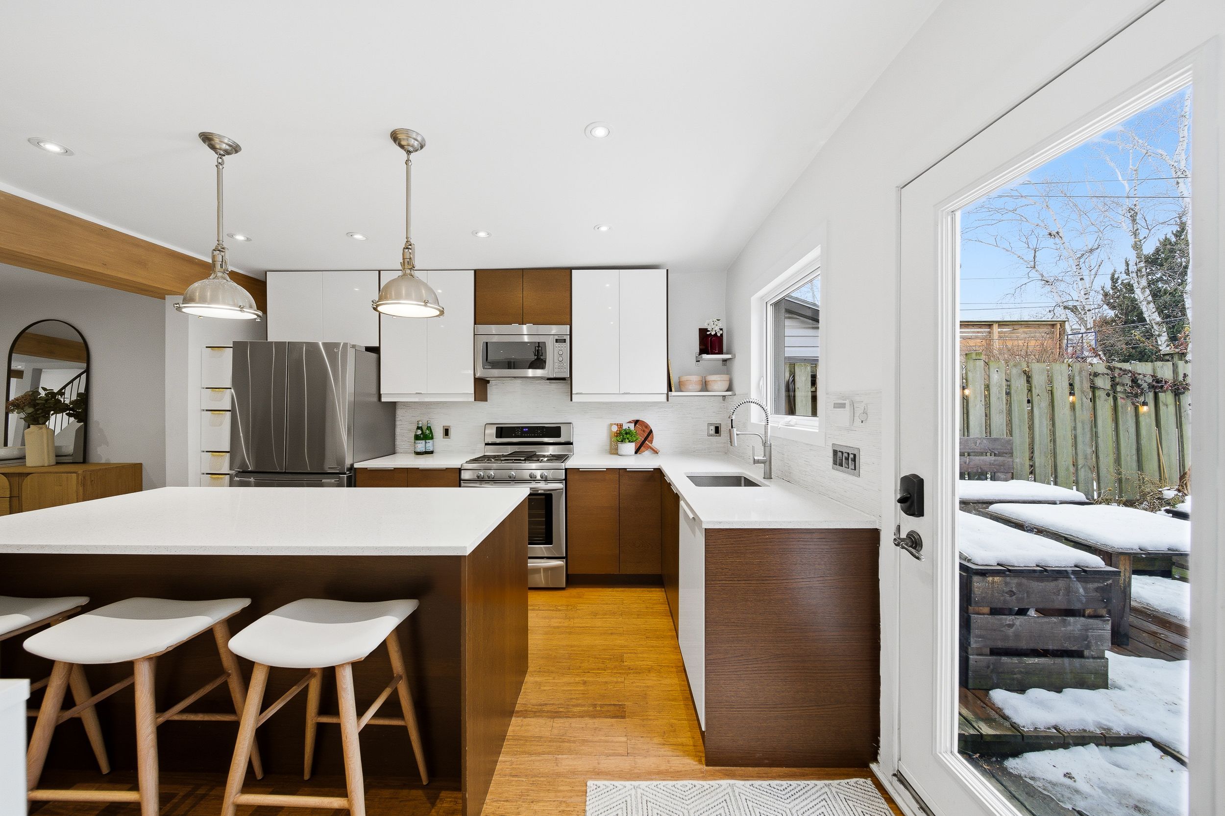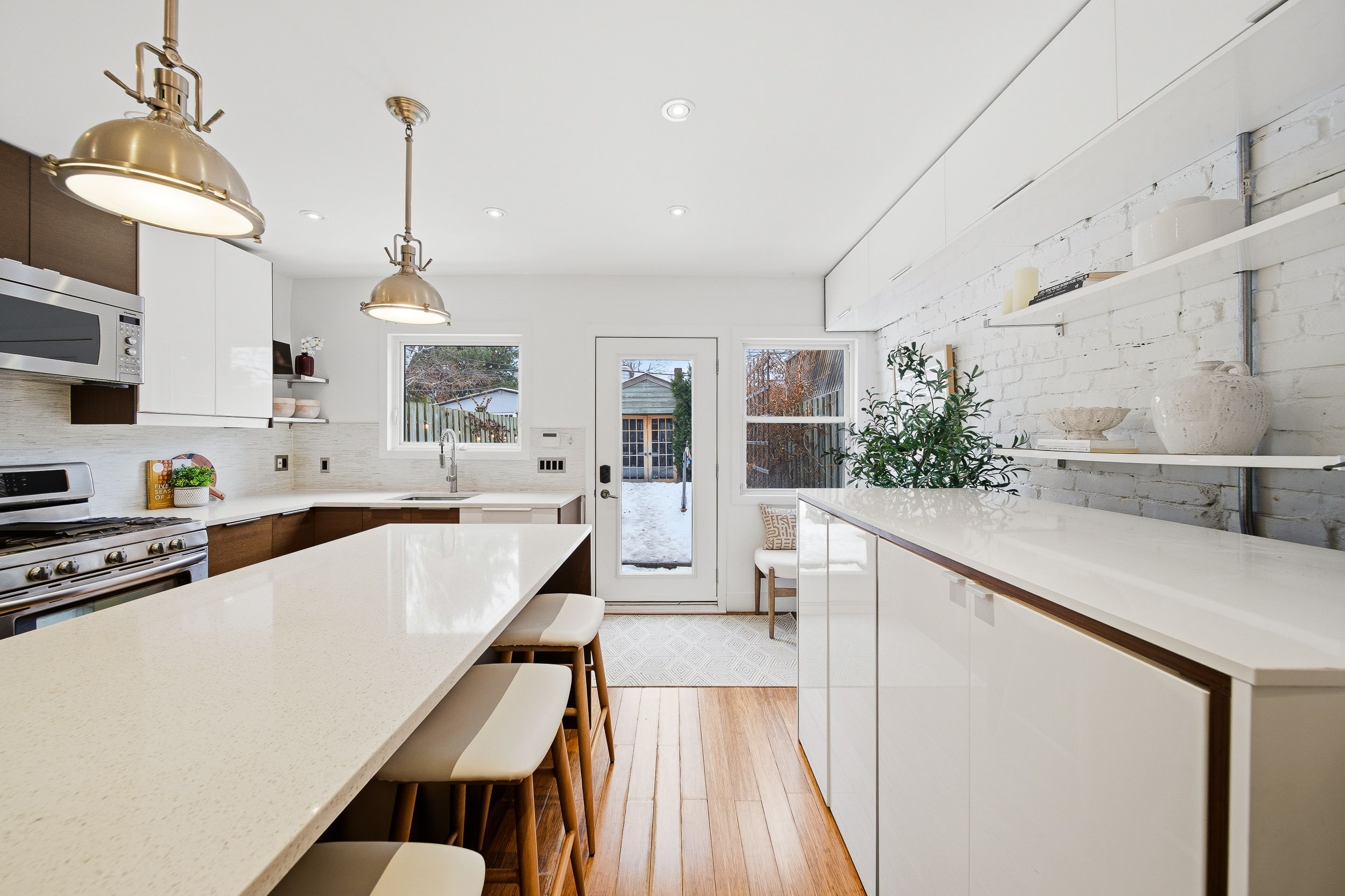 Rare opportunity in prestigious playter estates. This beautifully designed 2-bedroom home with laneway garage parking offers an exceptional blend of character, comfort, and ease in one of toronto's most sought-after neighborhoods. The open-concept main floor is anchored by an elegant foyer with slate flooring, double closet storage, and a preserved vintage heritage front door, while exposed wood beams and a refined kitchen with quartz countertops, a generous centre island with seating, and thoughtfully integrated storage create a welcoming space for both everyday living and entertaining. Thoughtful lighting upgrades throughout include fully dimmable main fixtures, along with dimmable pot lights in the primary bedroom closets and shower, allowing for both function and ambience. The spa-inspired bathroom features radiant heated floors, adding a touch of everyday luxury. Recent, comprehensive roof updates completed with transferable warranties provide significant peace of mind, while a west-facing, fully fenced garden with gas hookup offers a private outdoor retreat. Exceptionally low operating costs further enhance the home's appeal, all just steps to coveted jackman avenue junior public school, chester subway station, and the danforth's best cafés, shops, and restaurants in an address where lifestyle, community, and long-term value consistently command a premium.