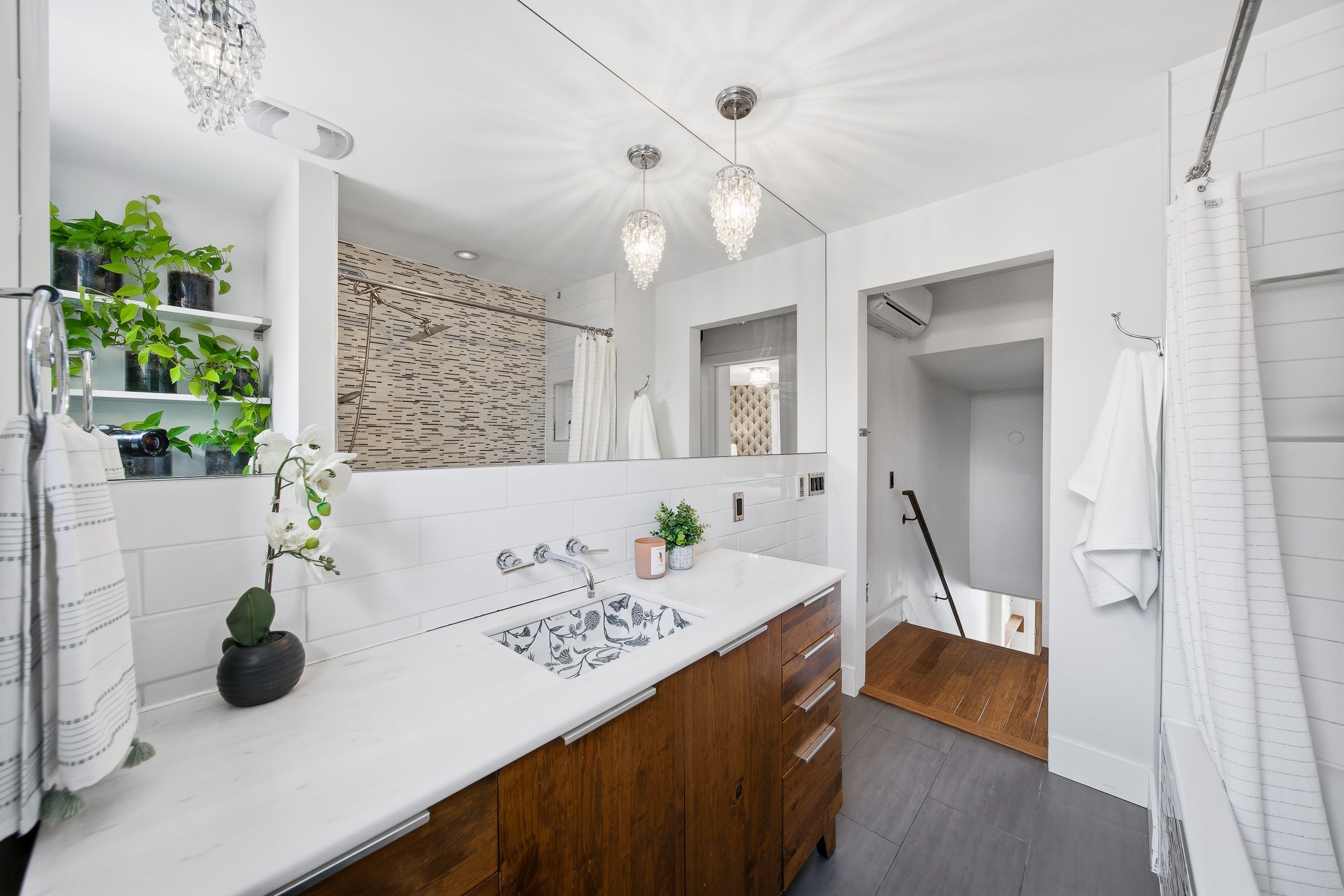 • Spa-inspired bathroom features radiant heated floors for daily comfort.