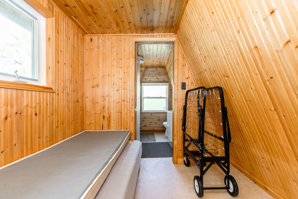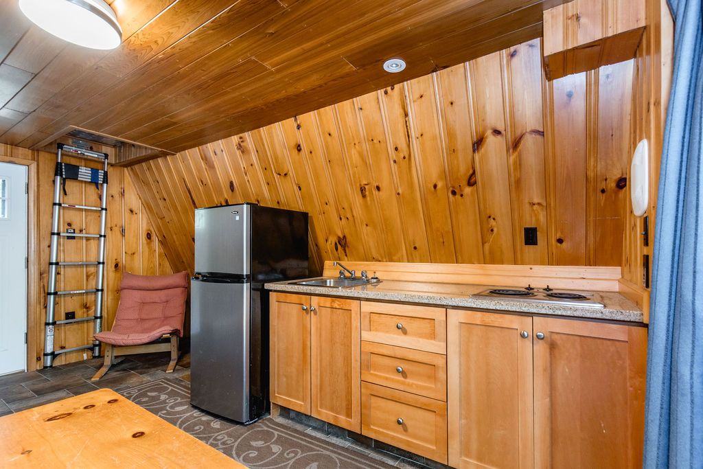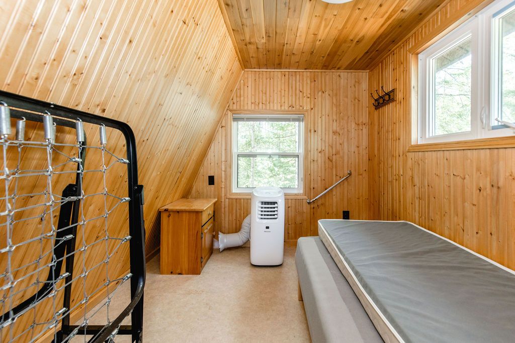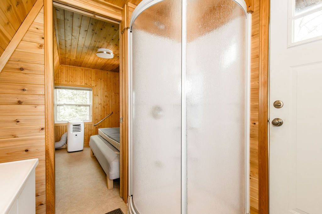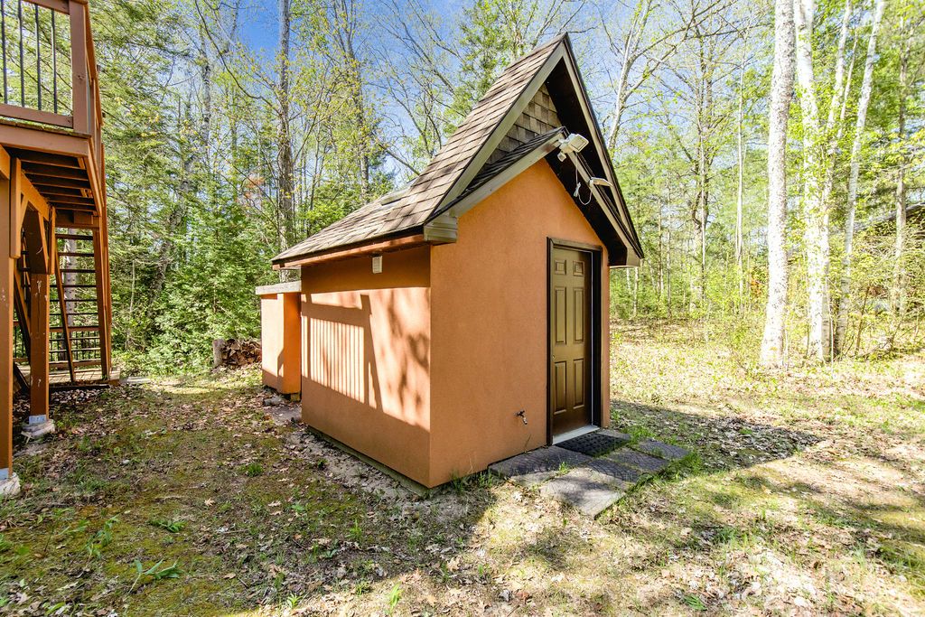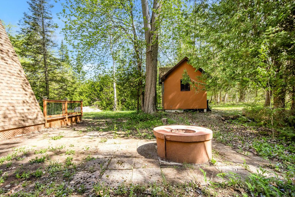 Charming a-frame cottage just a 9-minute walk from allenwood beach. Nestled at the end of a tranquil cul-de-sac, this delightful a-frame cottage is only a 9-minute walk from the beautiful allenwood beach area, offering the perfect blend of privacy, nature, and beachside relaxation. Set on a large, private lot, this property provides a peaceful retreat with easy access to one of the area's most scenic beaches. The renovated cottage features an inviting interior with natural cedar and pine finishes throughout. The cozy main floor is heated by a stunning brick fireplace with a double chimney, creating a warm ambiance for cooler evenings. For additional comfort, an electric built-in wall heater is also available. Step outside onto the back deck, where you'll find a bbq built into the chimney, ideal for entertaining or simply enjoying a peaceful afternoon. The compact kitchen is equipped with a fridge, sink, and tabletop stove perfect for preparing simple meals in your lakeside getaway. A full bathroom with a shower is located on the second floor, along with a comfortable bedroom offering a quiet space to relax. The property also features several unique and practical outdoor amenities. To the left of the cottage, a spacious shed with power and lighting offers ample storage or could be easily transformed into a charming guest bunkhouse. On the opposite side, a cedar bathhouse, connected to both the pump house and city water supply, provides convenient access to rinse off the beach before heading inside! Whether you're looking for a perfect family escape or a prime building lot for future development, this property offers endless potential. With it's serene location, thoughtful updates, and abundant space, its an ideal retreat or investment opportunity. Don't miss out on this unique opportunity -schedule your showing today!