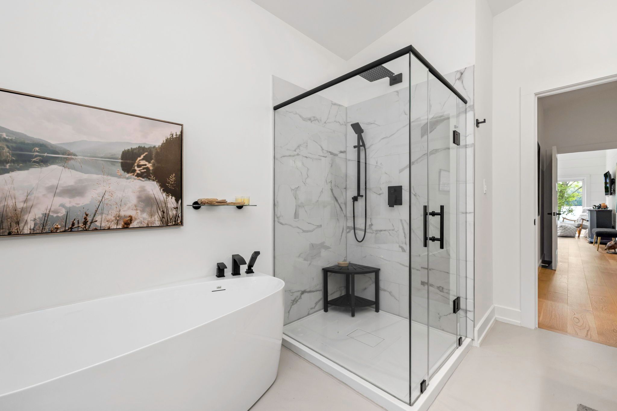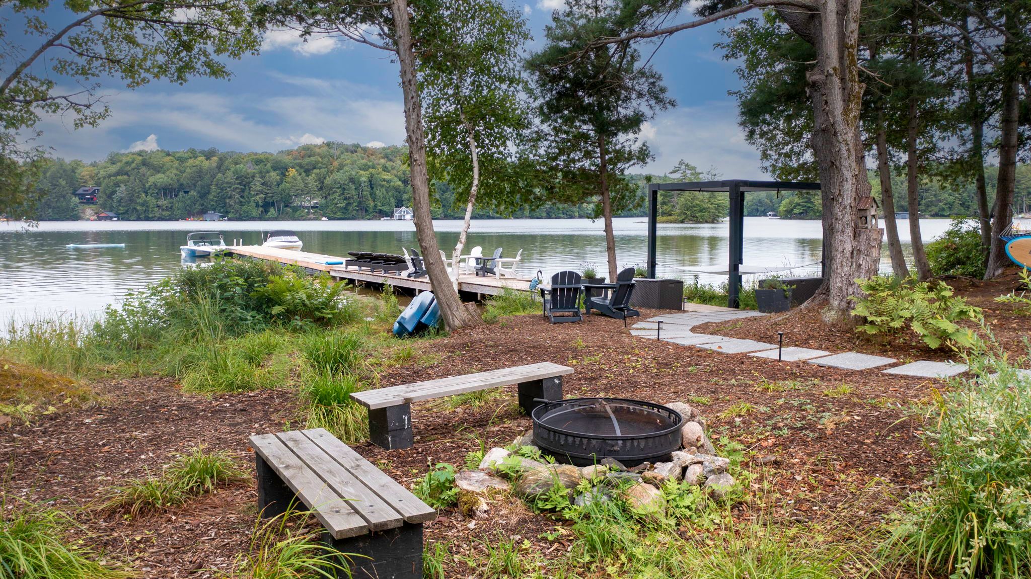 Welcome to 56 blair pt rd, a stunning four-bedroom, three-bath, four-season retreat nestled on the calm shores of little lake joseph on a private, level lakeside lot. Offering 2,205 square feet of thoughtfully designed living space, this recently completed 2023 custom build blends modern luxuries with muskoka charm. The heart of the home features an expansive open-concept living and custom kitchen area, highlighted by soaring ceilings and a striking floor-to-ceiling stone fireplace the perfect gathering space for family and friends. A sun-filled, four-season muskoka room extends the living space, offering the ideal spot to enjoy morning coffee, sunrises and lake views. Large windows frame sweeping southwest vistas, filling the home with natural light and showcasing breathtaking evening skies over the water to create a warm, inviting atmosphere, fully equipped for year-round living or as a seasonal getaway. With four spacious bedrooms and three well-appointed bathrooms, this property provides ample space for a multi-generational family and guests. Heated concrete floors in the foyer and bathrooms add extra comfort, while many interior doors are designed at 36 wide to assist those who may be mobility challenged. Step outside and enjoy the rare convenience of a level lot, where you can drive right up to the back door, and only six gentle granite steps lead you down to the shoreline. A large covered deck spans the back of the cottage for social gatherings with lakeside views. The landscaped grounds are complemented by a private sauna with lake views, a hot tub, gas fireplace on the deck, and a toja lakeside hammock perfect for unwinding. A spacious shed adds functionality and storage. A short drive to rosseau and port carling, a backup generator and bell fibre internet make this a seamless four-season getaway. Complete with all furniture, the home is move-in ready.