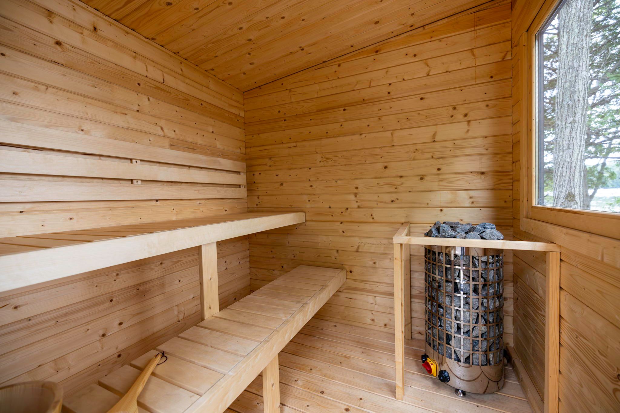 • Private sauna, hot tub, and hammock for ultimate relaxation outdoors.