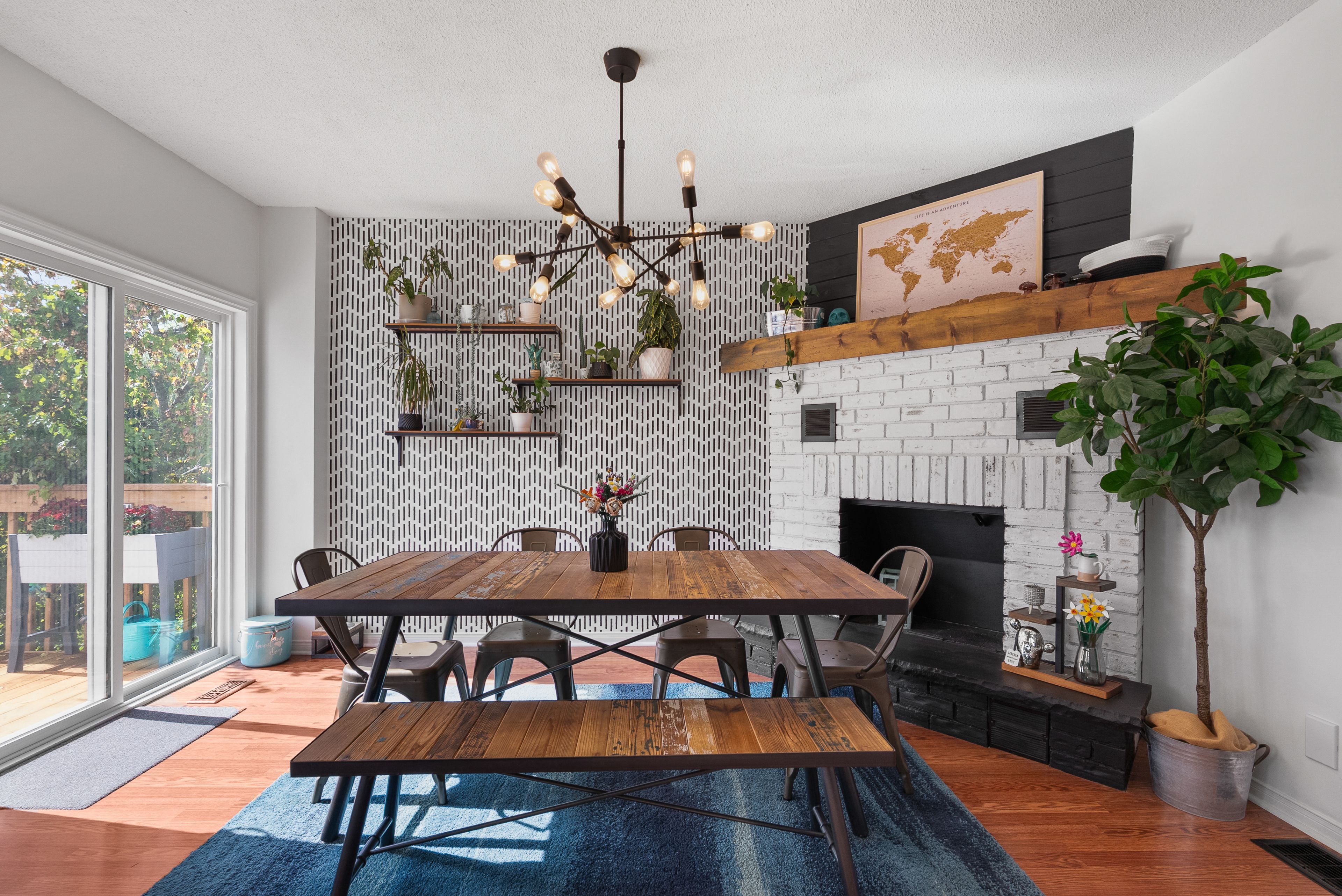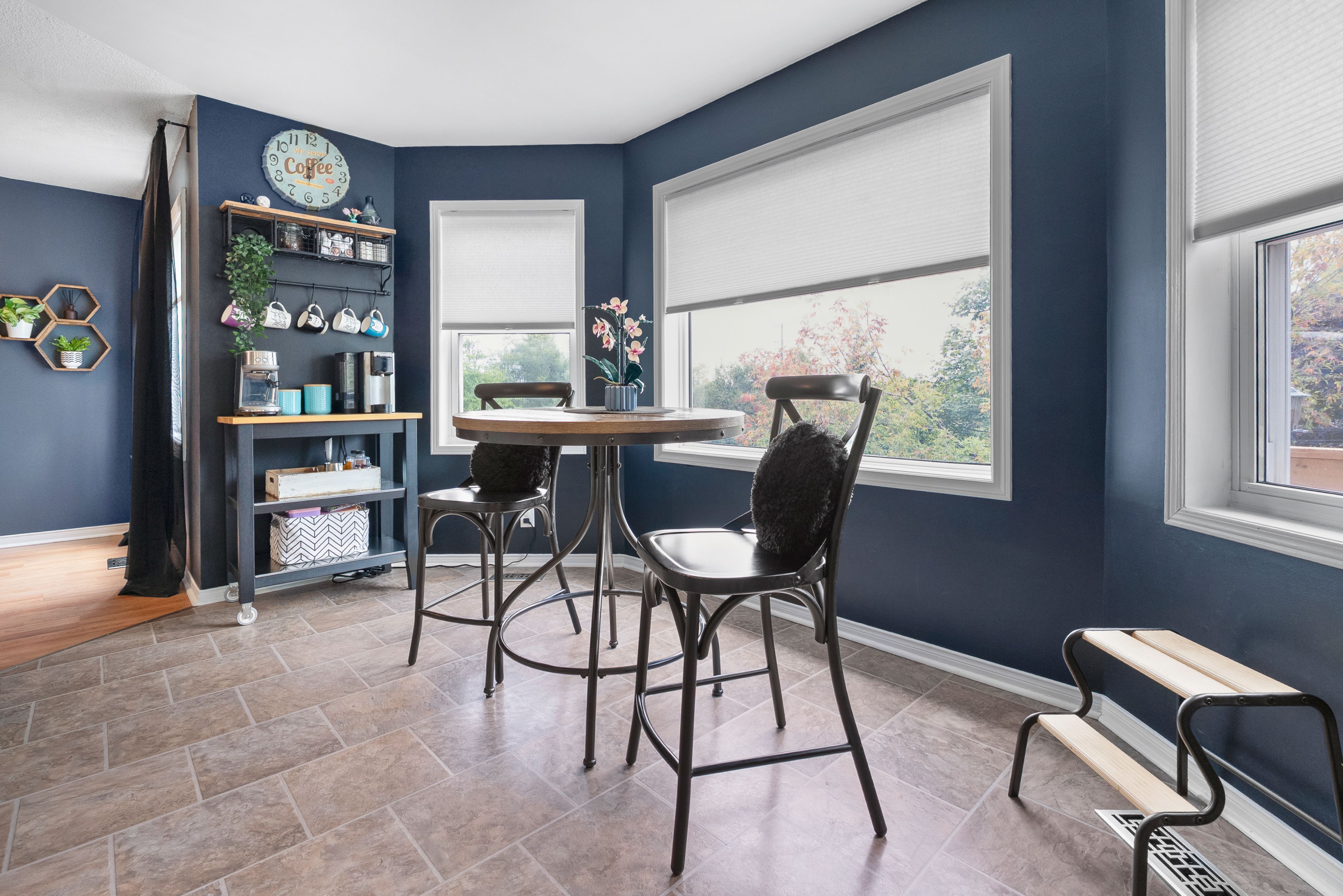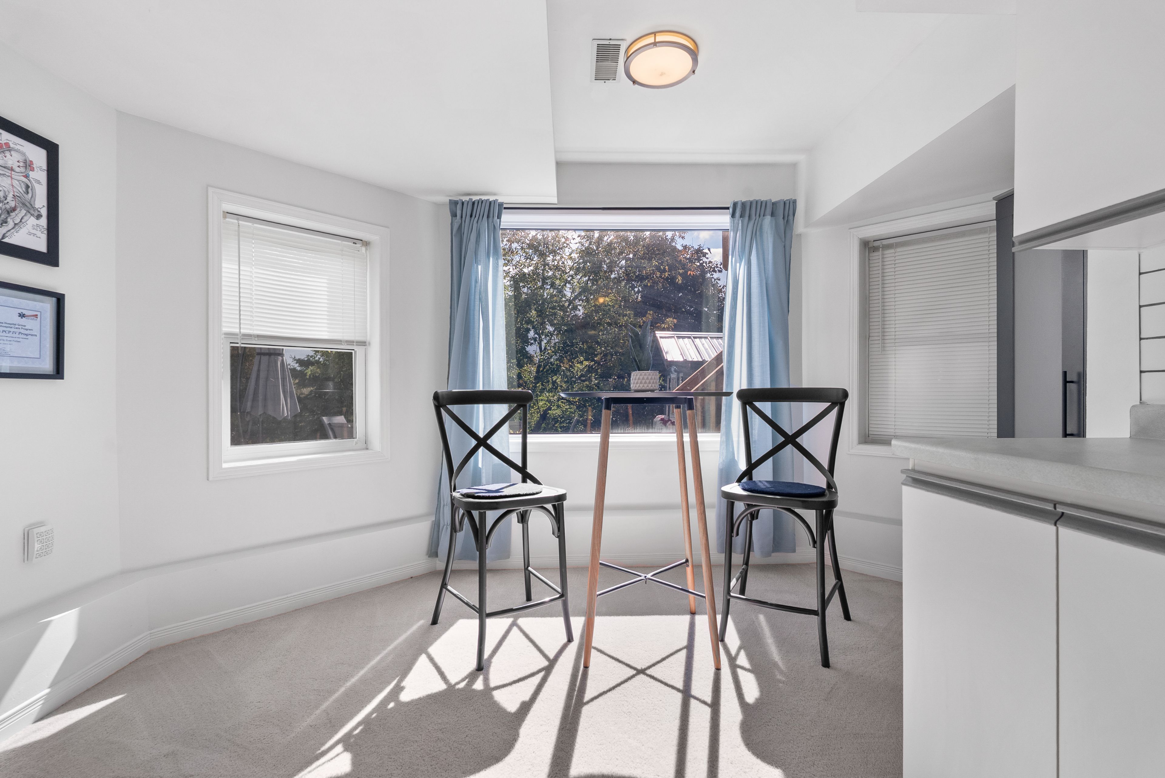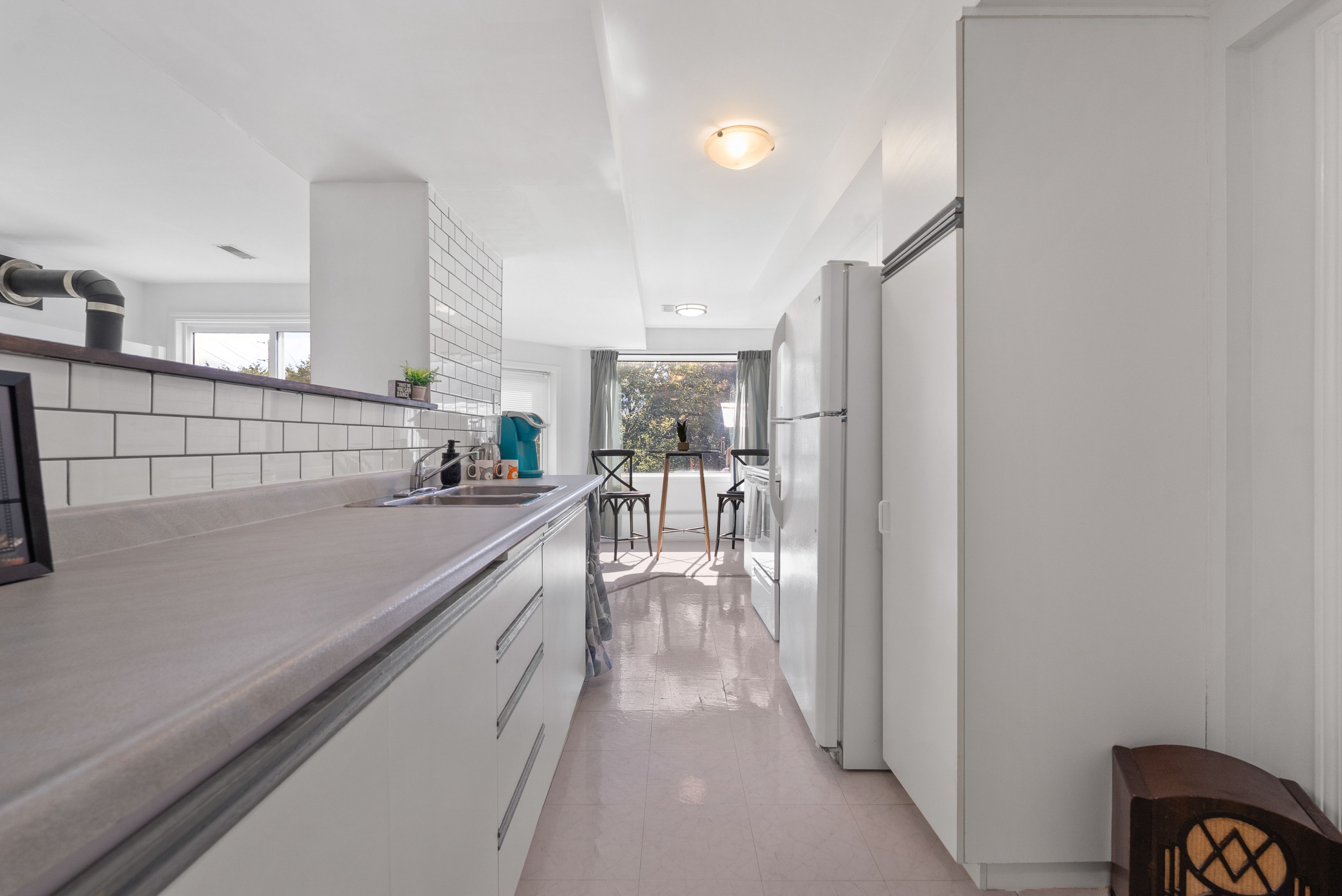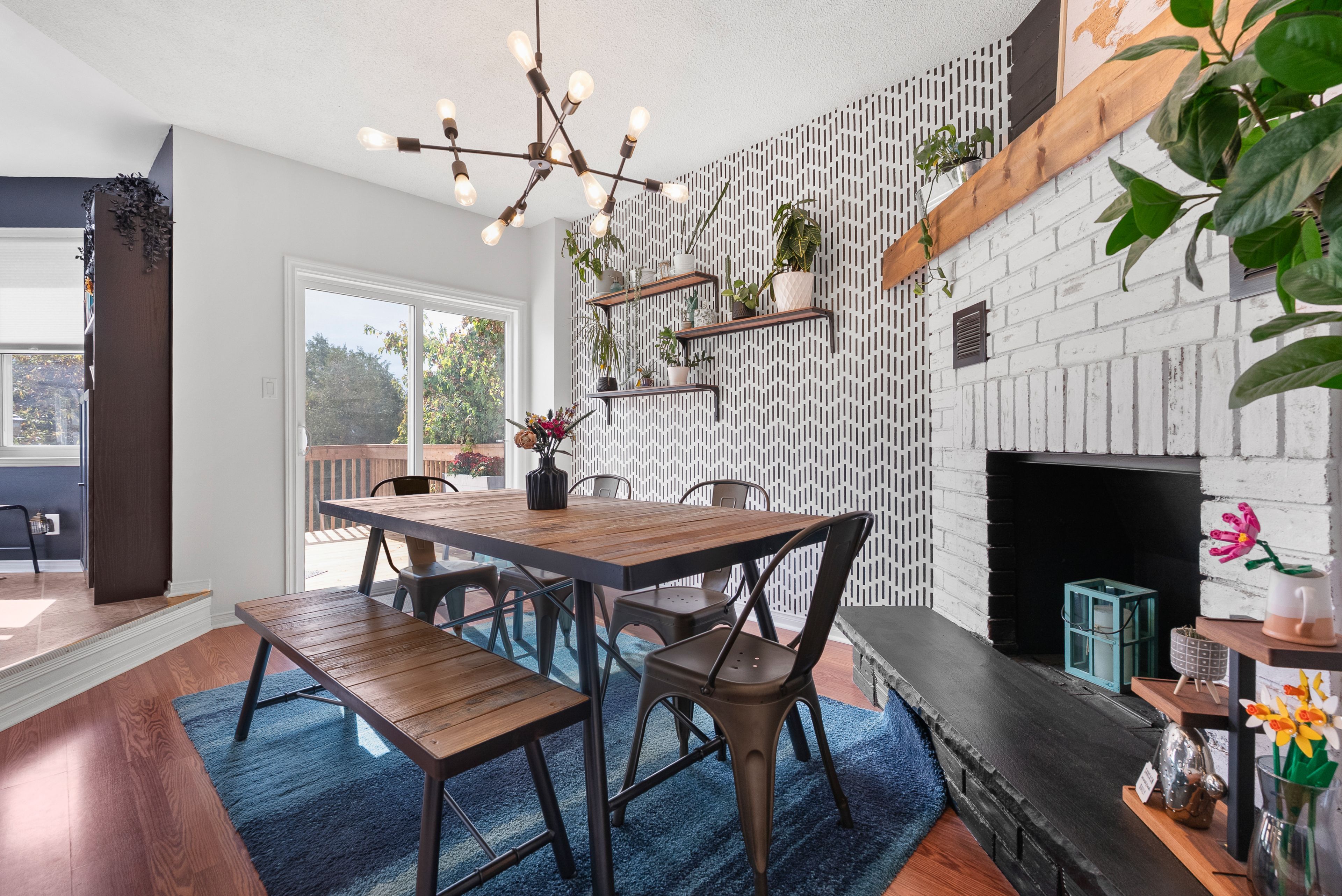 • Updated eat-in kitchen with a separate sunken dining area and deck access.
