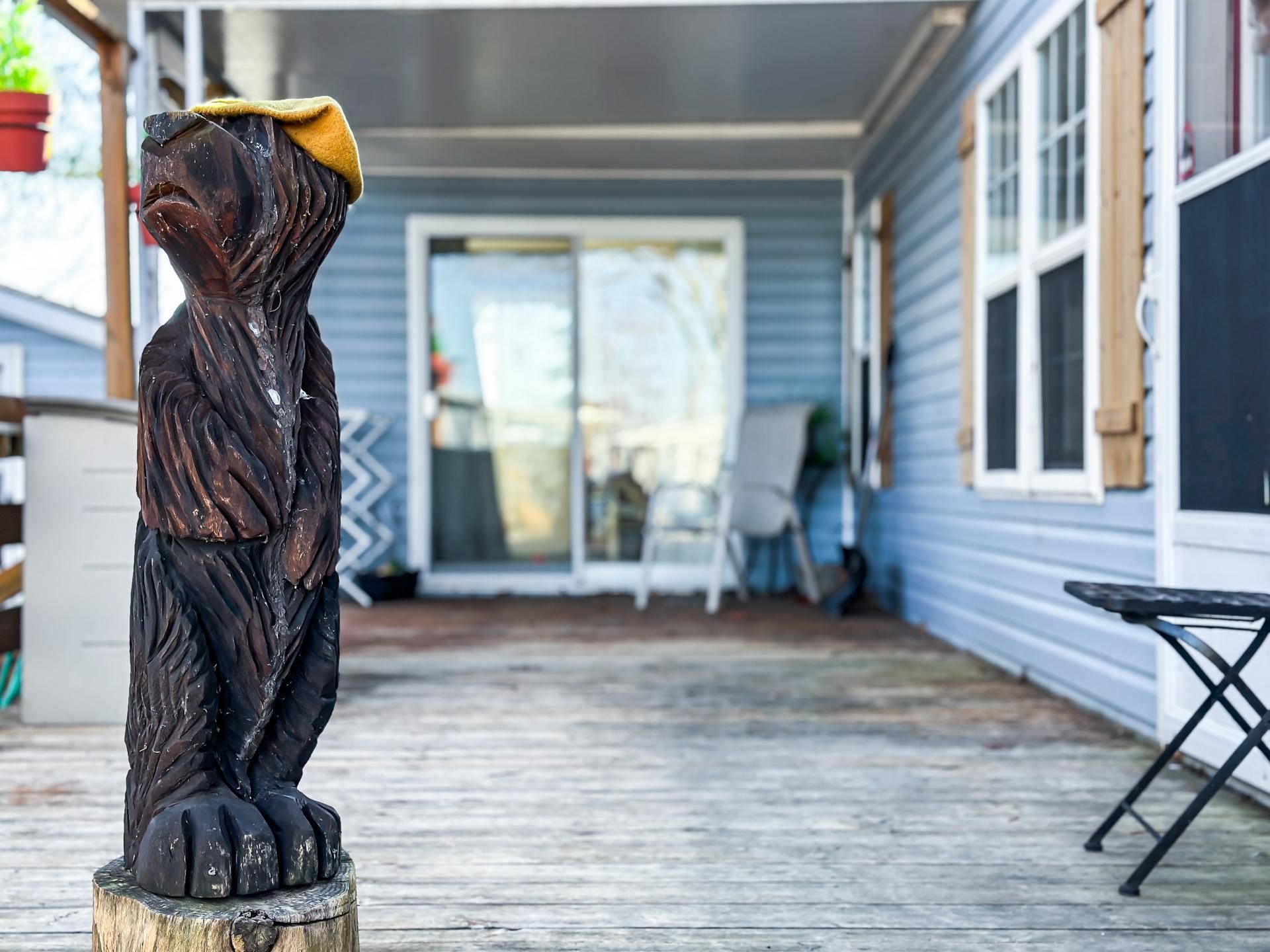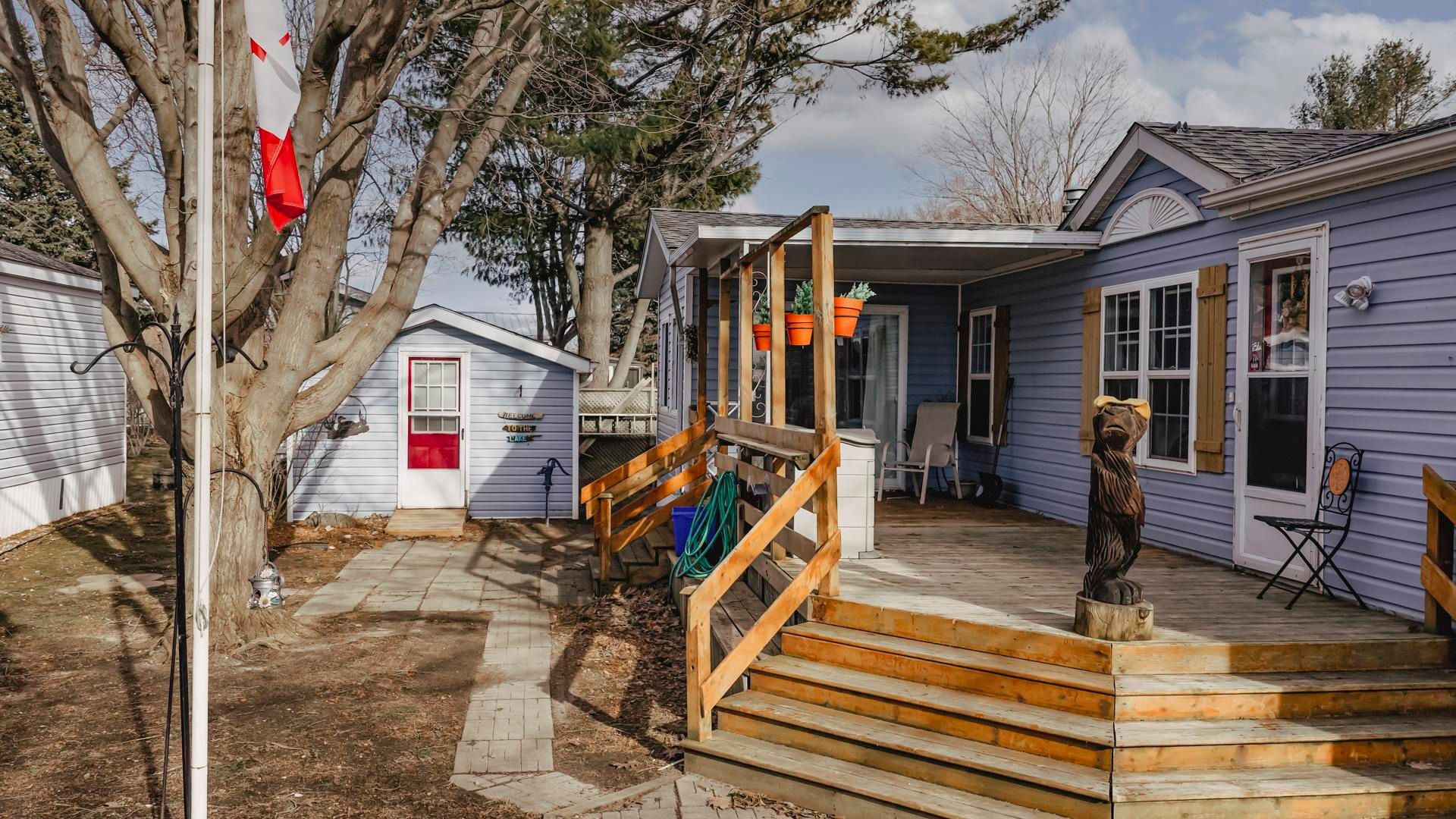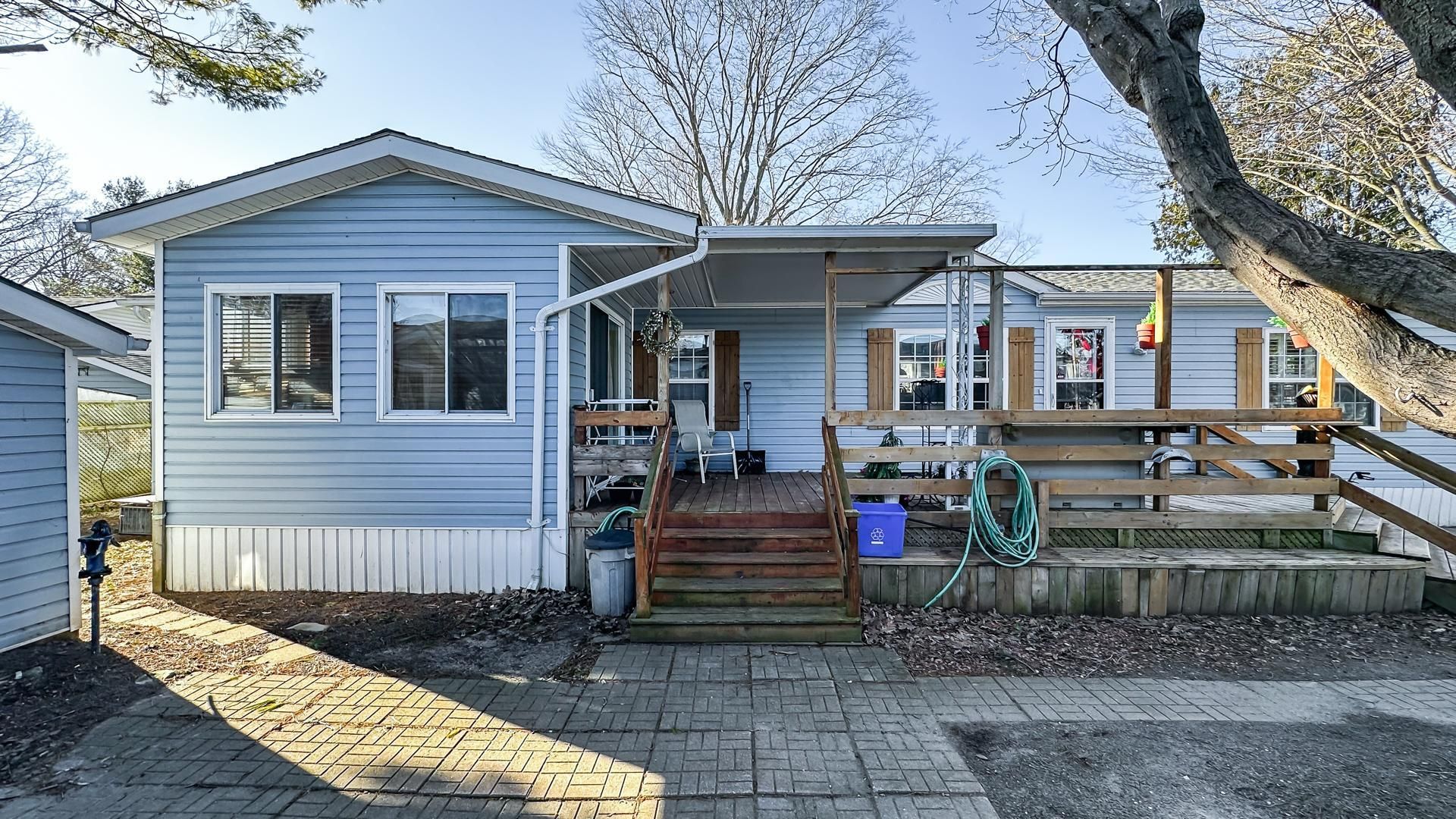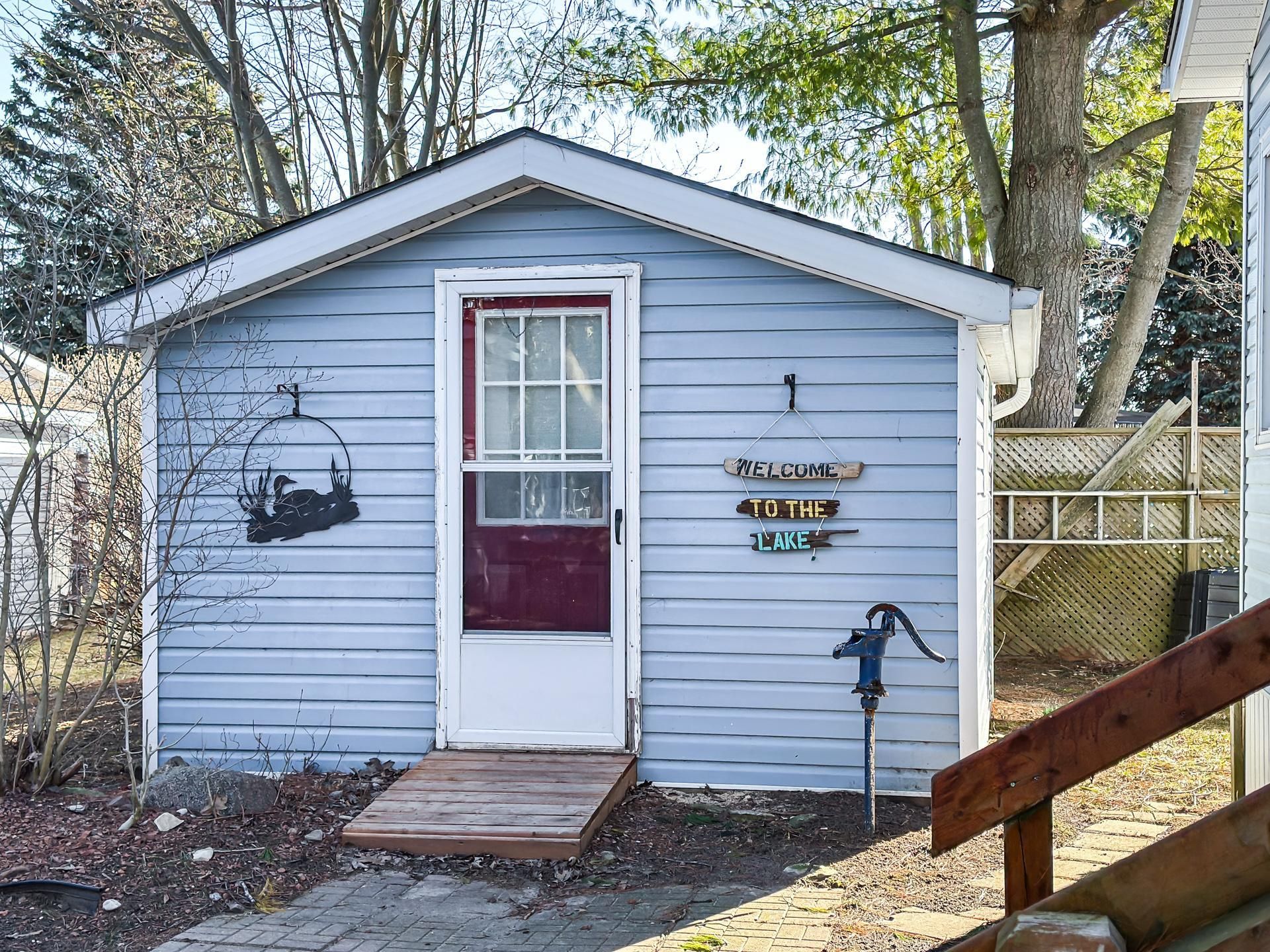 Is retirement and the sandy beach calling you? Spring is in full swing and this affordable and inviting 2-bedroom, 1-bath home offers comfort and charm in meneset on the lake. The open-concept kitchen with a dining area offers an abundance of cupboard space and countertop surface for food preparation. This space flows seamlessly into a spacious and cozy living room adorned with california shutters and stylish shiplap accent walls. Snuggle in and read a book in front of the gas fireplace. The layout includes a guest bedroom and a private primary bedroom. Enjoy morning coffee in the year-round bright sunroom or step outside onto the partially covered deck which provides the perfect spot to relax or entertain. This home is ideal for buyers looking to add their own personal touches, nestled in the land lease, 55+ community that offers access to a private sandy beach and an active clubhouse and community gardens. Store seasonal items in the shed, putter away in the gardens, relax on the deck or stroll to the beach for the day; the options are endless! Conveniently located near scenic trails, a golf course, and all the amenities in the town of goderich, this property presents a fantastic opportunity to enjoy both lifestyle and value.