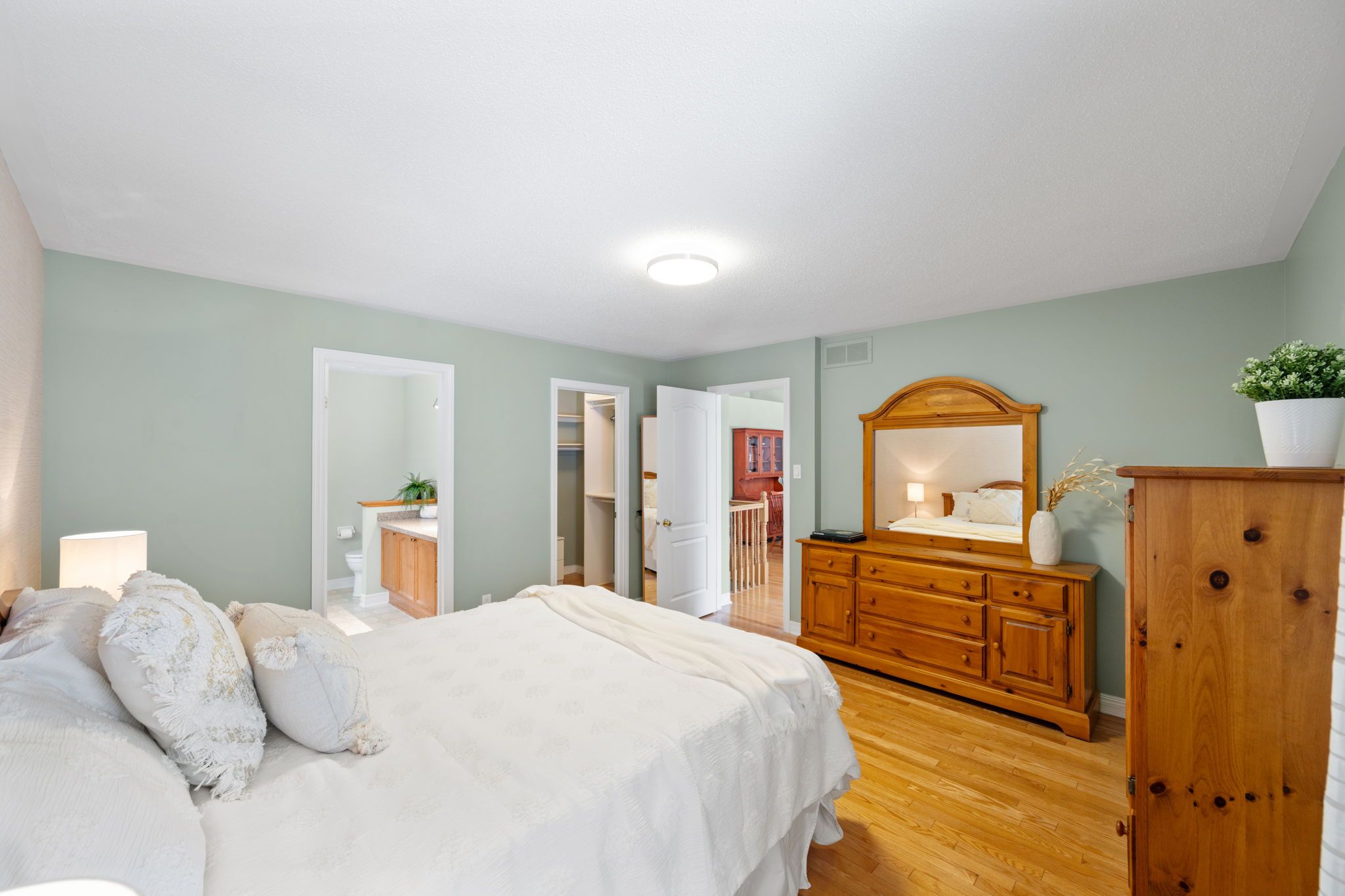 • Open living and dining areas with vaulted ceilings and hardwood floors.