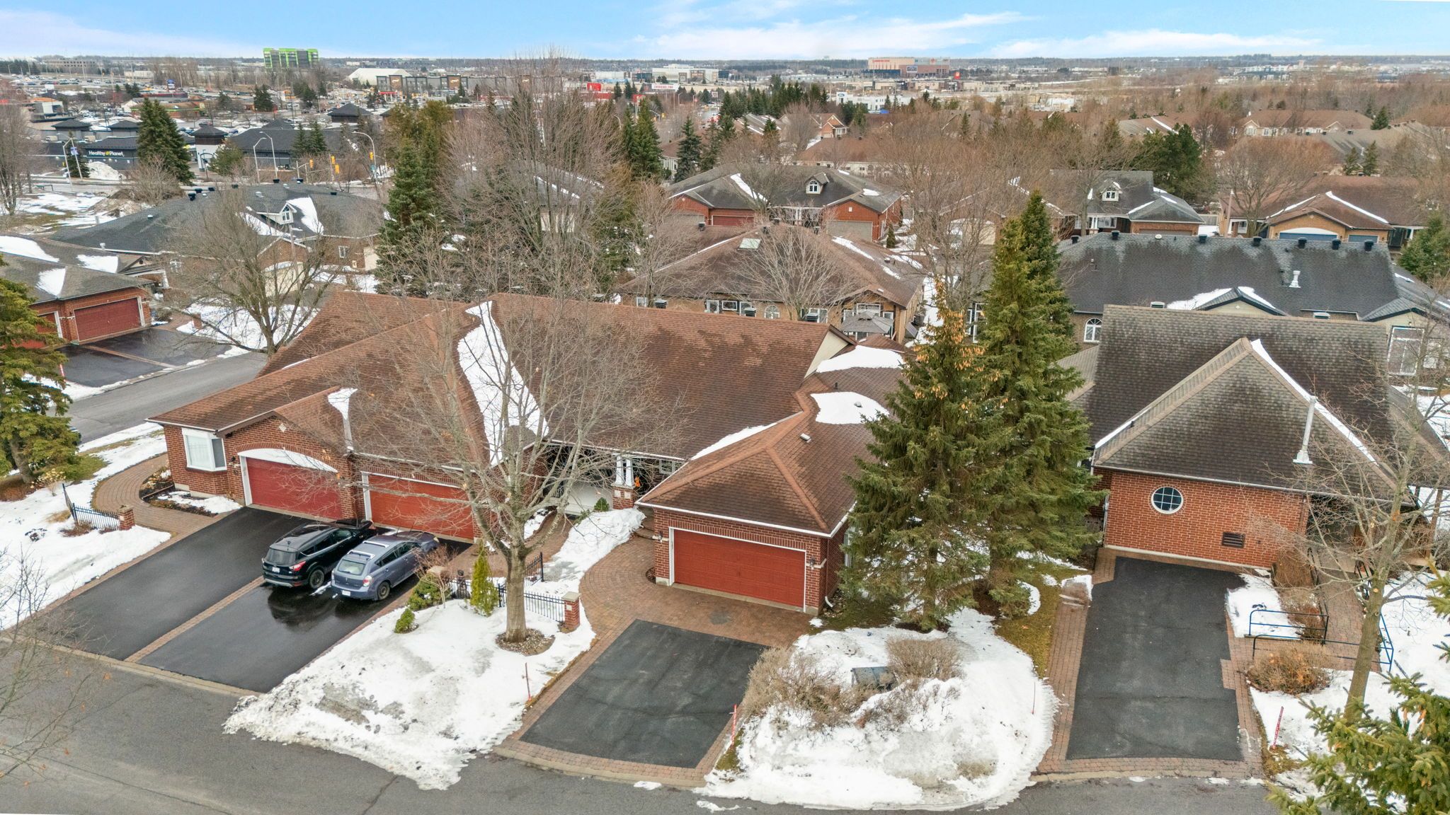 Welcome to to the 3 c's of 56 coulson: convenience, comfort & community! Situated at the cul-de-sac end of coulson, this executive adult lifestyle bungalow end unit in 'the pinnacle' community is in the heart of kanata lakes, walkable to so many amenities, restaurants, even the movie theatre, and a few minutes drive to so much more! This freehold, 2+1 bedroom, 3 full bath home offers gorgeous vaulted ceilings, hardwood floors, 2 gas fireplaces and a lovely bright sunroom at the back of the home. The formal dining room is open to the living room to maximize comfort and entertainment wow factor. At the back of the house, a bright sunroom is the perfect spot for a coffee and a book anytime of year. Walk down from there into the backyard to enjoy the stone patio amongst the trees. The eat-in kitchen comes with plenty of cabinetry, stone counters and a lovely large front window looking out onto the updated stone walkway and the court beyond. Retreat to a primary suite with private 5 piece bath and walk-in closet. Hardwood floors in the living/dining & primary are in excellent shape and bring a warmth of tone to the spaces. The 2nd main-floor bedroom is ideal for an office or guest suite with its adjacent full bathroom. A main floor laundry room is a great convenience. On the lower level, the family room is vast, and warmed by the 2nd gas fireplace. The 3rd bedroom, the 3rd full bath, and an expansive unfinished workshop/utility room/storage area complete the lower level. The 2-car garage, all brick exterior and concrete front porch add curb appeal and function. In addition to a great home, you find great community here. Pinnacle residents enjoy a thriving private club house with many activities including pot lucks, bridge, dominoes, yoga and euchre. (yearly fee of $425 for clubhouse association). With a fantastic walk score, this home offers the ultimate in convenience and comfort! Poly b plumbing replaced with pex in 2026.