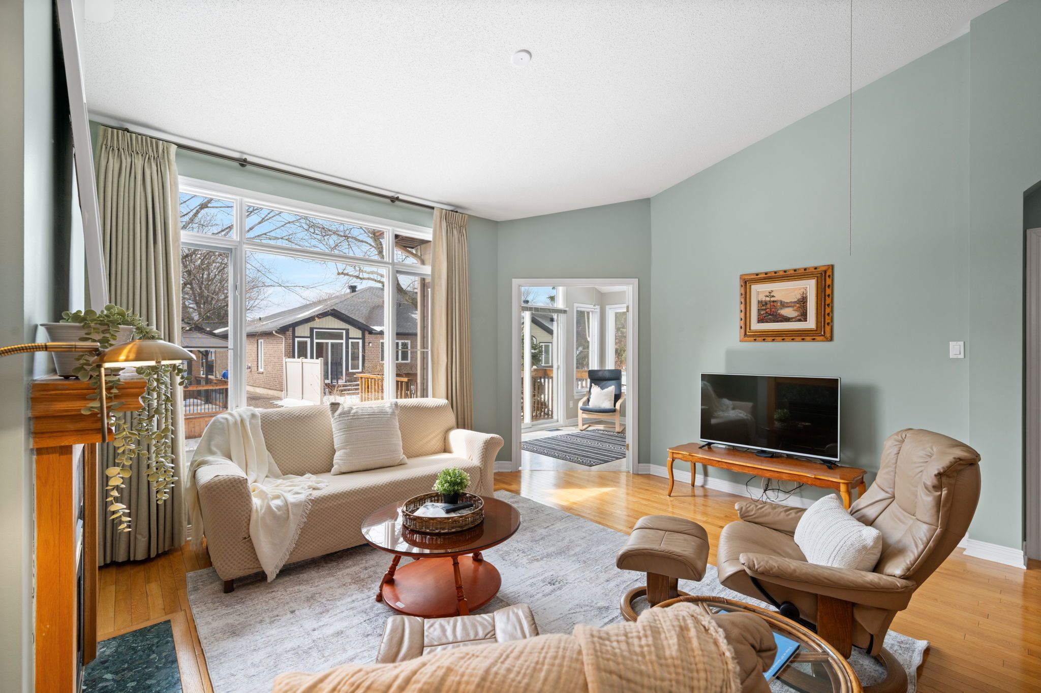 Situated on a cul-de-sac, walking distance to a vast choice of retail, restaurant and entertainment, this freehold executive adult lifestyle bungalow end unit in 'the pinnacle' community is in the heart of kanata lakes. With 2+1 bedrooms and 3 full baths, this home offers gorgeous vaulted ceilings, hardwood floors, 2 gas fireplaces and a lovely bright sunroom at the back of the home. The formal dining room is open to the living room to maximize comfort and entertainment wow factor. At the back of the house, a bright sunroom is the perfect spot for a coffee and a book anytime of year. Walk down from there into the backyard to enjoy the stone patio amongst the trees. The eat-in kitchen comes with plenty of cabinetry, stone counters and a lovely large front window looking out onto the updated stone walkway and the court beyond. Retreat to a primary suite with private 5 piece bath and walk-in closet. Hardwood floors in the living/dining & primary are in excellent shape and bring a warmth of tone to the spaces. The 2nd main-floor bedroom is ideal for an office or guest suite with its adjacent full bathroom. A main floor laundry room is a great convenience. On the lower level, the family room is vast, and warmed by the 2nd gas fireplace. The 3rd bedroom, the 3rd full bath, and an expansive unfinished workshop/utility room/storage area complete the lower level. The 2-car garage, all brick exterior and concrete front porch add curb appeal and function. In addition to a great home, you find great community here. Pinnacle residents enjoy a thriving private club house with many activities including pot lucks, bridge, dominoes, yoga and euchre. (yearly fee of $425 for clubhouse association). With a fantastic walk score, this home offers the ultimate in convenience, community and comfort! Poly b plumbing replaced with pex: 2026; flat ceiling on lower level: 2026; deck & patio: 2024; front walkway and low-rise, mobility friendly entry stairs: 2025; roof with 40 yr shingles: 2012.