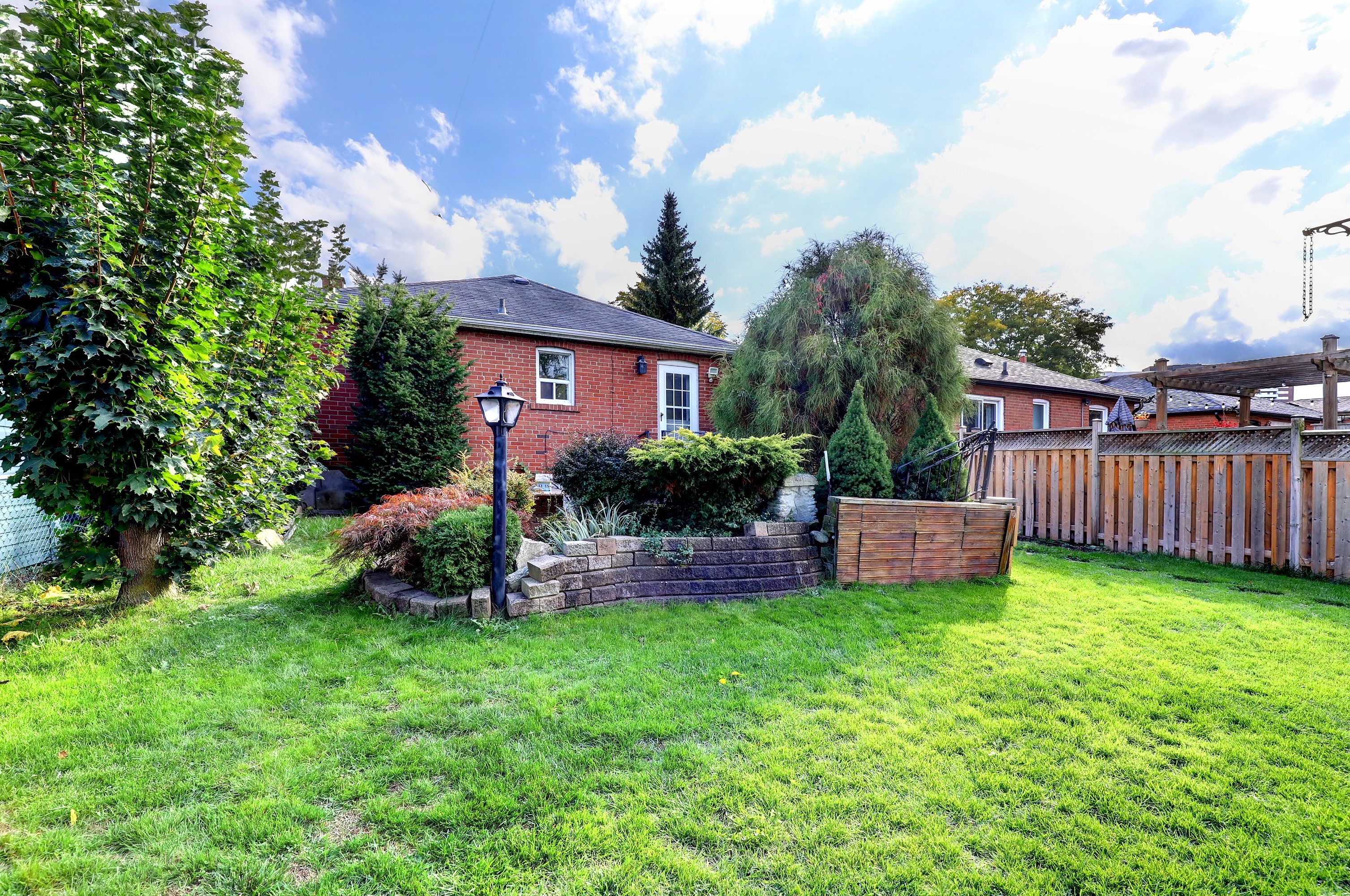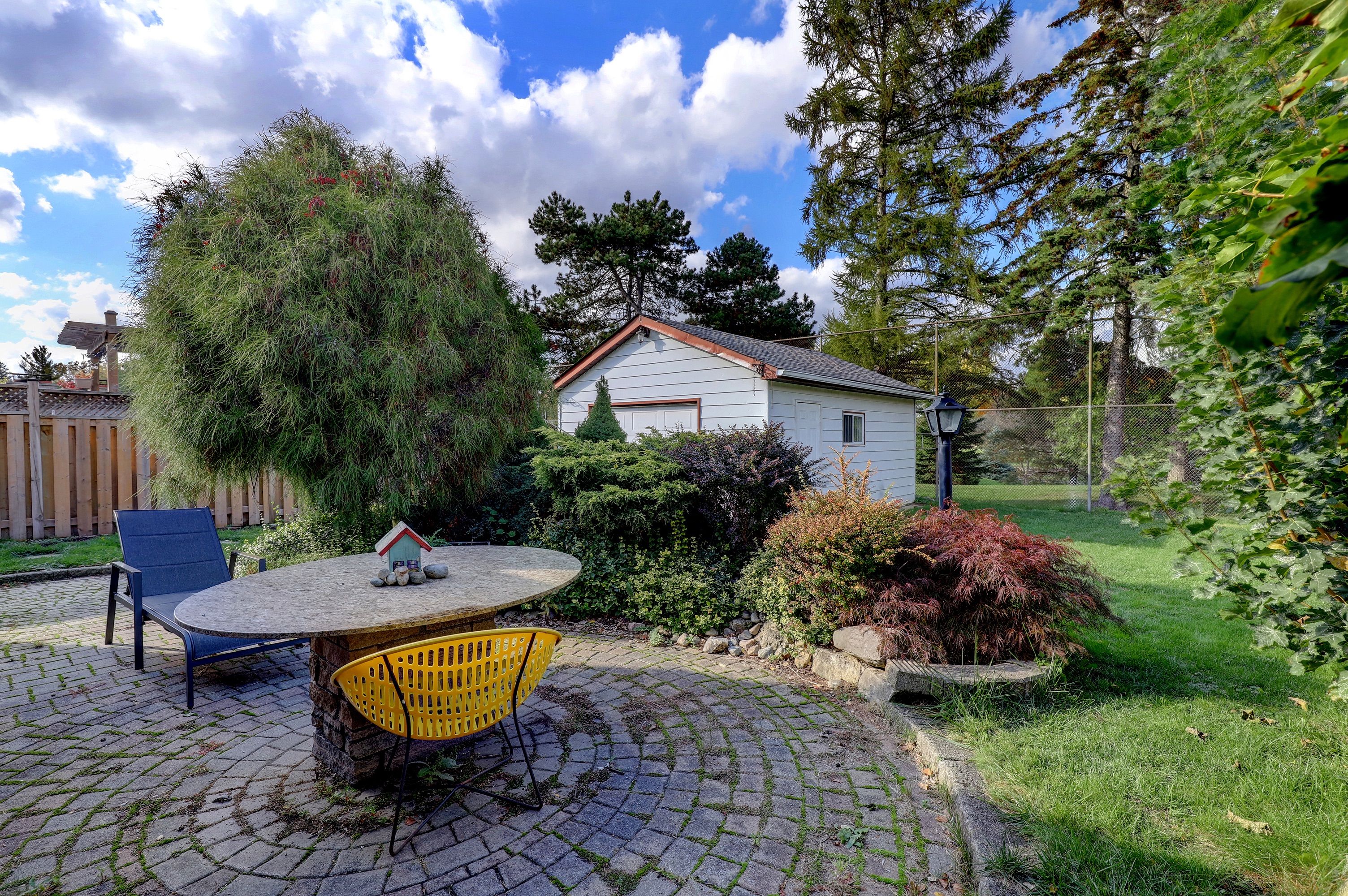 • Private backyard with interlock patio and mature gardens.