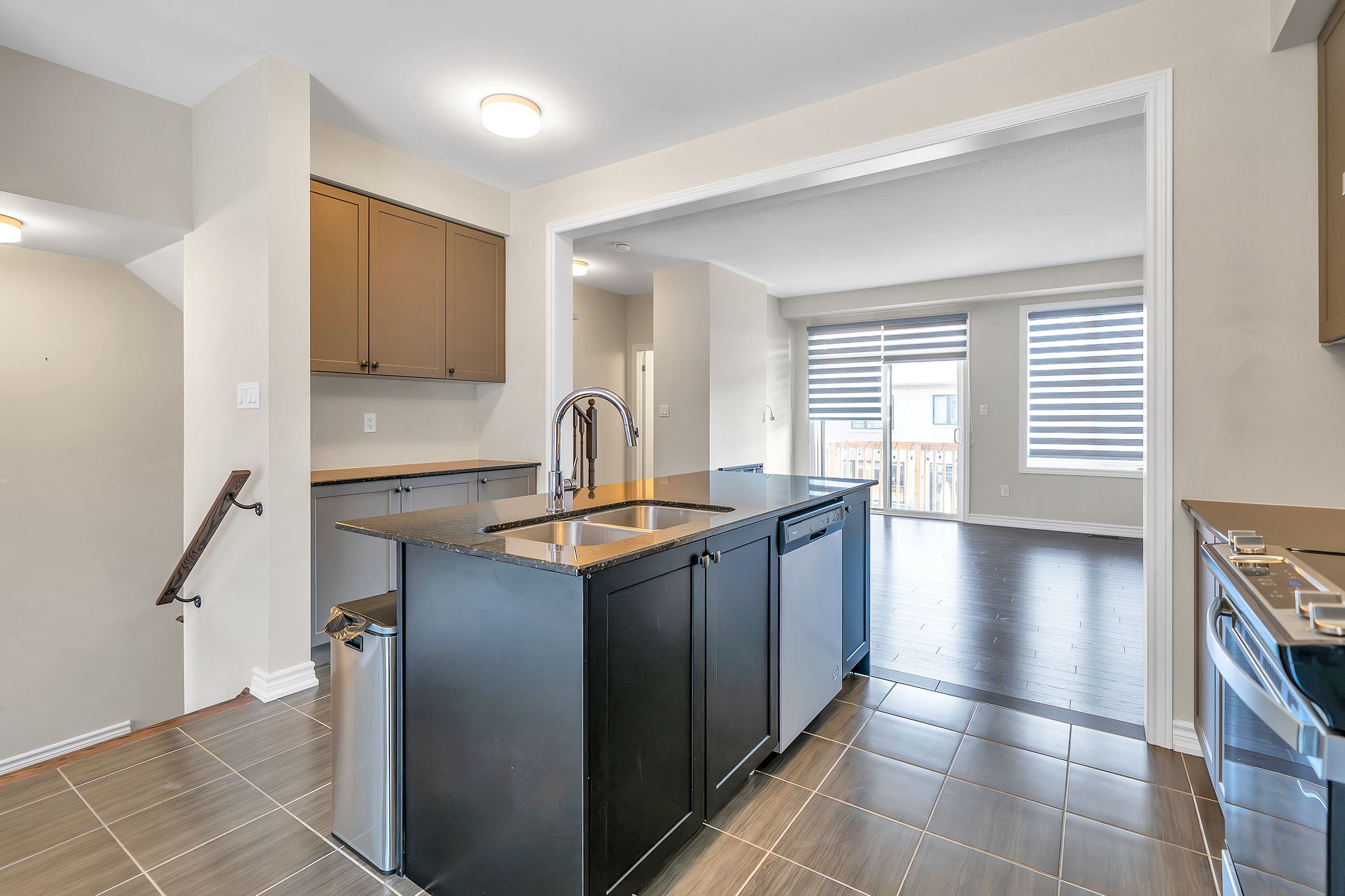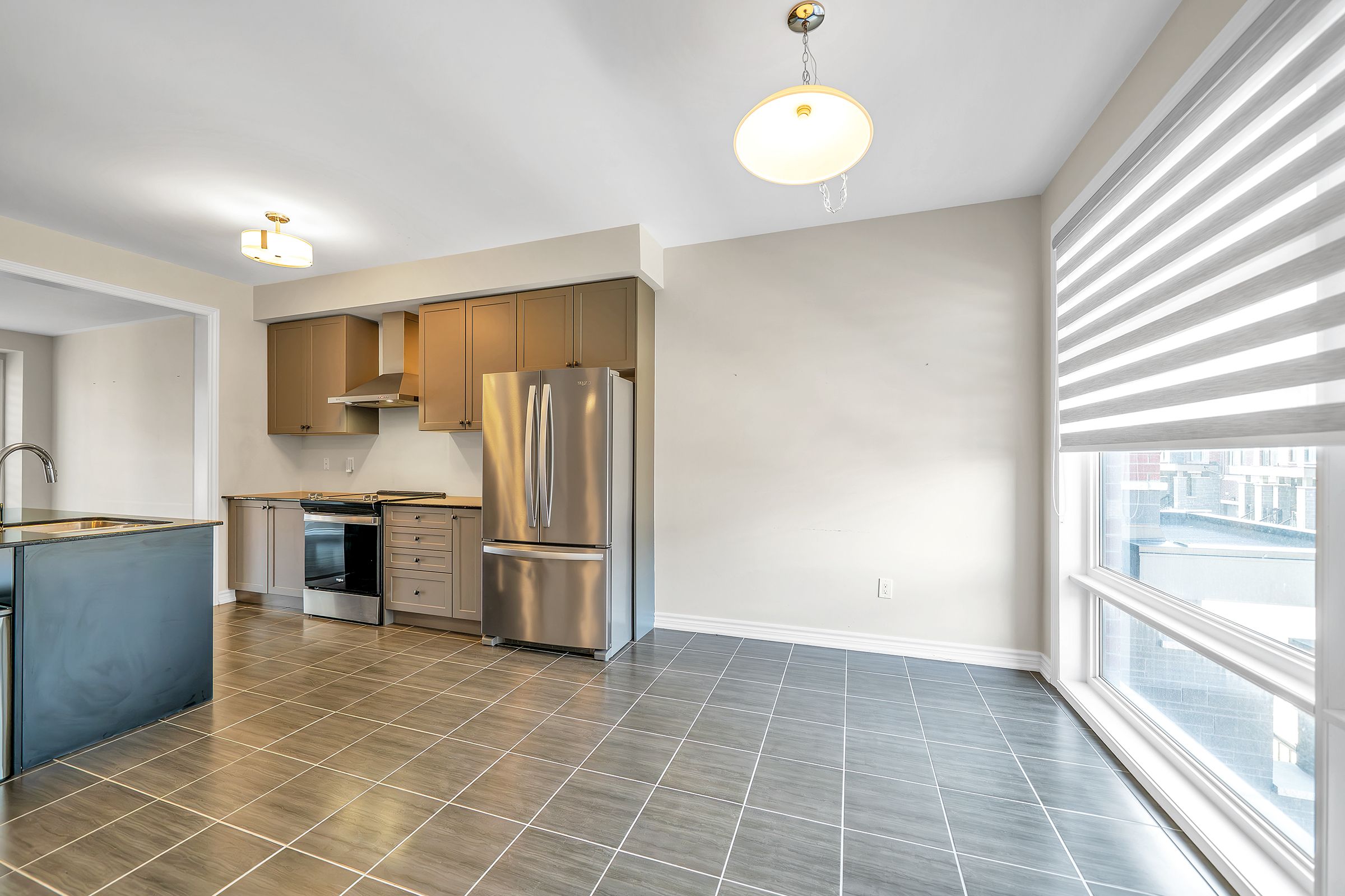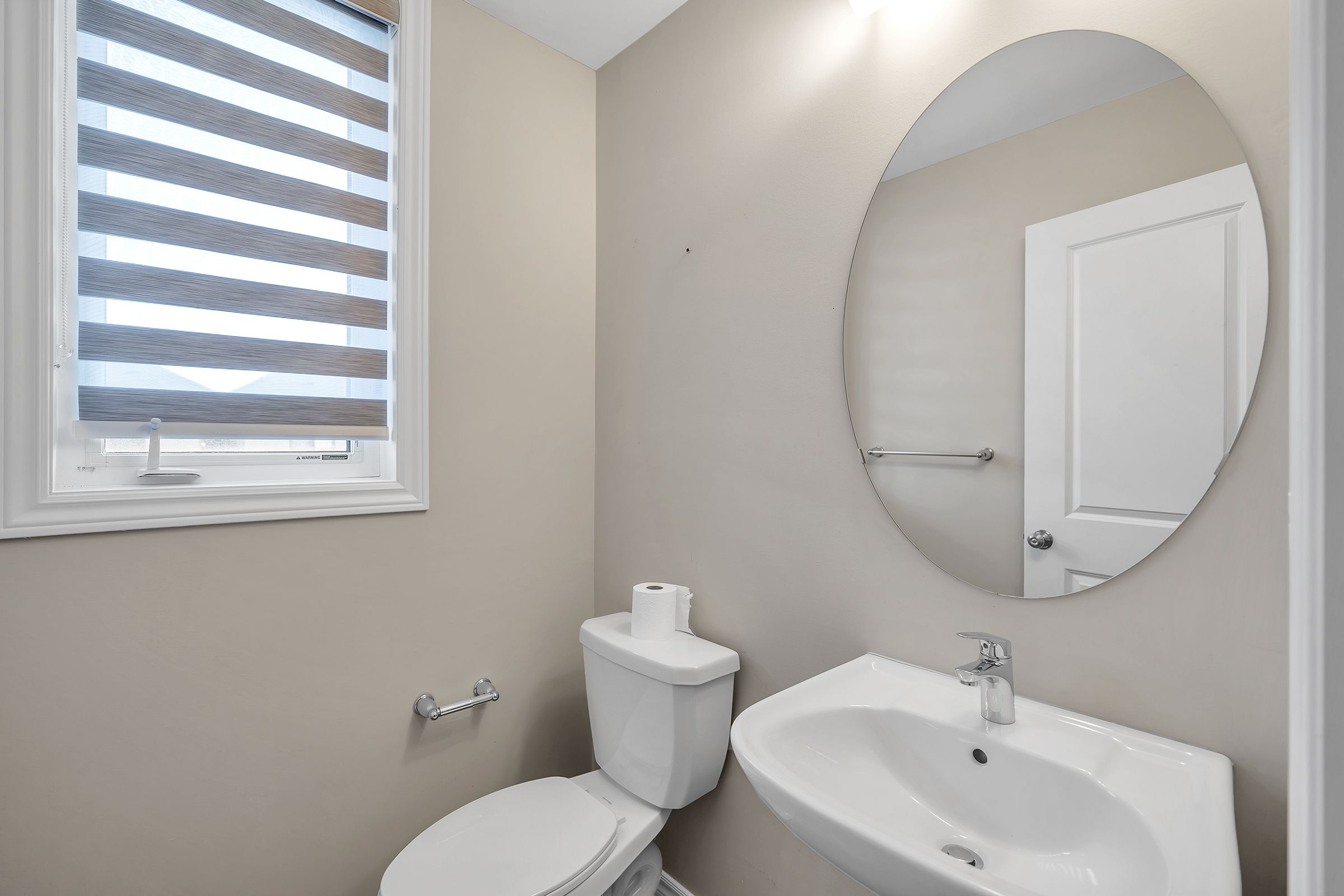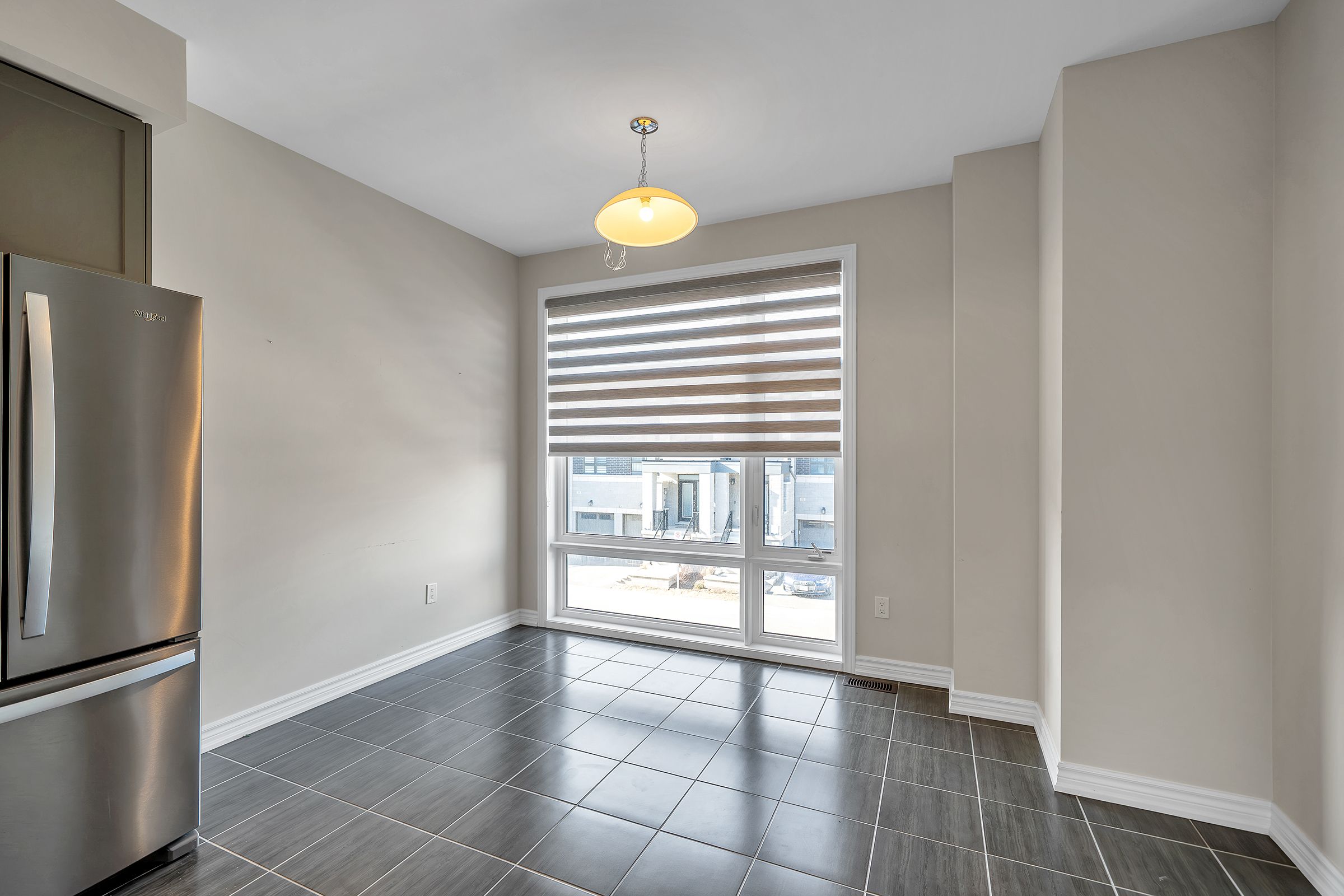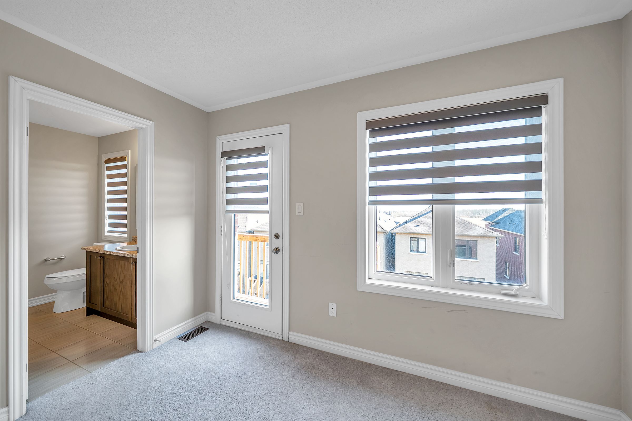 • Large windows provide natural light and stylish zebra blinds for privacy.