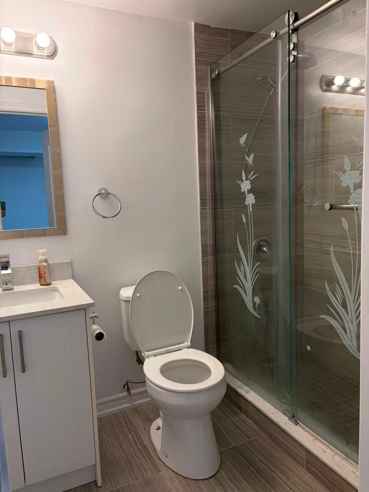 • Engineered hardwood flooring and granite countertops throughout.