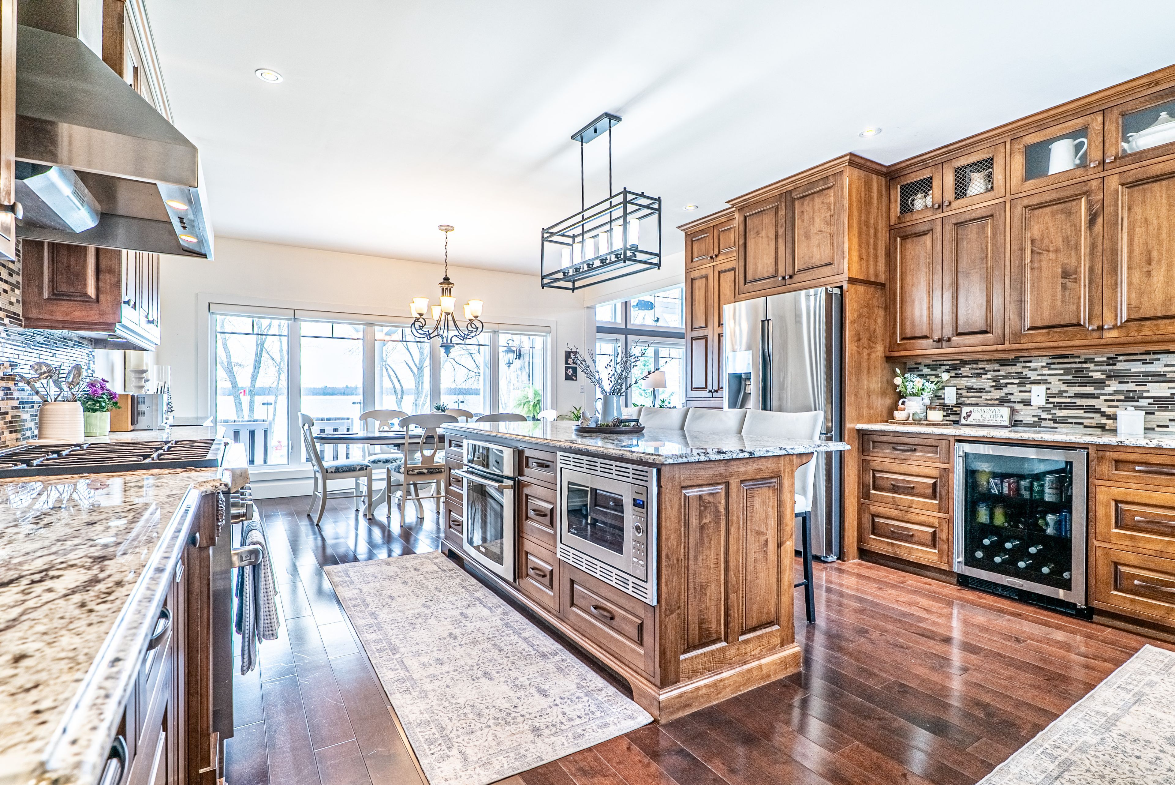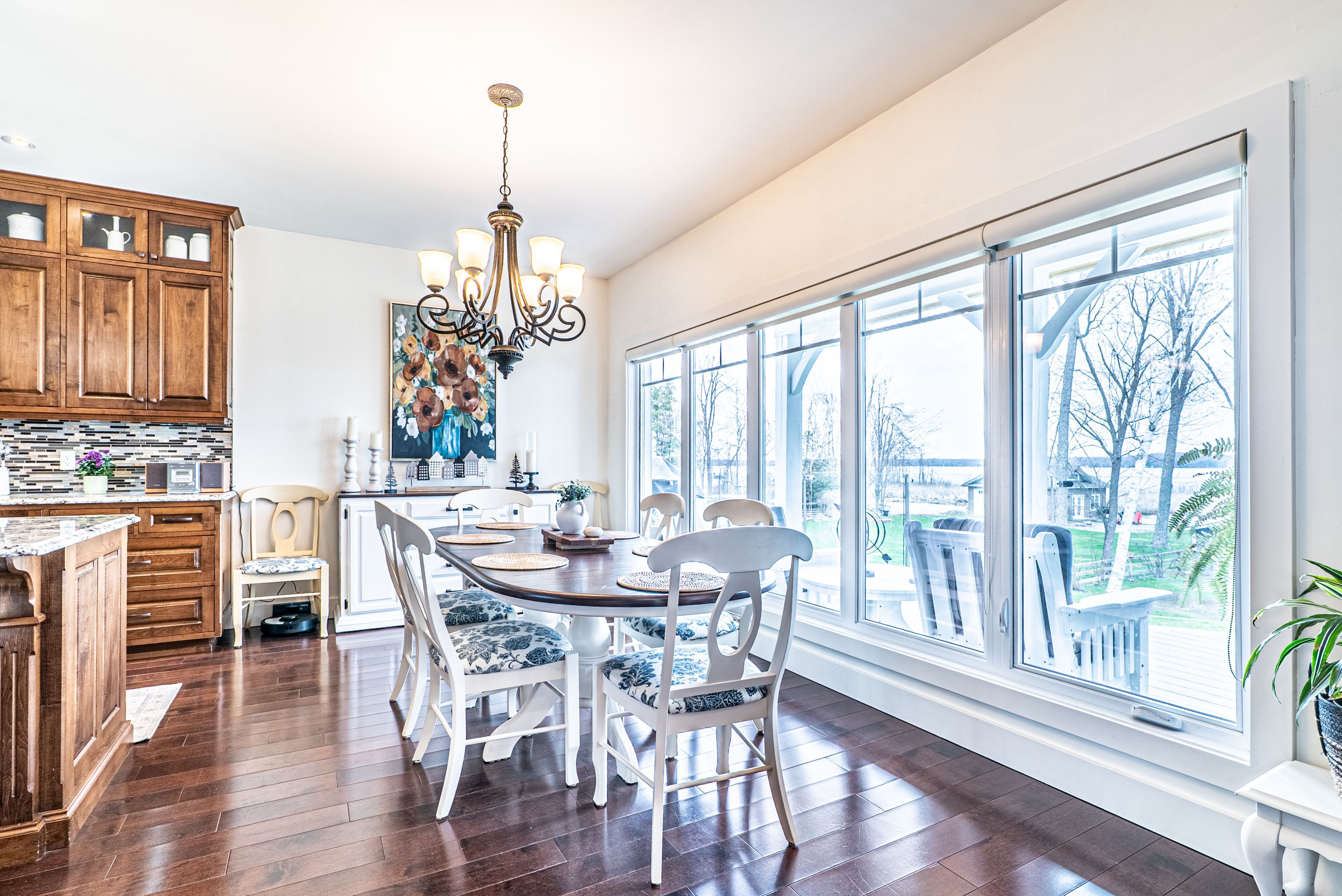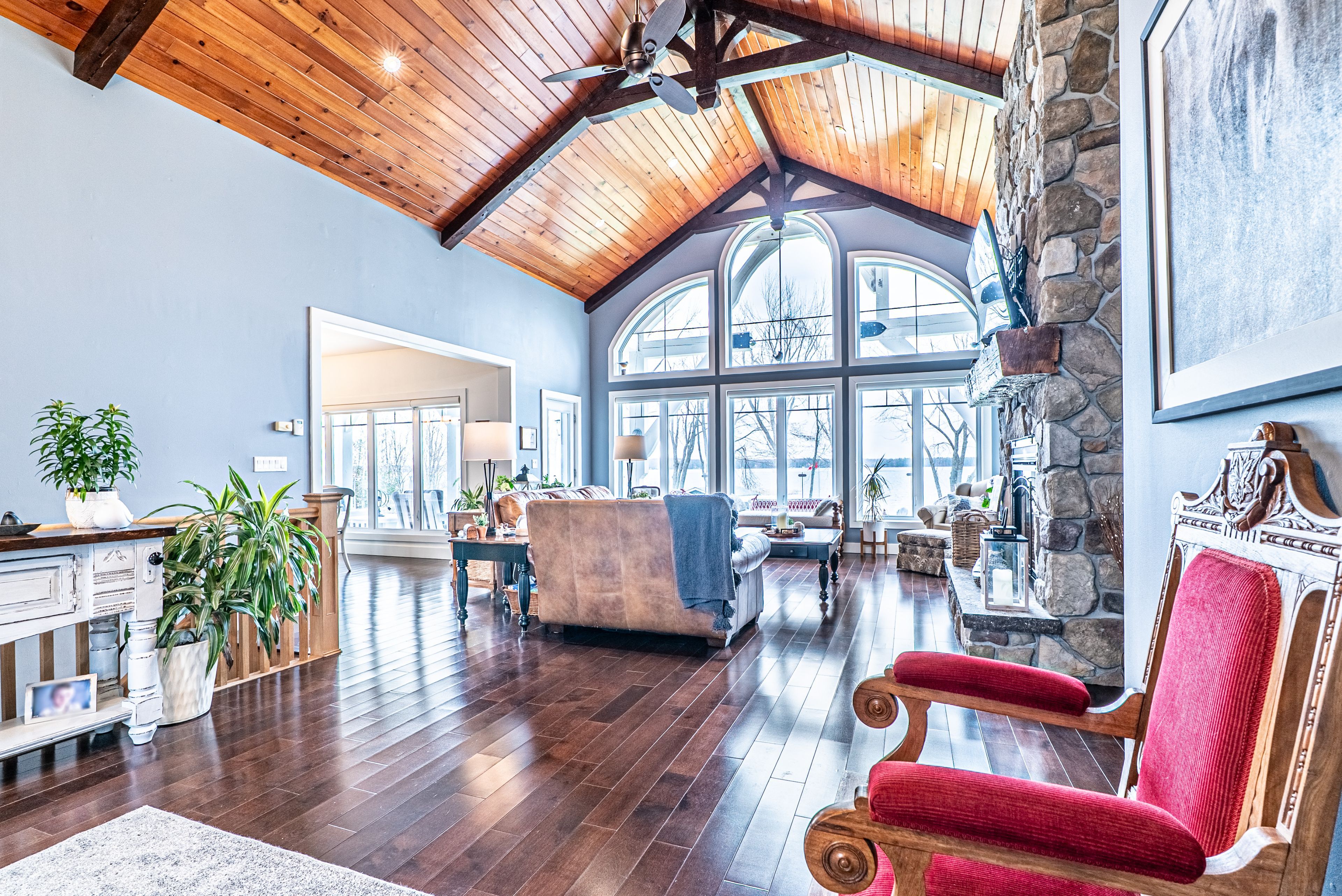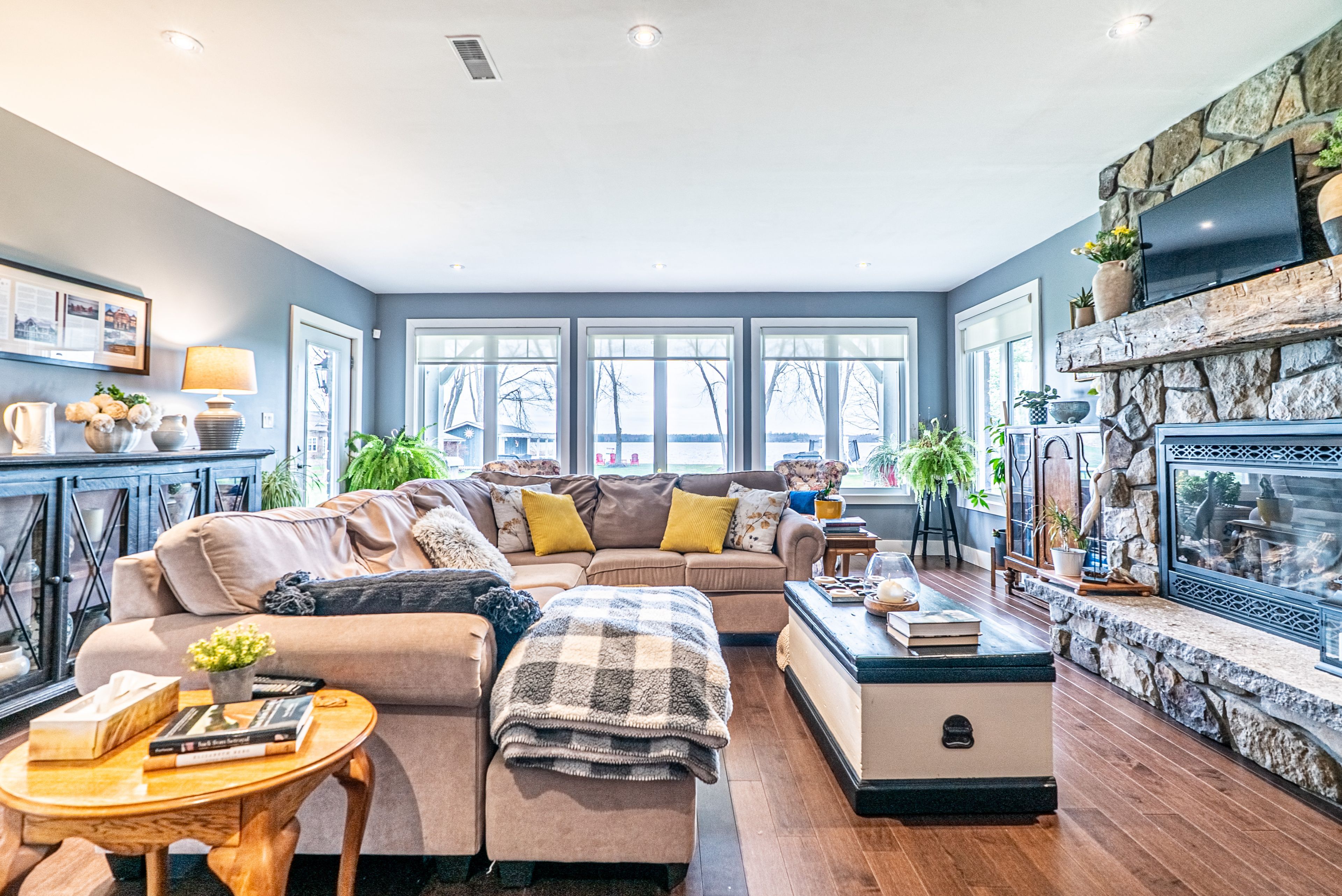 Experience lakeside living on beautiful pigeon lake with this stunning 1+2 bedroom, 2. 5-bath waterfront home. The main floor boasts a bright and airy great room with cathedral ceilings, hardwood floors, with a floor to ceiling stone gas fireplace and a walkout to a covered rear deck spanning the rear of the home. The gorgeous custom kitchen features granite countertops, a large center island, soft close drawers and cabinets, and flows seamlessly into the bright dining room with stunning lake views. The spacious main floor primary bedroom includes a walk in closet with built ins and a 3 piece ensuite, while a 2-piece bath, main floor laundry, mudroom with walkout to the attached double garage add extra convenience. The fully finished lower level offers two additional bright bedrooms, both with walk in closets, plus a 3-piece bath, and a large rec room with another gas fireplace and walkout to the stamped concrete patio and yard. A den/playroom and utility/storage room complete the space. Enjoy the comfort of heated floors and 9ft ceilings throughout the entire home. Step outside to 105 feet of waterfront on the trent-severn waterway. Relax on your private dock, wade into the soft-bottom shoreline, or make use of the boathouse. A perfect retreat for waterfront living.