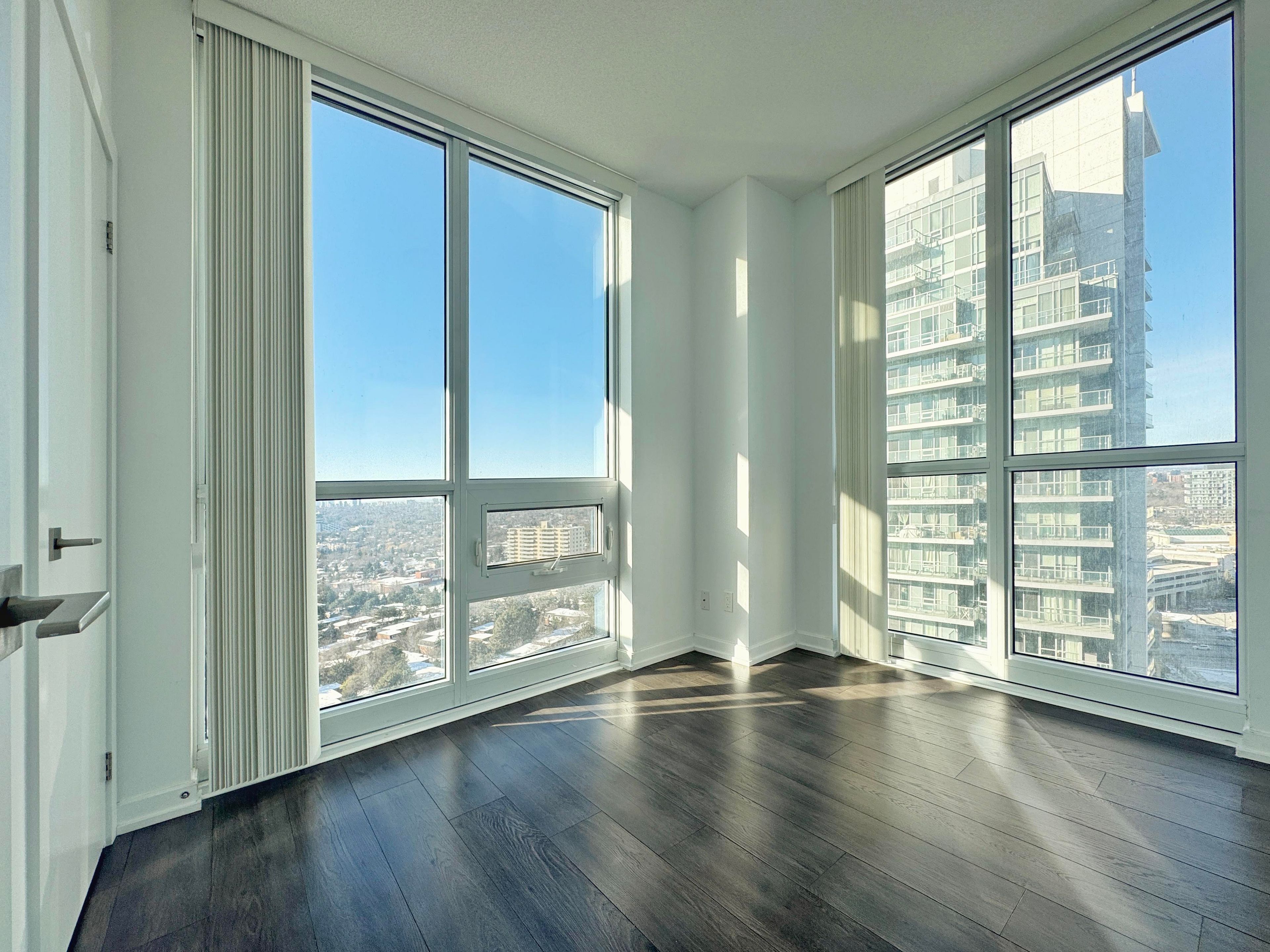 2 bedroom 2 bathroom corner unit in one of the most demanding areas. Bright 703 sq. Ft + balcony with nw view. Beautiful modern kitchen with island for more storage. Stainless steel appliances. Parking and locker are included. Steps to fairview mall, ttc subway, t&t supermarket, school, library and community centre. Minutes to hwy 401&401. Amenities include party room, fitness room, steam room, outdoor terrace w/modern fire pit, hot, warm and cold plunge pools.