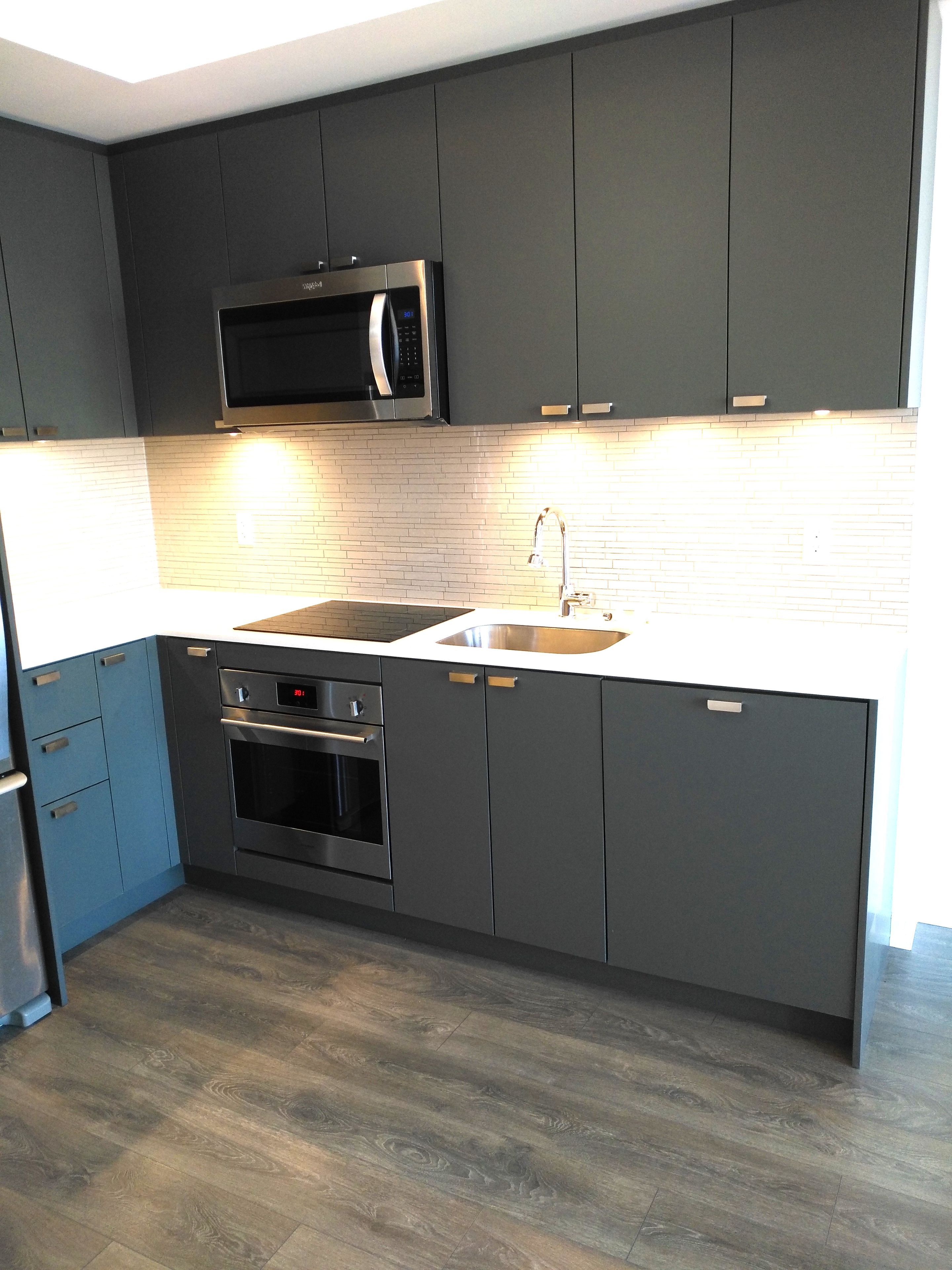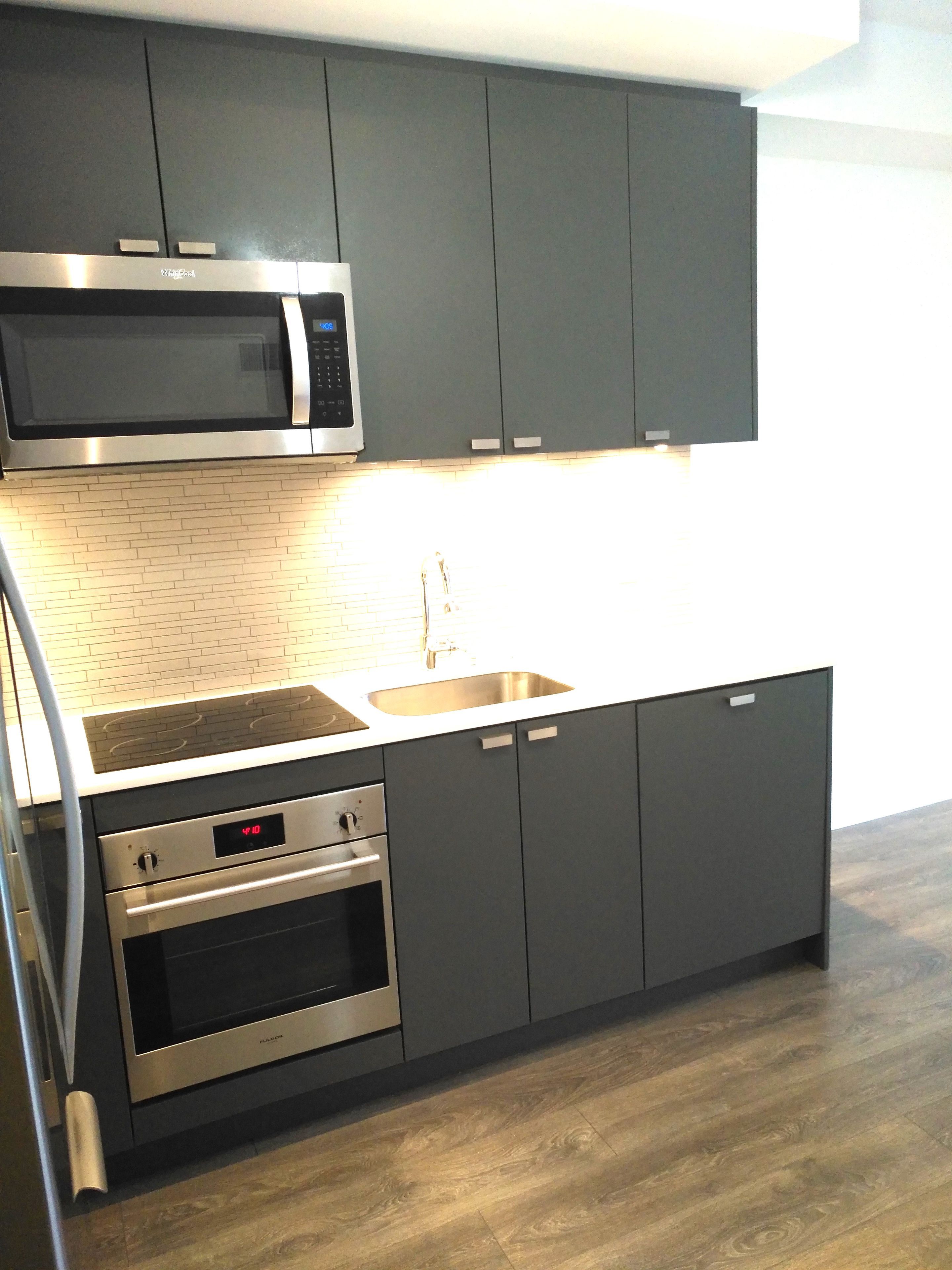 • Modern kitchen featuring quartz countertops and stainless steel appliances.