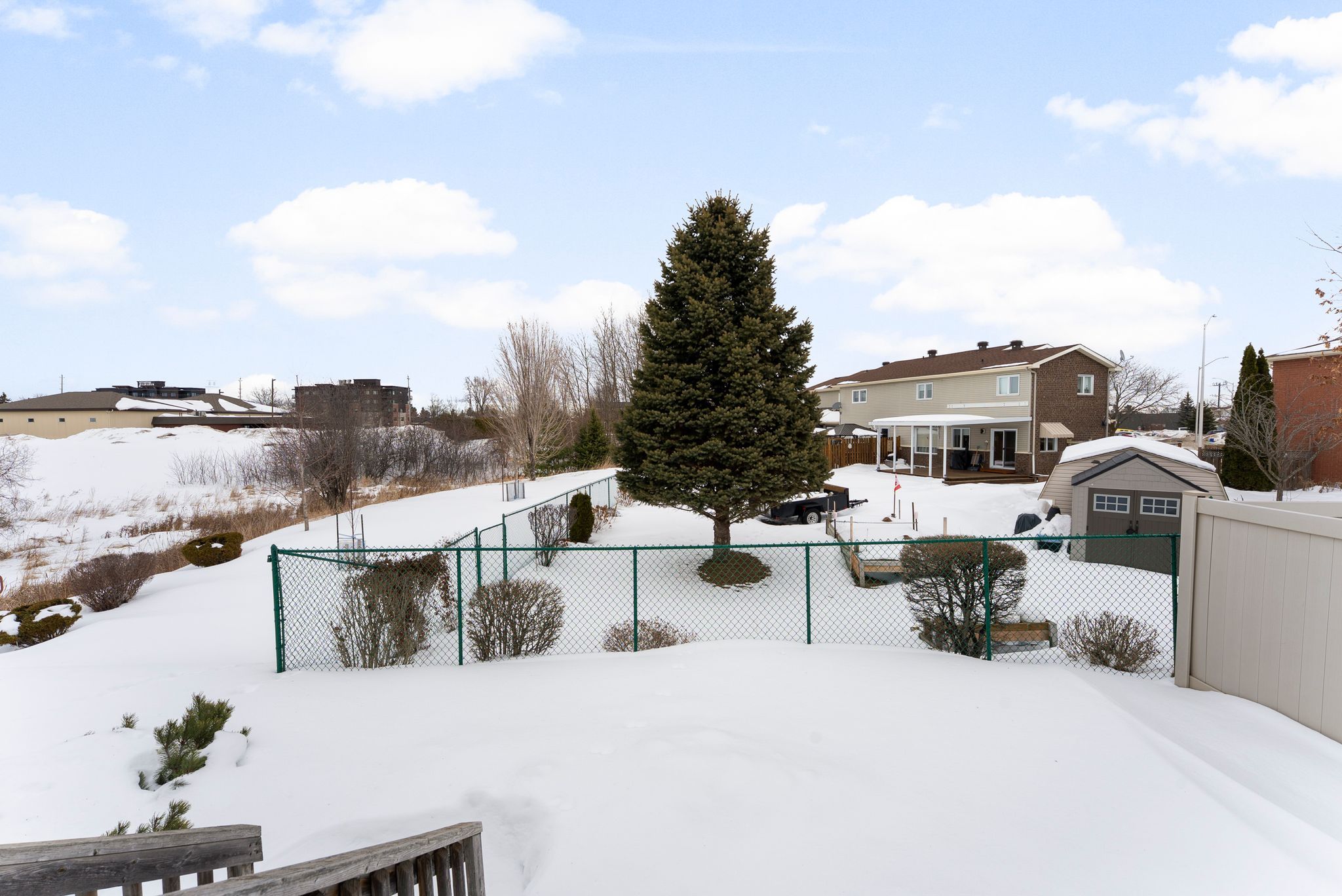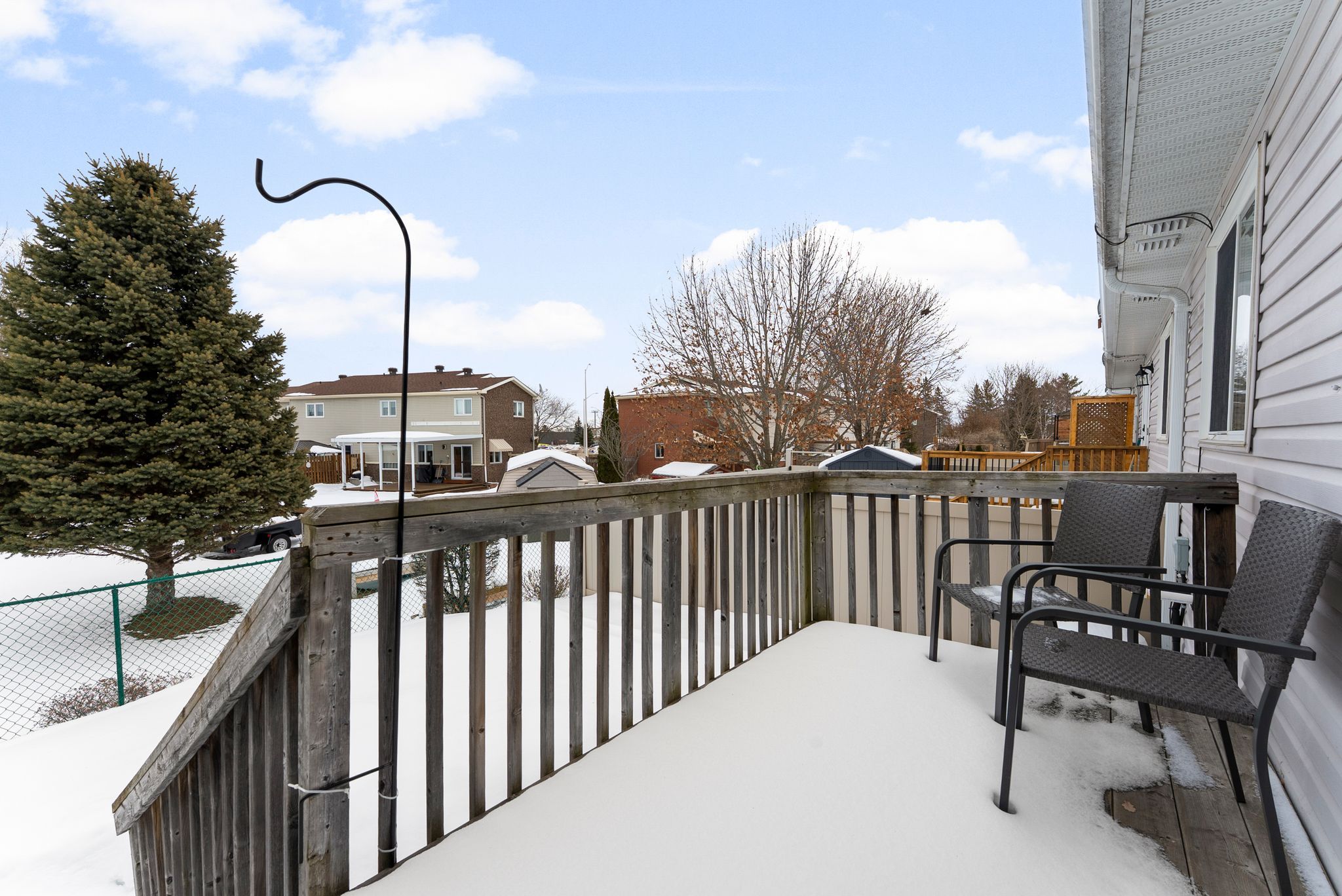 • Private backyard with a deck, perfect for relaxation.