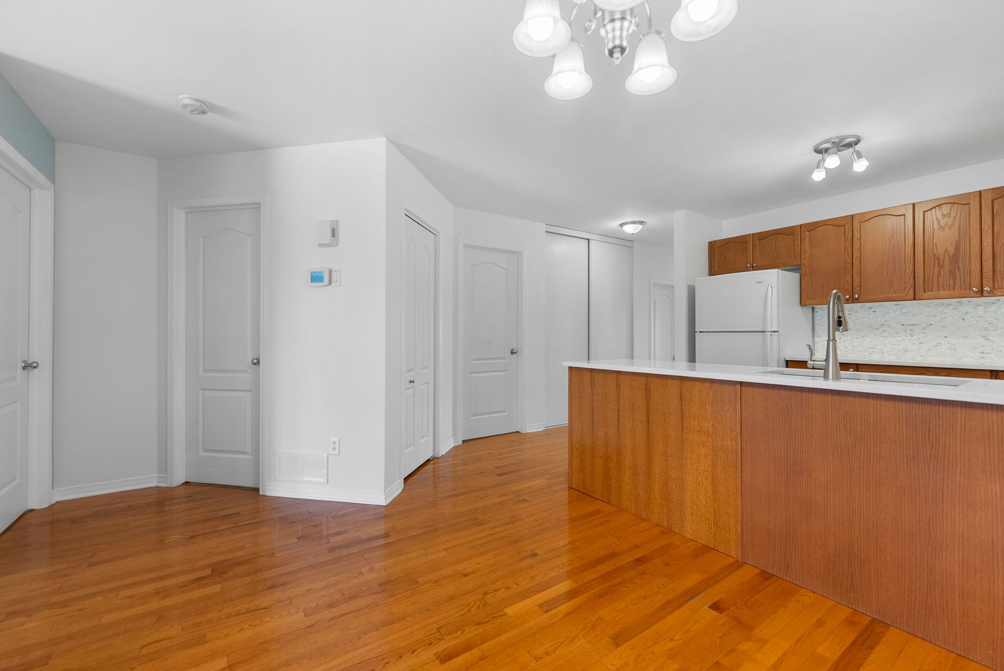 • Bright and spacious open concept living, dining, and kitchen areas.