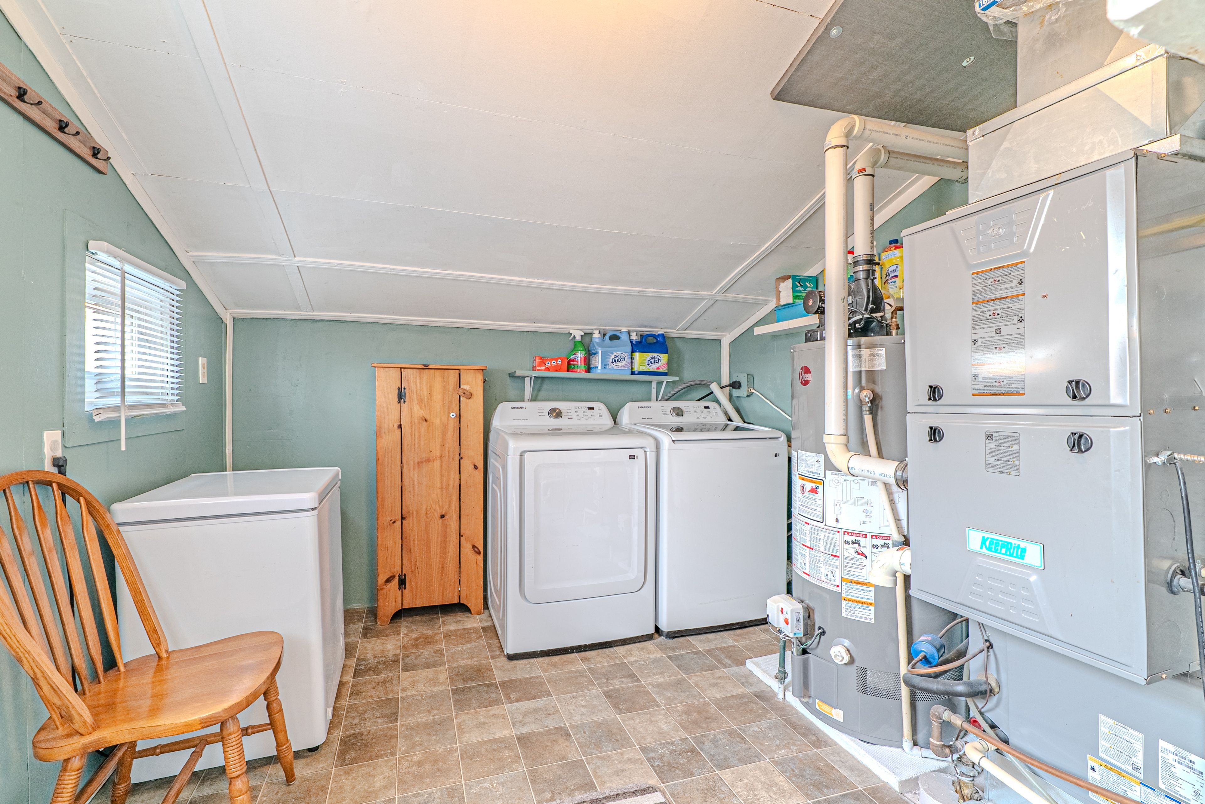 • Main floor includes two bedrooms, eat-in kitchen, and laundry.