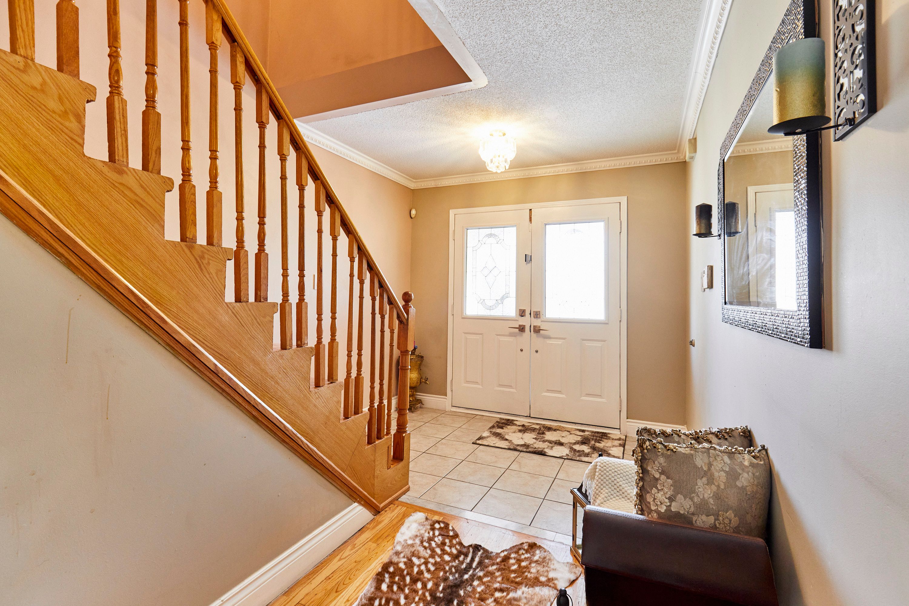 Stunning 4-bedroom family home in a prime scarborough neighbourhood! Offering approximately 2,000sq. Ft. Of thoughtfully designed living space, this beautifully maintained home perfectly blends comfort, style, and functionality. Featuring rich hardwood flooring and elegant crown mouldings, the interior exudes a clean and sophisticated ambiance throughout. The bright and spacious eat-in kitchen is ideal for everyday living and entertaining, while the inviting family room walks out to a private deck-perfect for summer gatherings and outdoor relaxation. Enjoy the added convenience of main floor laundry and direct access from the garage. The upper level offers four generously four sized bedrooms, providing ample space for a growing family. The finished basement adds valuable living space and includes a full bathroom-ideal for extended family, guests, or a recreation area. Recent upgrades include a furnace (2022), a/c (2022), humidifier (2022), and a newer roof (2018),windows (2018), offering peace of mind for years to come. Ideally located close to parks, schools, shopping, community amenities, and public transit, this home provides easy access to highway 401, the university of toronto scarborough, scarborough bluffs, the toronto zoo, and major shopping centres-making commuting and daily errands simple and convenient. Move-in ready and beautifully presented-this is a must-see!
