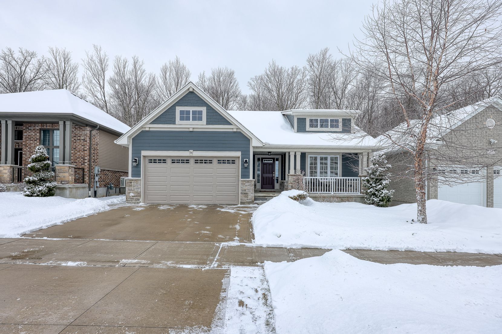 Welcome to this beautifully maintained craftsman style bungalow in a premium ingersoll subdivision, backing directly onto the serene natural setting of butternut woods. Designed for main floor living with stunning finishes throughout, this home offers an open and inviting layout with a 10-foot ceiling in the living room, highlighted by a stylish electric fireplace that creates a warm focal point. The kitchen is both functional and impressive, featuring quartz countertops, a tile backsplash, a large centre island, and ample cabinetry. Tons of kitchen storage in the walk-in pantry conveniently located off the mudroom with main floor laundry. Start your day waking up with views of the woods from your primary bedroom which features a walk-in closet and ensuite with tiled shower. The second bedroom at the front of the house could also be used as a office or den. A 4 pc bathroom completes the main level. Downstairs is finished with a large rec room that has space for a games table and entertainment area. A 3rd bedroom and 3pc bathroom offer a perfect space for family or guests. There is no shortage of storage space plus potential to finish a bonus space into a workshop, fitness area, hobby space or whatever you can envision. Outside offers peace and relaxation on the back deck or covered front porch. The property is beautifully landscaped. This location is close to parks and multiple walking trails with the entrance to the woods behind just one home over. Enjoy the quiet location with the convenience of being close to the new grocery store plaza and 401. Truly a wonderful house to call home.