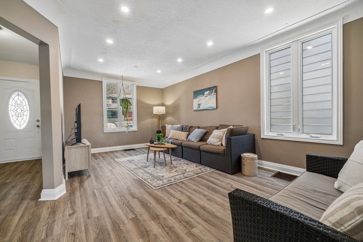 Welcome to this beautifully updated 3-bedroom, 1-bathroom home in the heart of picturesque dundas-available for the first time in nearly four decades. This inviting property seamlessly combines classic charm with modern finishes, highlighted by soaring ceilings, an abundance of natural light, and a well-planned layout. Step into a spacious foyer that opens into an expansive living and dining area-ideal for both relaxing and entertaining. The newly renovated kitchen offers quartz countertops and new appliances- a perfect balance of style and functionality. Upstairs, you'll find three generously sized bedrooms along with a newly designed four piece bathroom. The fully finished lower level adds even more living space, complete with a striking accent wall, new carpeting, and updated baseboards. Outdoors, the beautifully landscaped gardens create a serene, private retreat. Situated on a quiet, well-kept street with plenty of street parking, this home offers tranquility while remaining close to all amenities. A rare chance to own a meticulously cared-for home in one of dundas' most sought-after neighbourhood's
