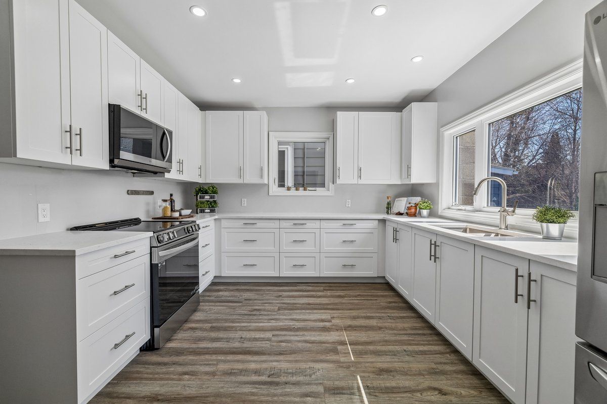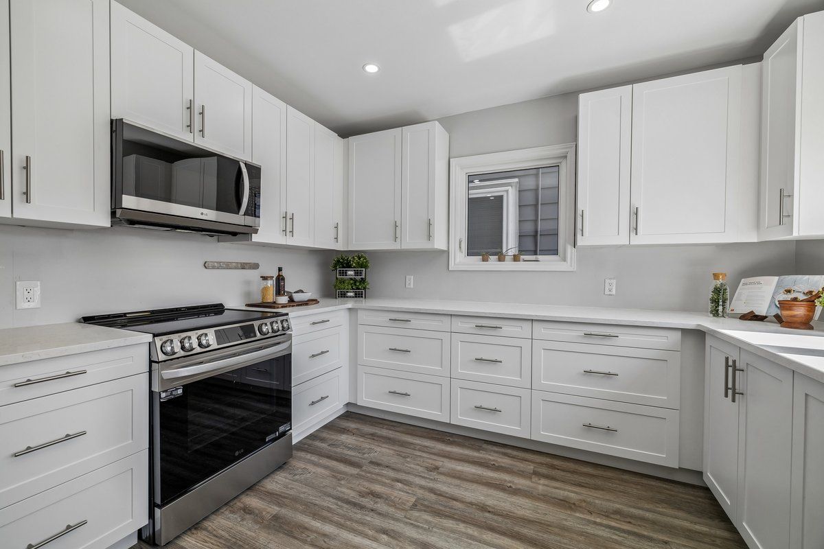 • Newly renovated kitchen with quartz countertops and modern appliances.