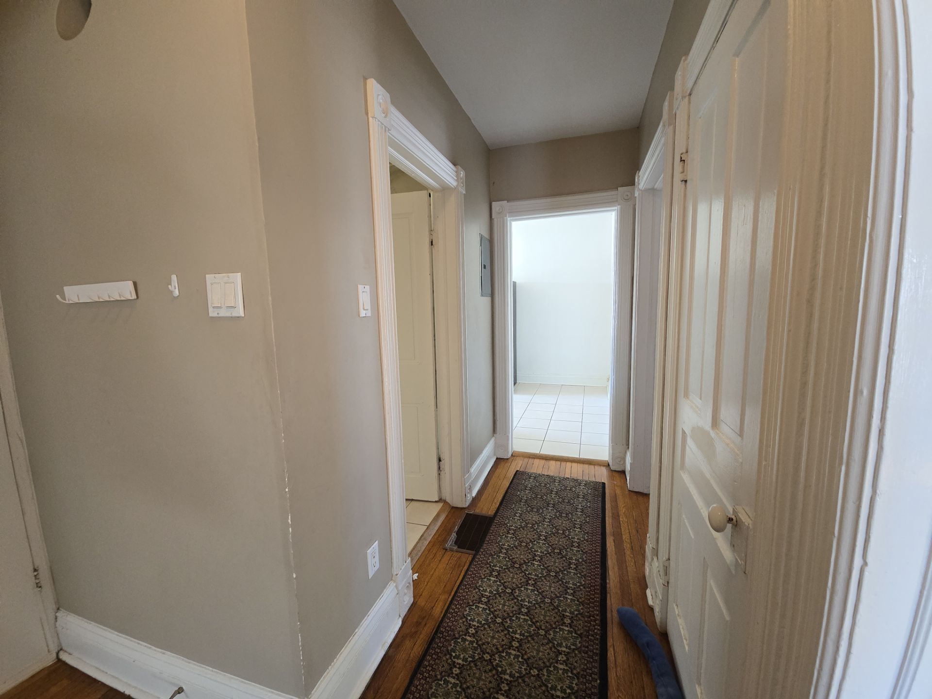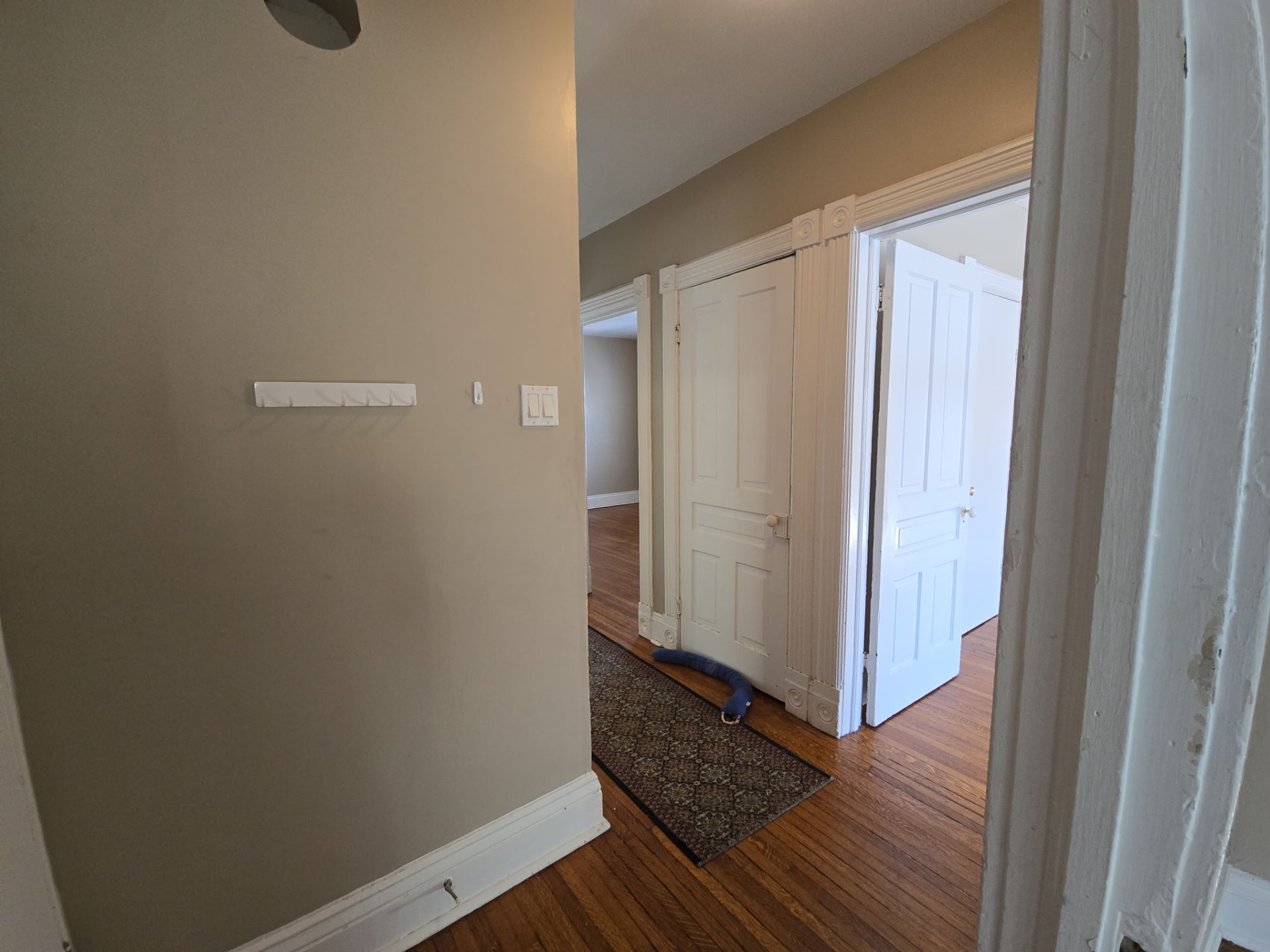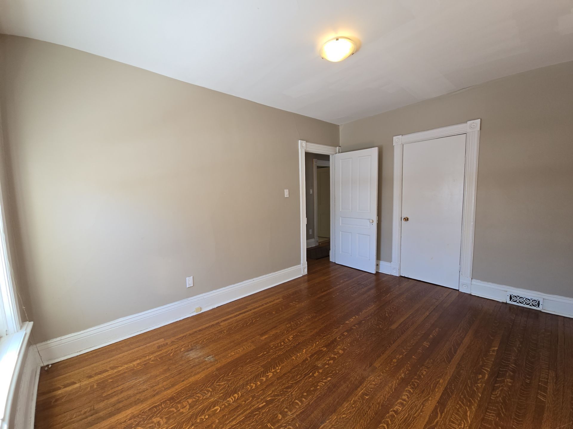 • Classic hardwood floors and generous living spaces throughout the suite.