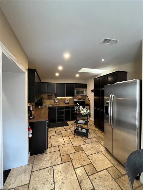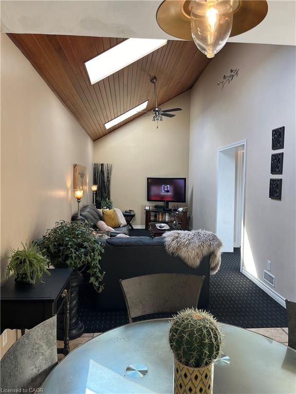Gorgeous, immaculately and fully furnished apartment with 2+1 bedrooms and 2 full bathrooms featuring high-endfinishes throughout, ideally situated above a quiet commercial space in the heart of downtown dundas. Soaringvaulted ceilings in the dining and family rooms create an airy, light-filled atmosphere, while the living room isanchored by a stunning brick gas fireplace. The well-appointed kitchen offers quality finishes and an additionalbreakfast area, perfect for casual dining. Bedrooms overlook the vibrant dundas core, placing you steps fromcharming shops, restaurants, cafés, and everyday amenities. Enjoy walkable access to parks, schools, golf, andmore. The primary bedroom enjoys a spacious boudoir with wall-to-wall mirrored closet doors. The spa-inspired5-piece bathroom showcases elegant european fixtures, complemented by an additional 3-piece bath with shower. Aversatile extra room in the loft is ideal as a third bedroom or home office. Includes two parking spaces. Anexceptional lease opportunity in an unbeatable location-won't last long.