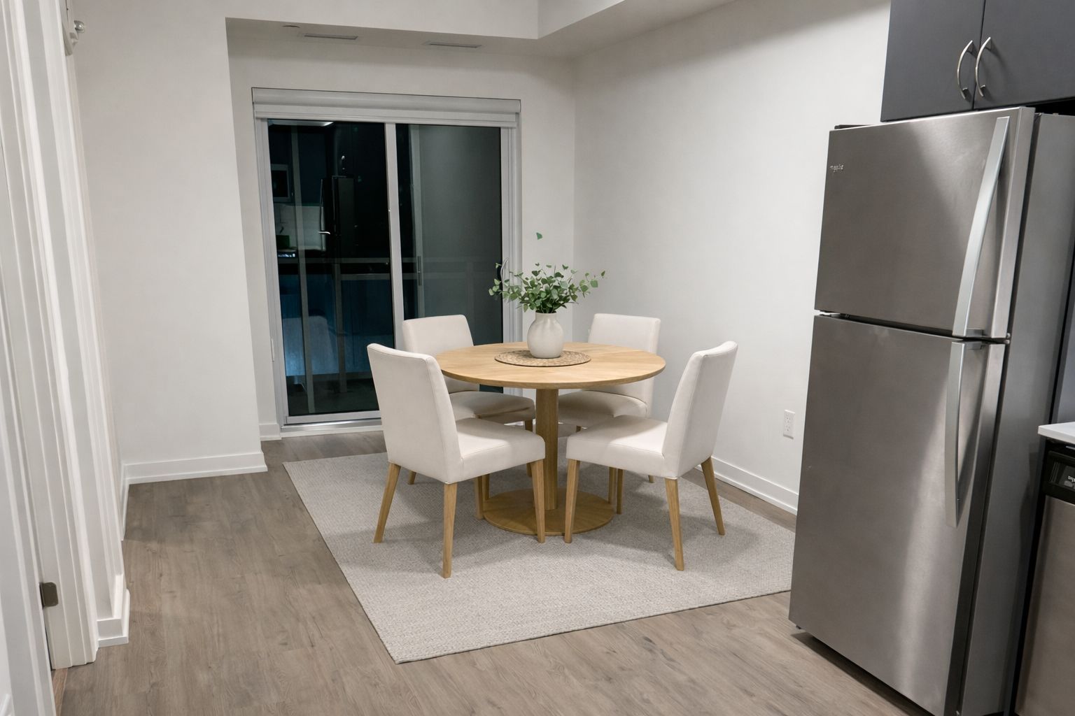 • Bright open-concept suite with stainless steel appliances and spacious balcony views.
