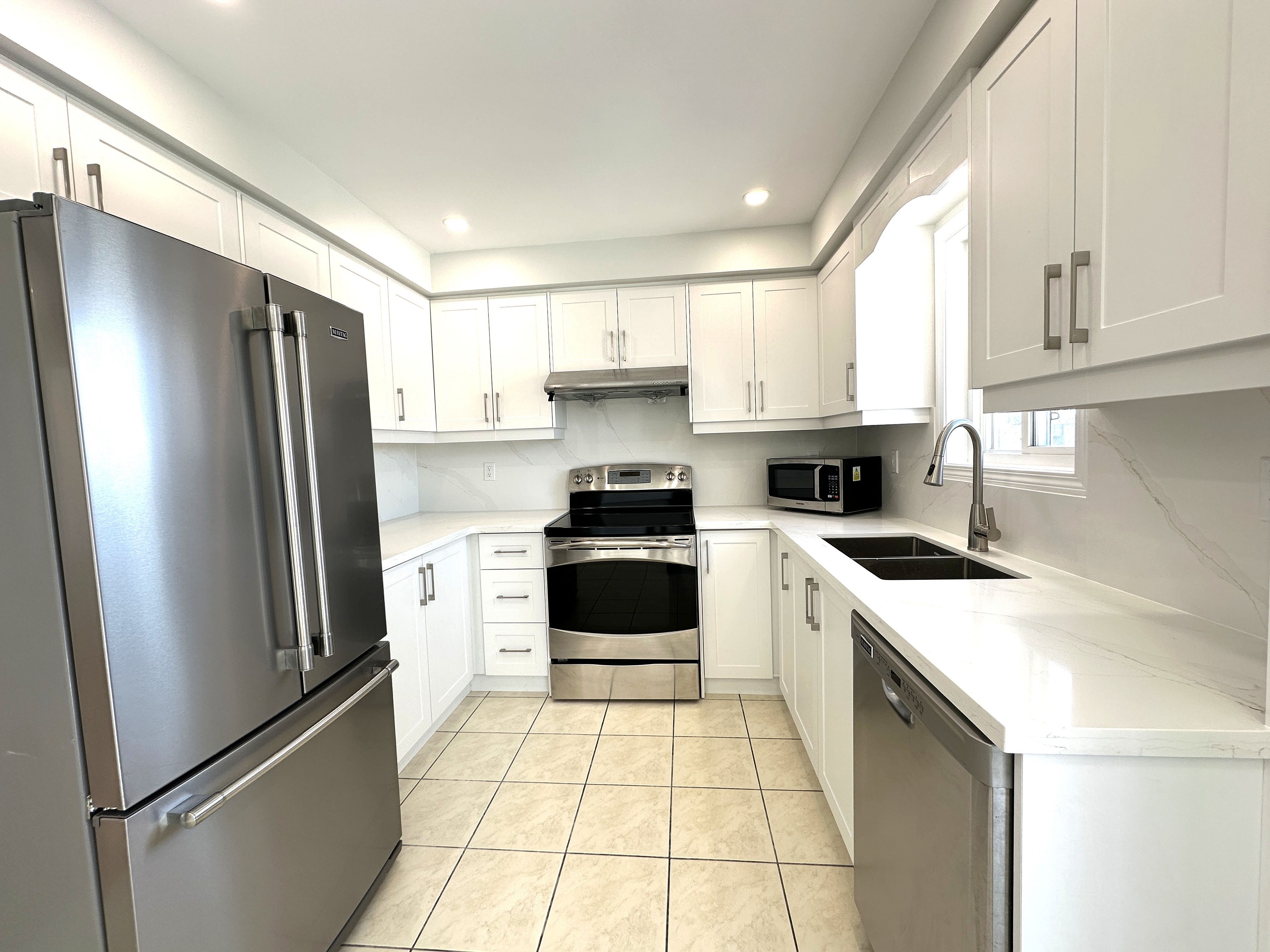 New renovation, great location in demand north whitby. Furnace and air conditioner 2022, featuring 3 brs, 4 baths, open concept, pot lights, stylish kitchen with high end ss appliances & quartz counter top matching backsplash. Walkout to deck and fully fenced with oversized backyard. Direct access into home from garage, front porch, c/a. Great schools, close to transit, shopping and all amenities, just steps away from parks! Must see!!!