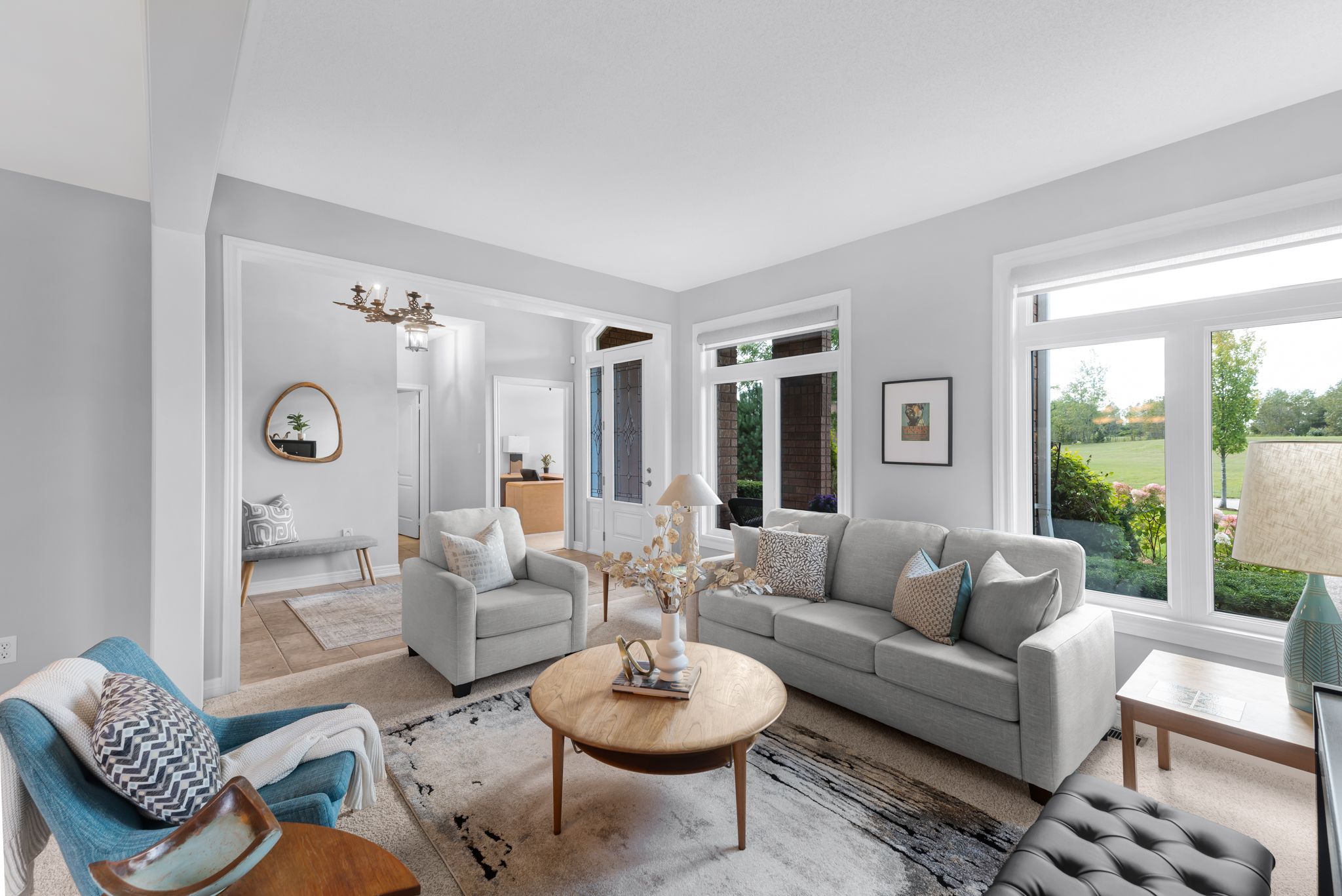 The home is situated on a professionally landscaped, private 1. 75 acre lot that backs onto a tranquil wood. The main floor is bathed in natural light, creating a bright and airy atmosphere. The thoughtfully designed layout provides multiple living spaces perfect for both formal entertaining and relaxed everyday living. French doors and oversized windows seamlessly connect the indoors with the peaceful outdoors, where a custom trex deck with slate inlays and multiple seating areas provides a perfect space to enjoy the surroundings while surrounded by lush privacy. Inside, the home offers sunlit interiors, soaring ceiling heights, and a seamless indoor/outdoor flow. This home also includes a triple car garage with a massive double driveway with eight spaces, a generac backup power system, lawn sprinkler system, and other features found only in the finest homes.