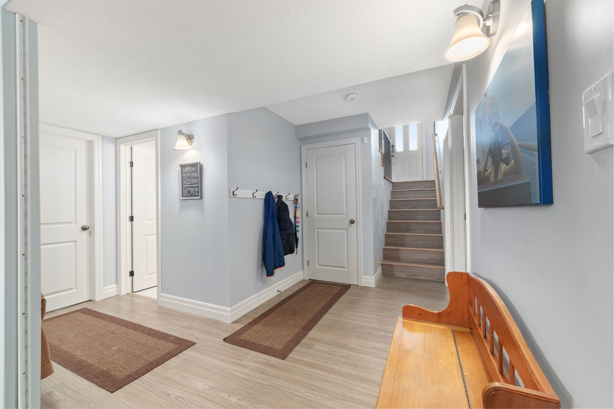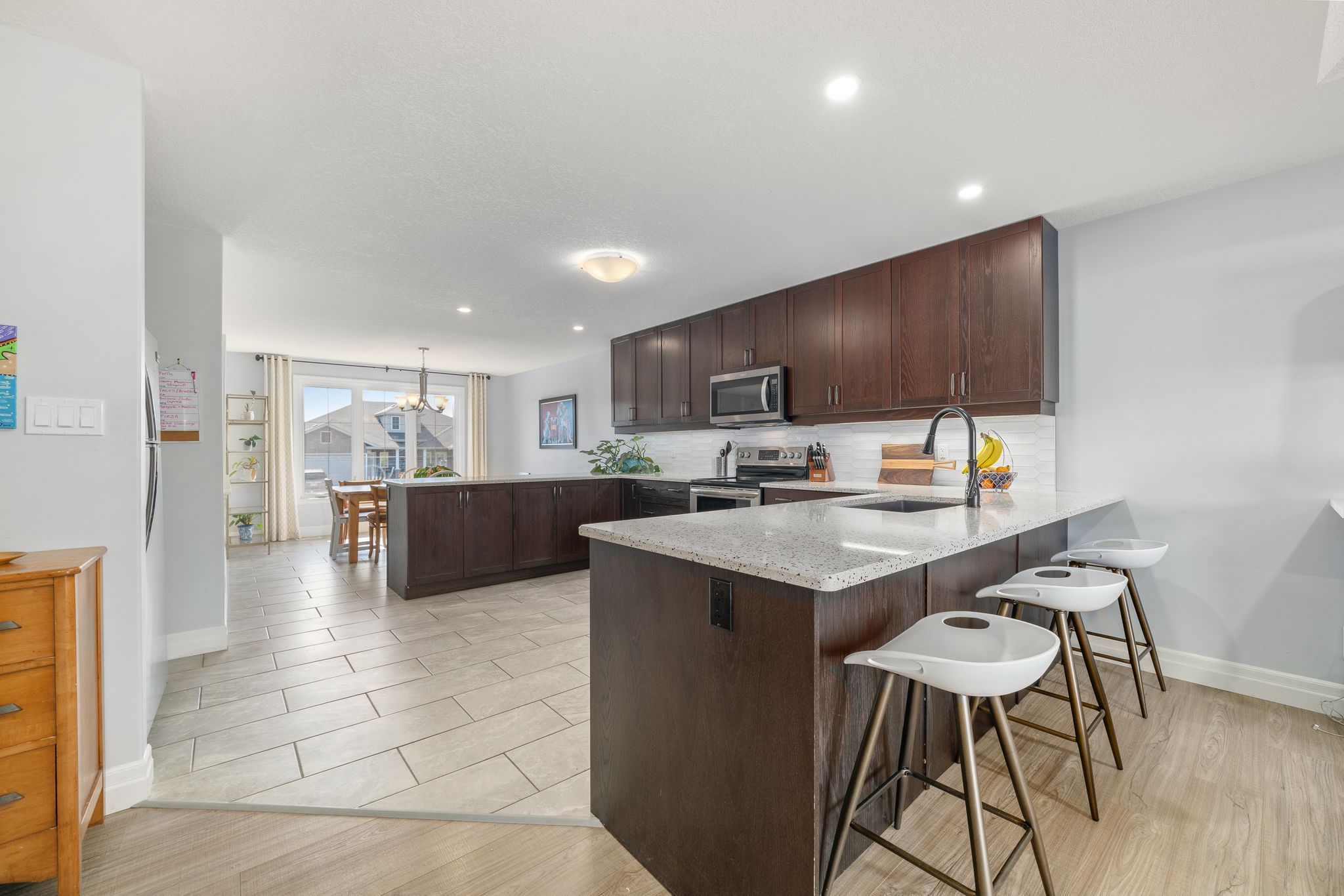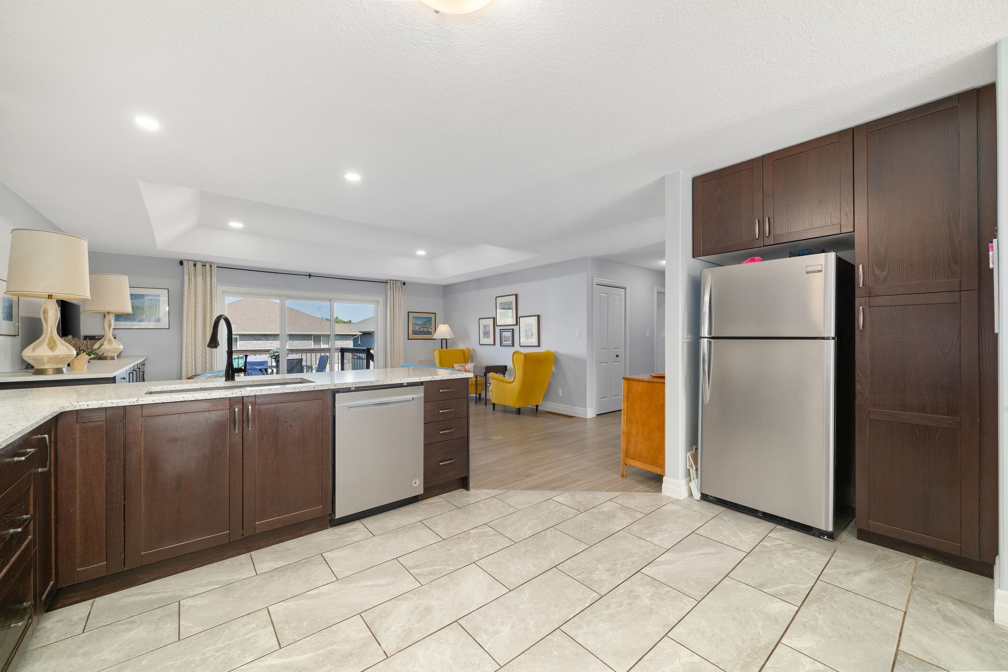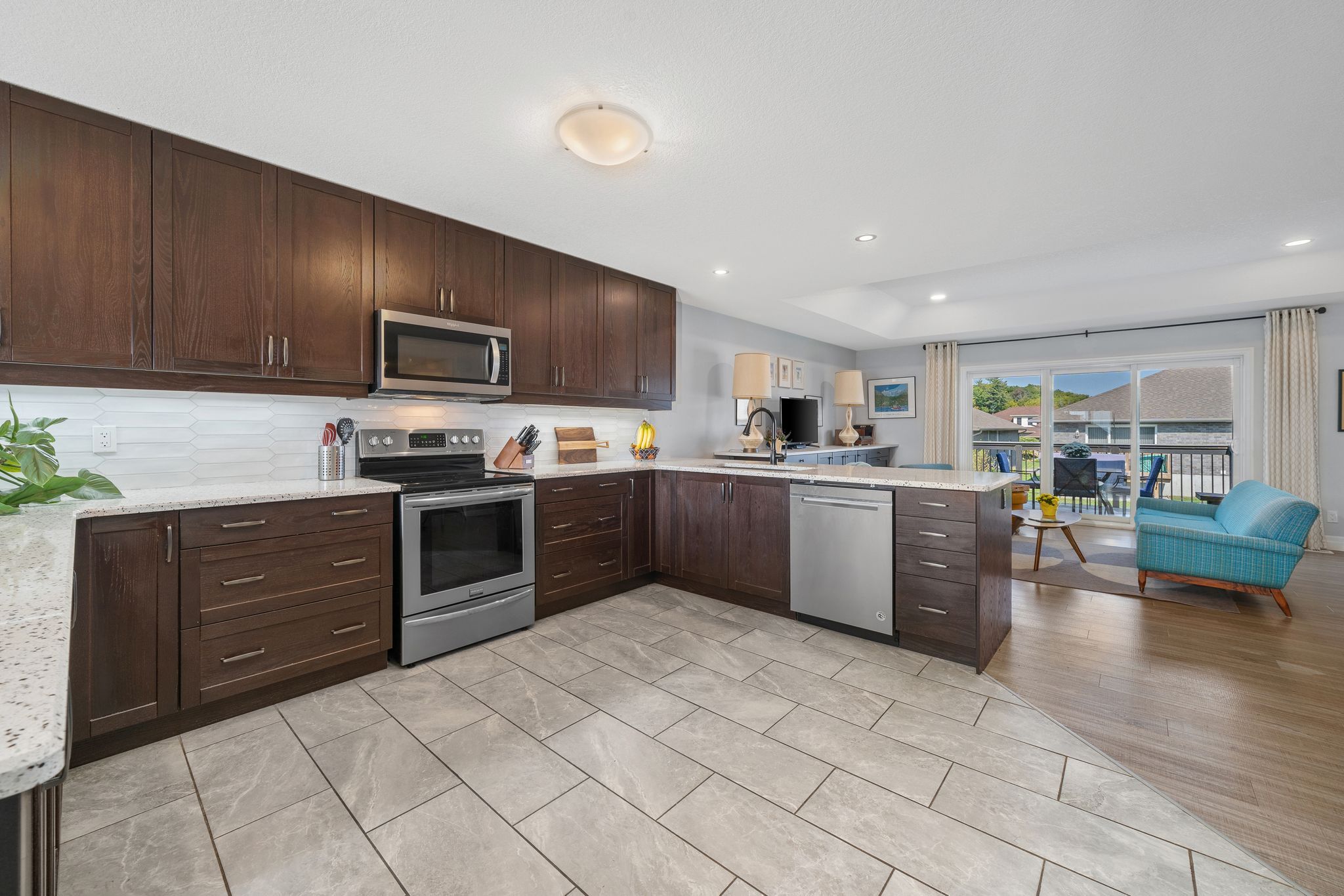 Offering 5 bedrooms and 3 bathrooms, this move-in-ready bungalow showcases thoughtful upgrades, meticulous care, and a seamless blend of style and comfort. Step into a sun-filled, open-concept main floor where the family room-anchored by a tray ceiling with pot lights-flows effortlessly into the dining area and chef-inspired kitchen. The kitchen impresses with terrazzo-quartz countertops, a composite granite double sink, premium cabinetry, and a stylish tile backsplash. The main-floor primary suite is a true private retreat, featuring a spacious custom walk-in closet and a spa-like ensuite with a double vanity, dual sinks, and a sleek stand-up shower. Downstairs, the bright and expansive lower level extends your living space with a large rec room, full bathroom, and three generous bedrooms, including one with its own walk-in closet-ideal for guests, teens, or a growing family. Outside, enjoy a deep, fully fenced backyard (2021) designed for relaxation and entertaining, complete with a composite deck, three-panel patio doors, stamped concrete patio, and ample green space. The triple-wide concrete driveway and insulated double-car garage provide exceptional parking and storage convenience. Notable upgrades include custom living room cabinetry (2021), front landscaping (2023), and a refreshed kitchen backsplash (2024). Located in a highly sought-after neighborhood close to schools, parks, shopping, cfb trenton, and hwy 401-and just a short drive to sandbanks, presqu'ile, and north beach provincial parks-this home is perfectly suited for families, professionals, and outdoor enthusiasts alike. A rare opportunity to own a beautifully finished home in an unbeatable location-don't miss it.