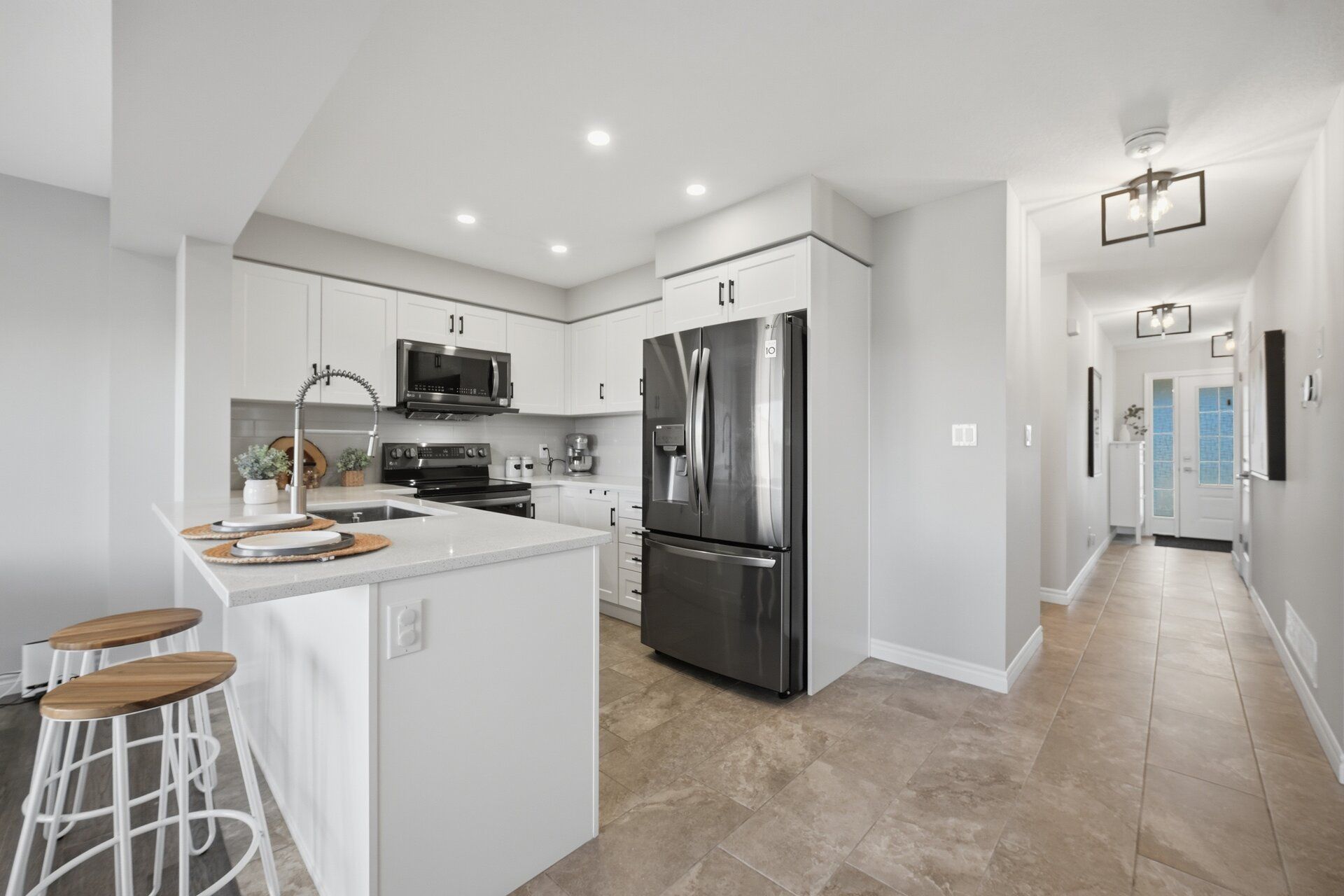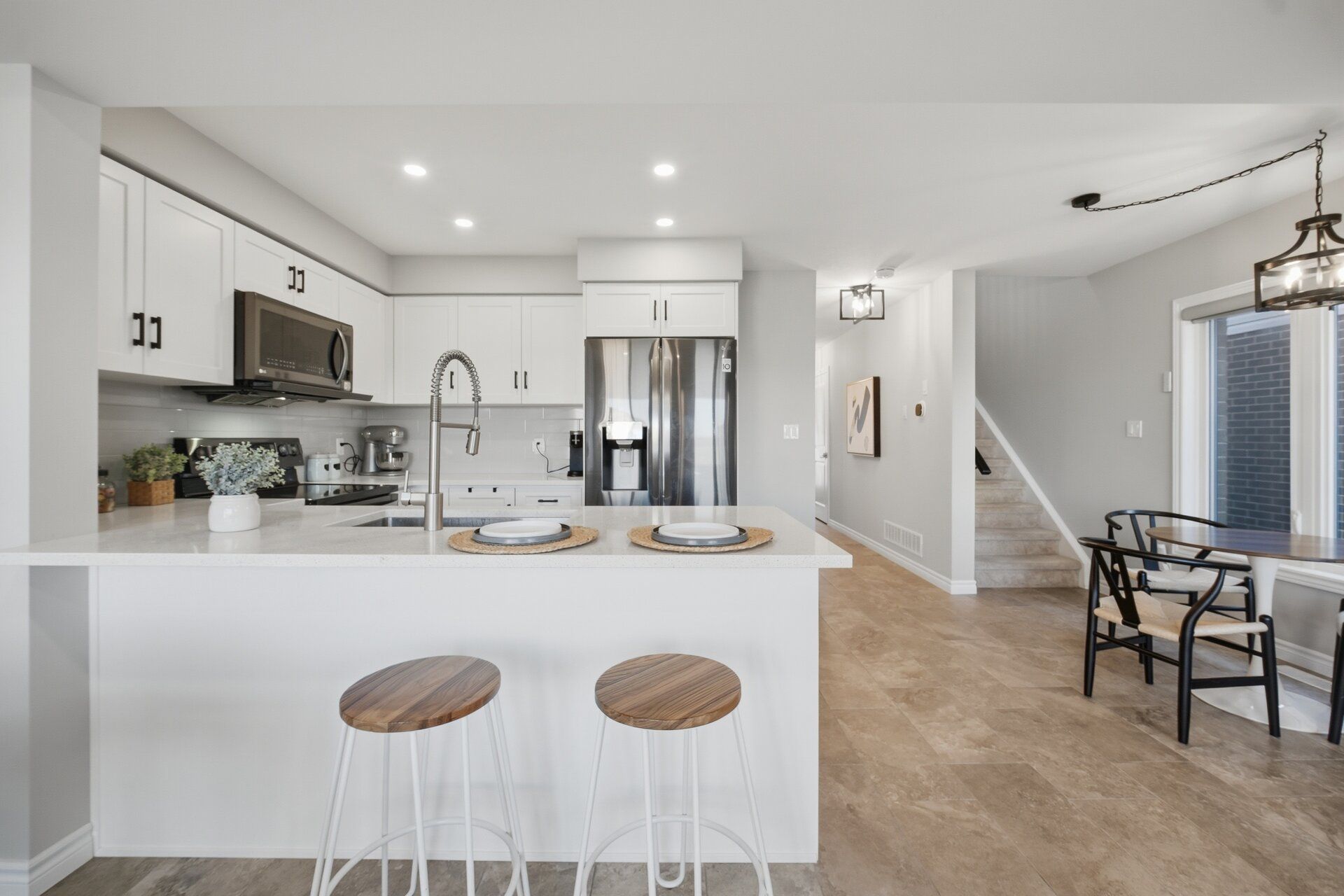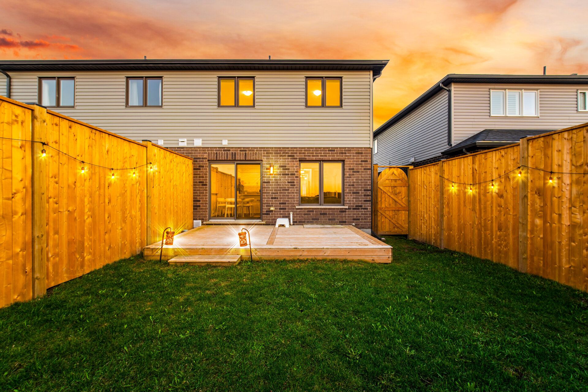 Located just minutes from waterloo, this beautifully maintained, 2021 built ,executive end unit ( just like a semi ) freehold townhome in the desirable community of elmira offers exceptional value for first-time buyers, young families, empty nesters ,and professionals alike. This bright and spacious home features 3 bedrooms and 2. 5 bathrooms, with a functional open-concept layout and convenient upper-level laundry. The main floor is carpet-free, showcasing upgraded tile and hardwood flooring in the living& dining room. The modern kitchen , is equipped with quartz countertops, a stylish backsplash, and matching black stainless steel appliances, seamlessly flowing into the main living space-perfect for everyday living and entertaining. Upstairs, the primary bedroom includes a walk-in closet and private ensuite, complemented by two additional generous bedrooms and a full bathroom. The unfinished basement offers excellent potential for future customization to suit your needs. Additional highlights include a large deck, fully fenced backyard with open views, upgraded lighting, updated bathrooms, and smart home features such as motorized zebra blinds and automation-ready switches. Builder upgrades include an oversized basement window, enhanced exterior stone detailing, coloured window frames, insulated garage door, hardwood flooring in the great room, upgraded tile, and pot lights on the main level. Ideally situated near schools, parks, trails, and elmira golf club, this home is also close to elmira's charming downtown and the renowned elmira maple syrup festival. Enjoy nearby access to the historic kissing bridge and the natural beauty of the surrounding countryside. With easy access to kitchener /waterloo and all major amenities, this home offers the perfect blend of small-town charm and modern convenience. A fantastic opportunity to own in the sought-after country club estates by claysam homes.