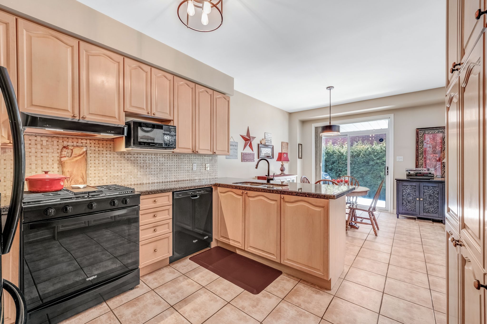 • Updated kitchen with granite counters and walk-out to backyard pool.