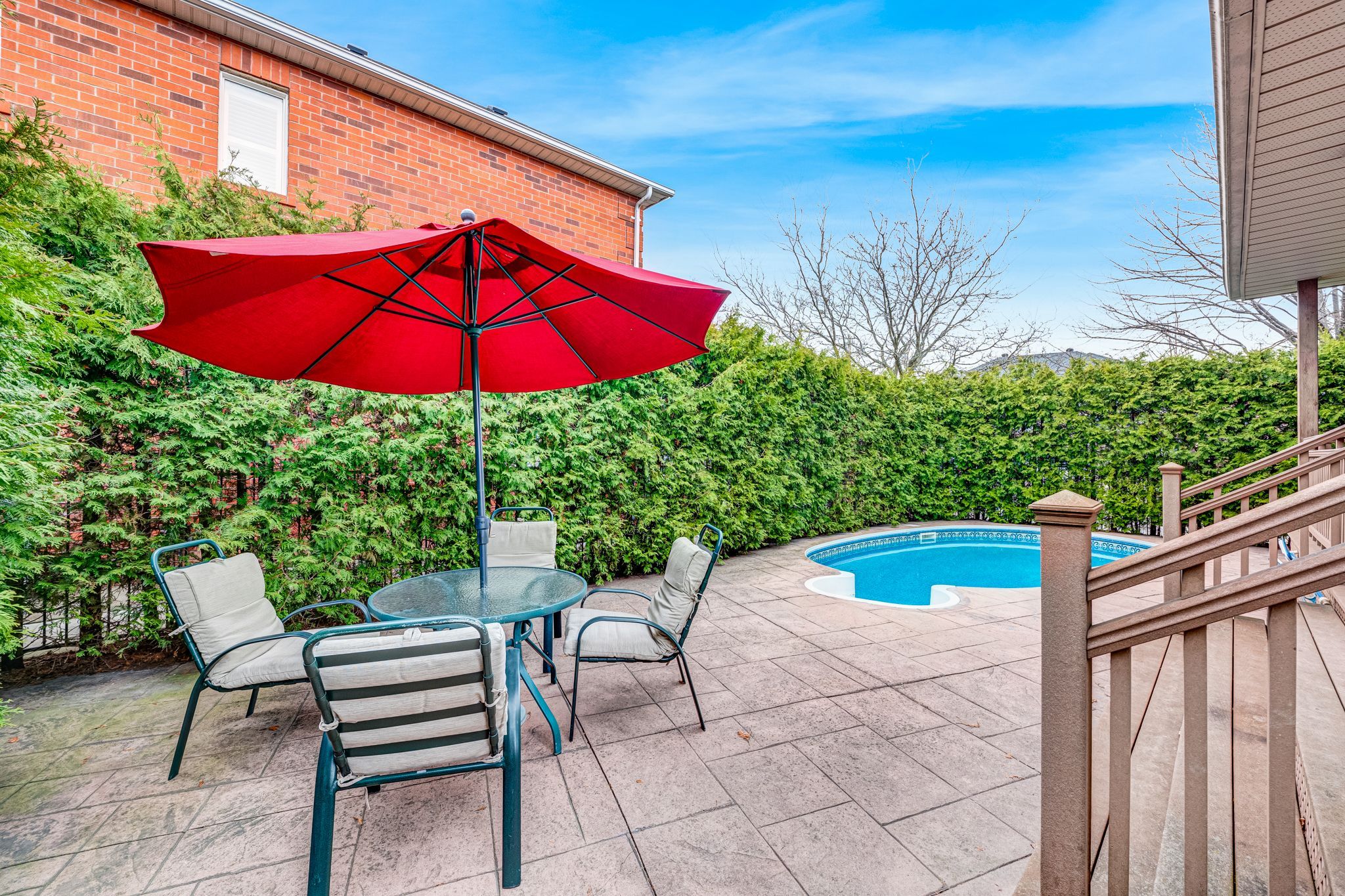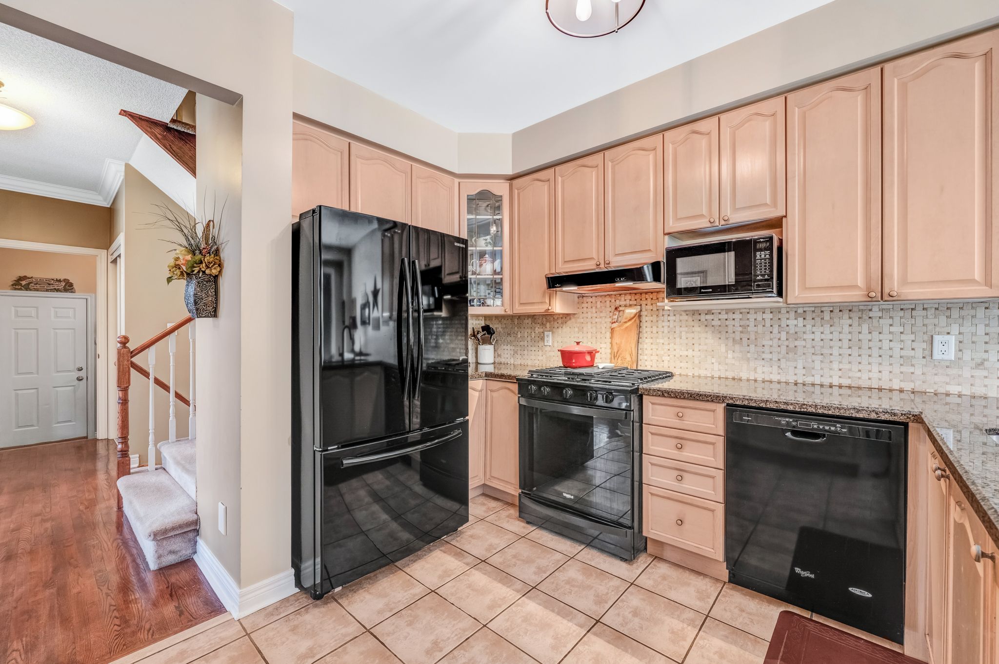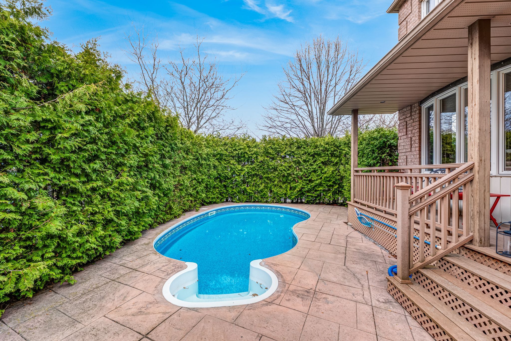 • Updated kitchen with granite countertops and walk-out to a deck and pool.