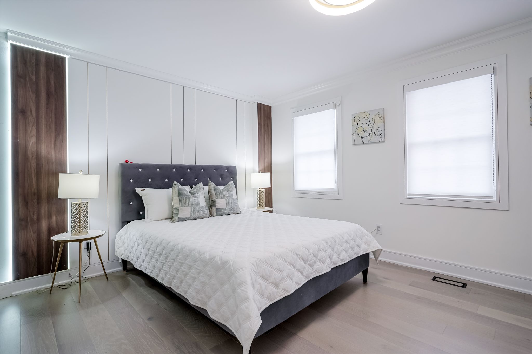 Remarks for clients beautiful and spacious 4-bedroom detached home with a professionally finished legal basement apartment. This home features master bedrooms with large sitting area with gas fireplace and tv wall and his/her closet. Main floor layout that feels open and inviting. The upgraded eat-in kitchen offers ceramic flooring, a stylish backsplash.. The main floor also includes a full3-piece washroom, a warm family room with a fireplace and hardwood floors, a separate dining room, a formal living room with hardwood flooring and throughout crown moulding main and upper floor. The upper level offers four generous bedrooms and three full bathrooms. Main floor laundry with garage access adds convenience. Main floor and hallway pot lights, and a 3-piece bathroom. Wainscoting and wall decor all rooms. Spend $120000. 00 recently on renovation