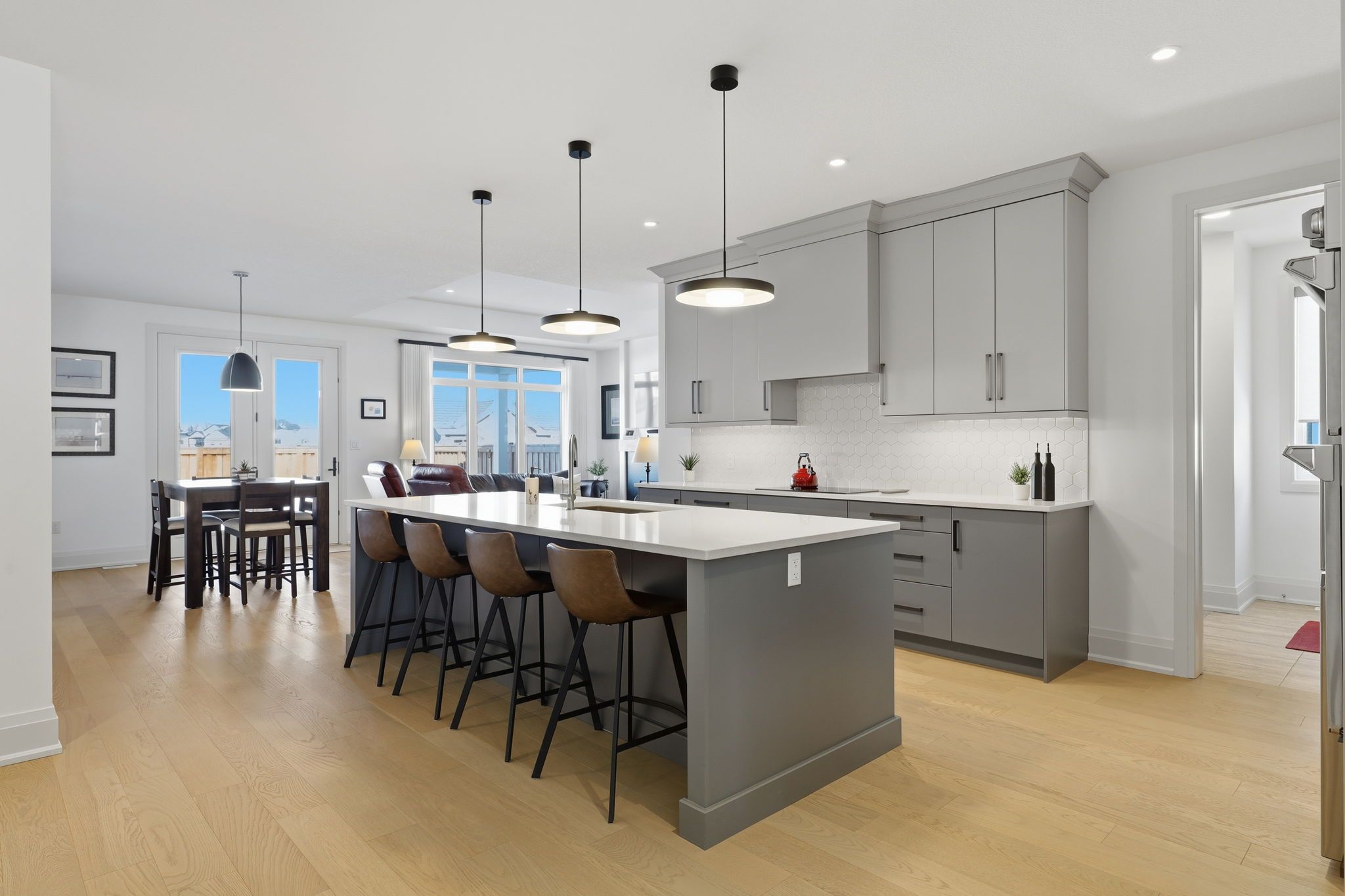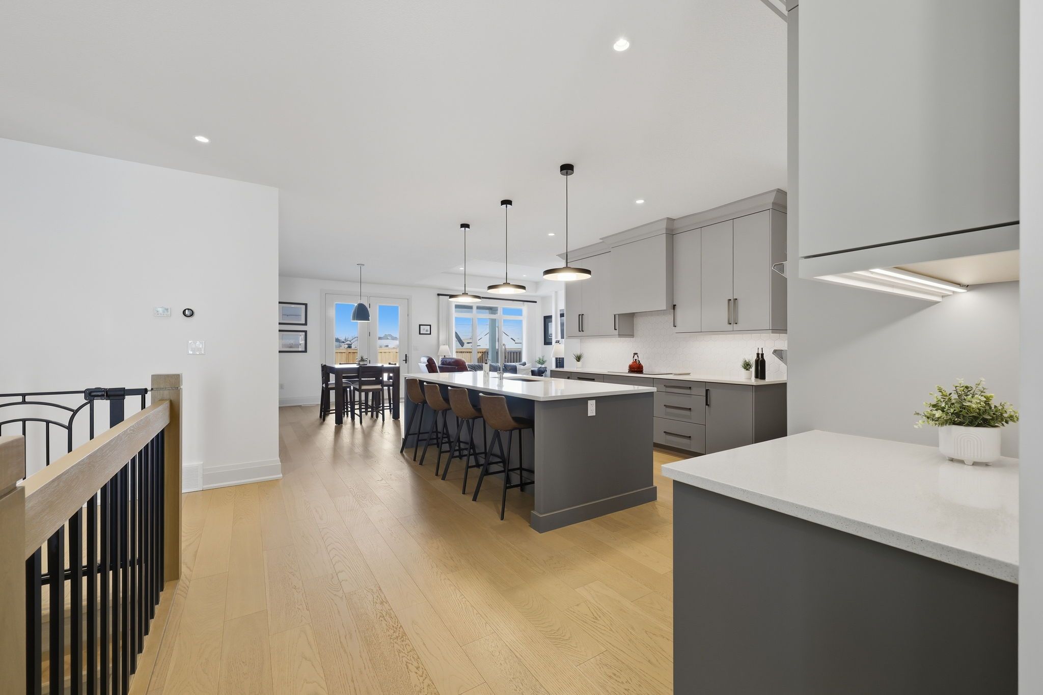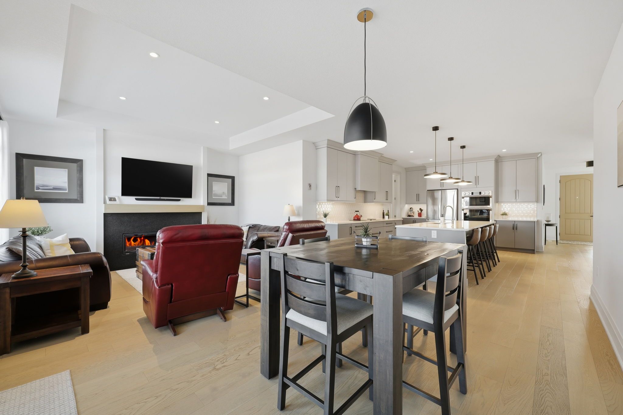 • Spacious main floor living with 9-ft ceilings and engineered hardwood.