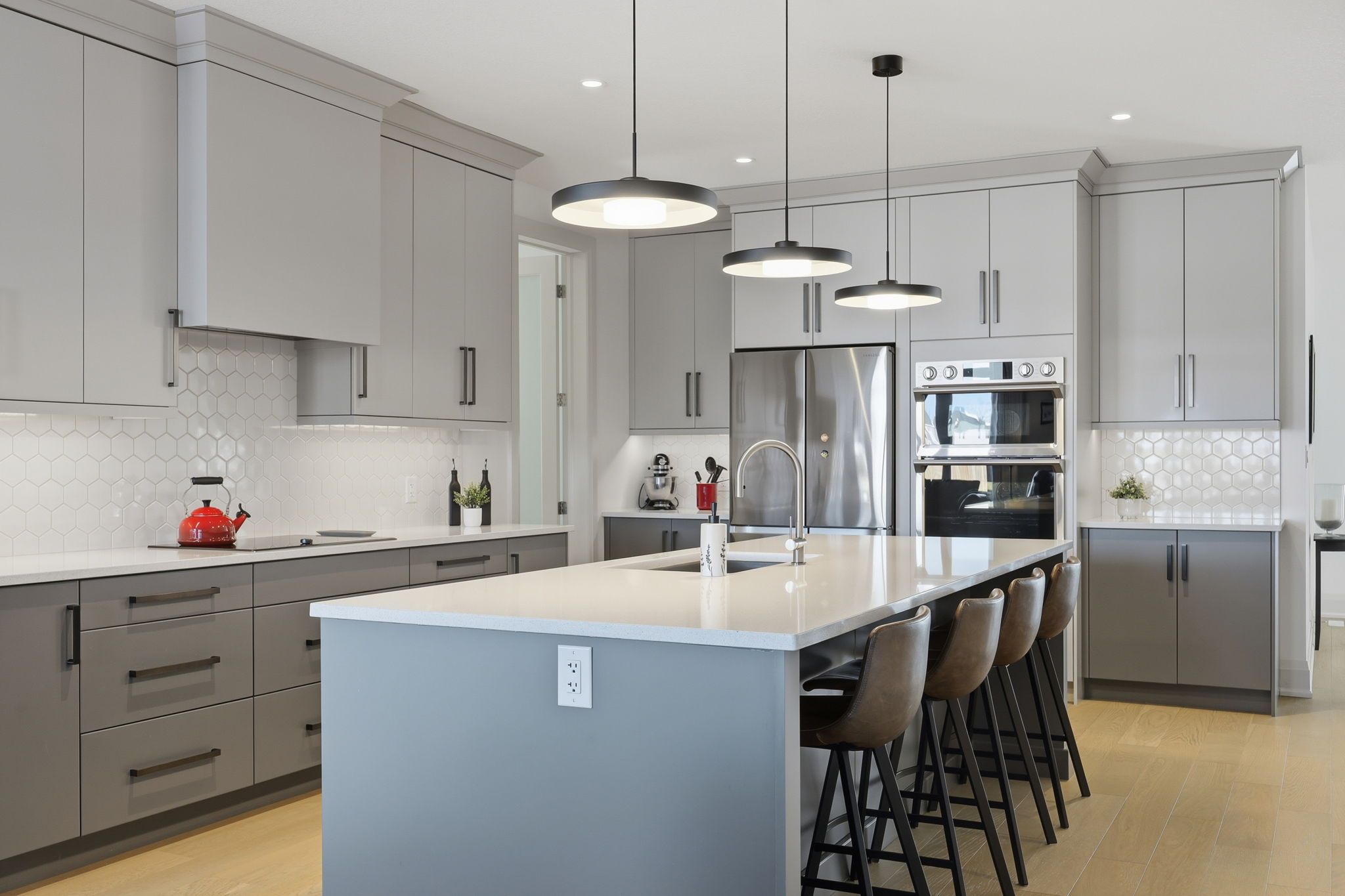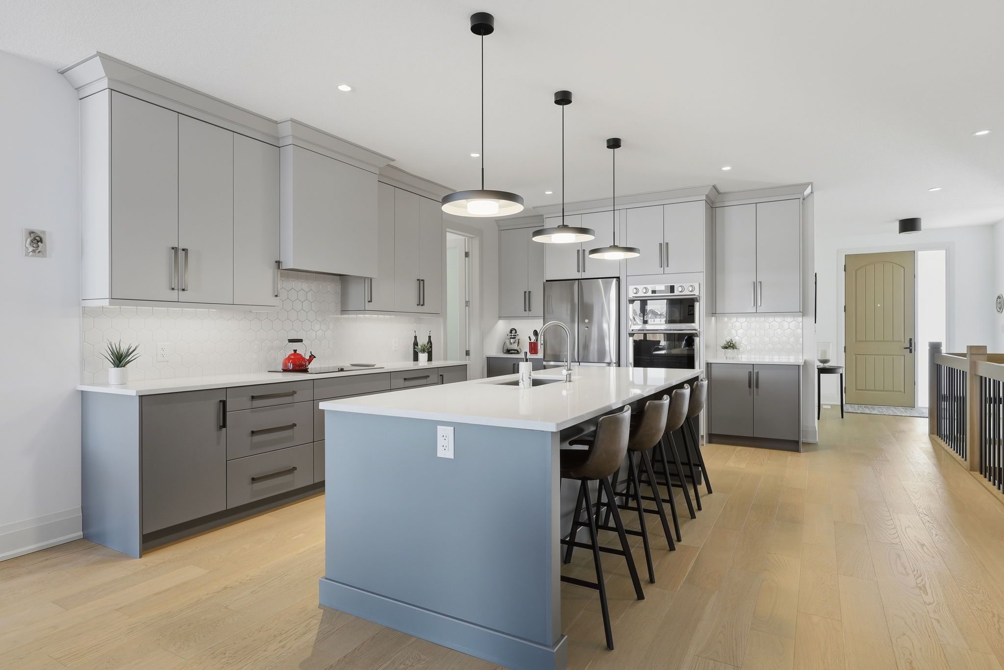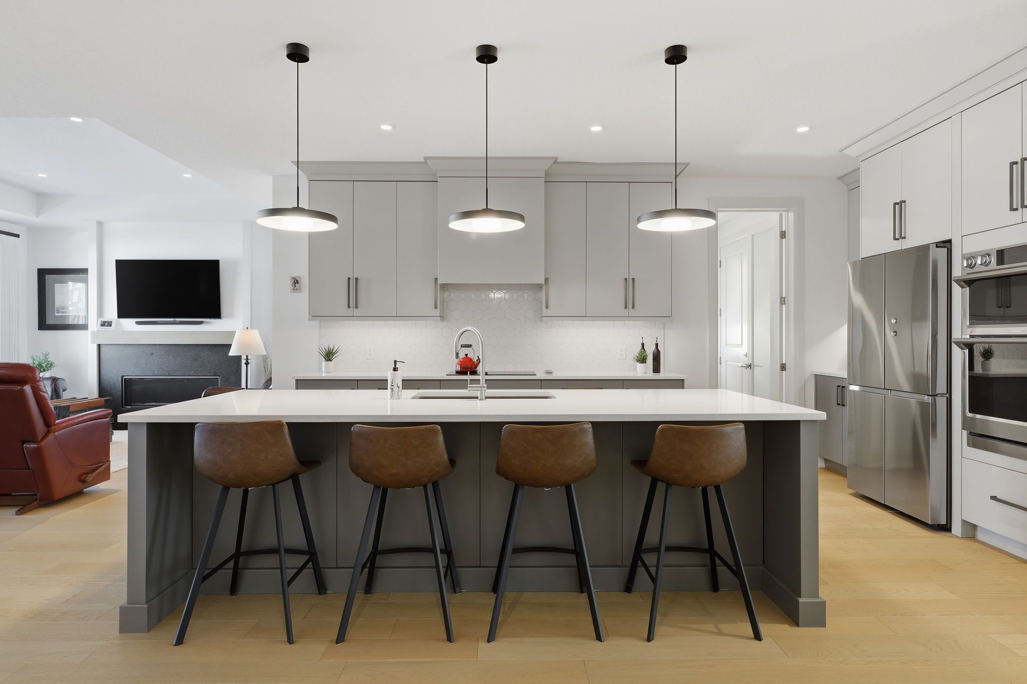 • Chef's kitchen with a 10-foot island and high-end built-in appliances.