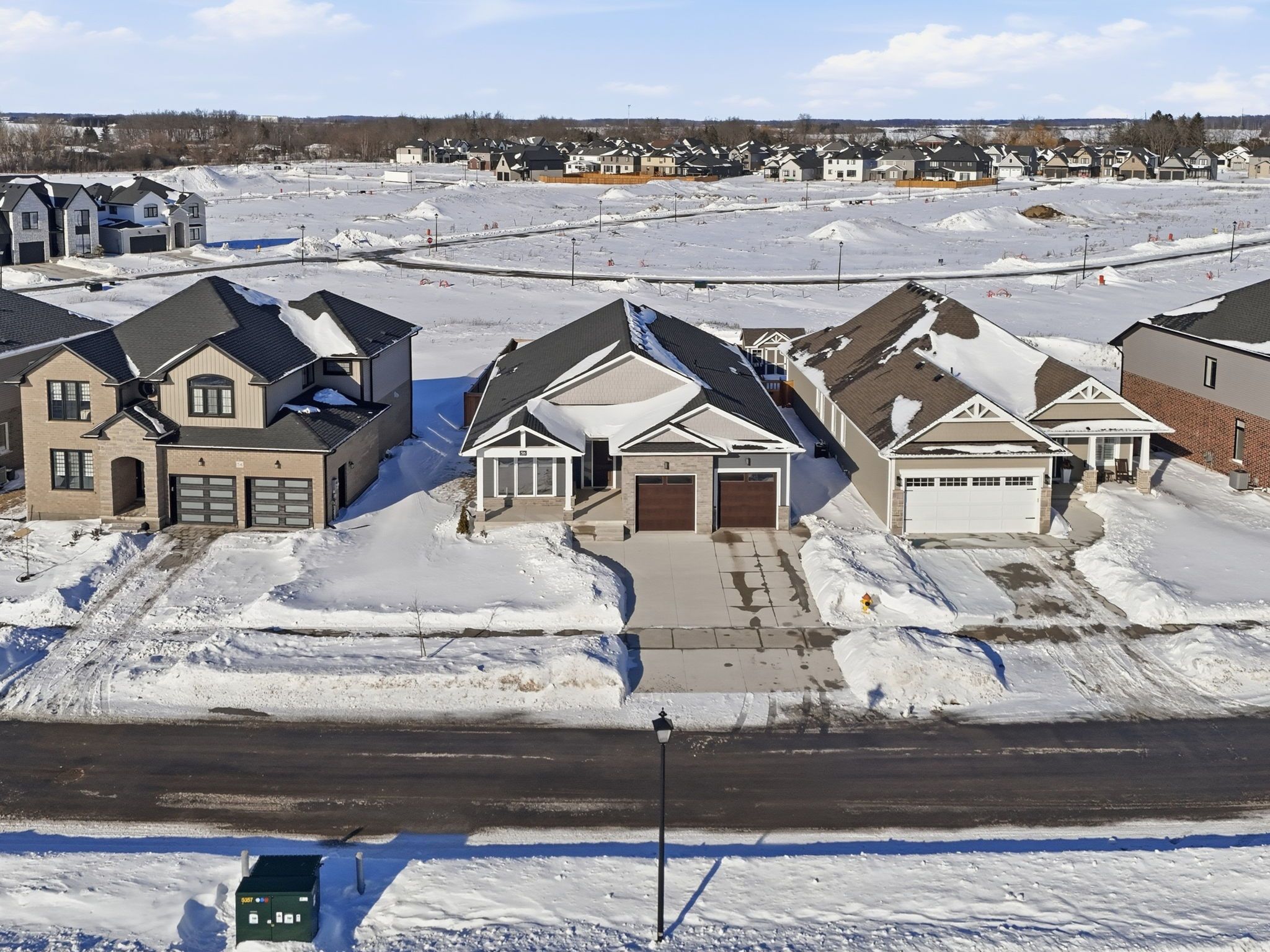 Welcome to modern bungalow living with a resort-style backyard. Built in 2022 by award-winning halcyon homes. The quality and clean lines set the stage. A wide concrete driveway, timeless brick, and hardie board shake and siding create exceptional curb appeal and long-lasting durability. Inside, 1,838 sqft of thoughtfully designed main-floor living awaits, featuring 9-ft ceilings, 8-ft interior doors, engineered hardwood throughout, and elegant 7. 5" baseboards that elevate every space. This home offers three main-floor bedrooms, two with its own private ensuite, a rare and coveted feature. Enjoy curb-less glass showers, quartz countertops, and custom lighting that create a true spa-like experience for family and guests alike. At the heart of the home, the chef's kitchen is anchored by a 10-foot island perfect for gathering and entertaining. High-end built-in appliances, ample cabinetry, and a large walk-in pantry make this space ideal for those who love to cook and host. Open-concept layout flows seamlessly into the family room, where oversized windows and a gas fireplace with stone surround create a warm, inviting atmosphere. Practicality meets luxury with a spacious mud/laundry area, generous storage, and direct access to the oversized double car garage, with stairs to the lower level, ideal for in-law potential, future finishing w a roughed in bathroom, or simply easy access for everyday living. Outside experience a backyard designed for unforgettable summers. Through custom french doors, enjoy morning sun and evening gatherings under the 21' x 10' covered patio. A brand-new gas heated 3ft-5ft saltwater pool, extending your swimming season transforming this property into your own private retreat. Perfectly located just minutes from south london, with easy access to the 401, costco, st. Thomas, and port stanley, this exceptional bungalow blends upscale living with everyday convenience. This is more than a home-it's a lifestyle. Come experience it for yourself.