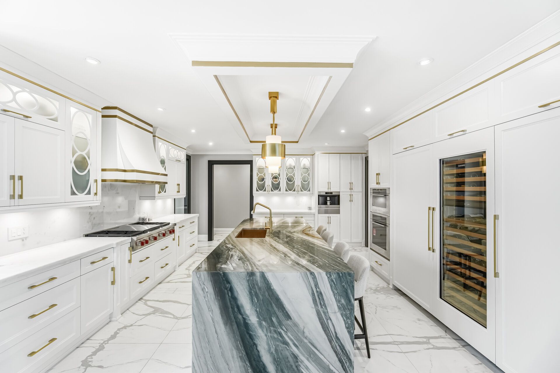 • Stunning chef's kitchen with premium appliances and quartzite island.