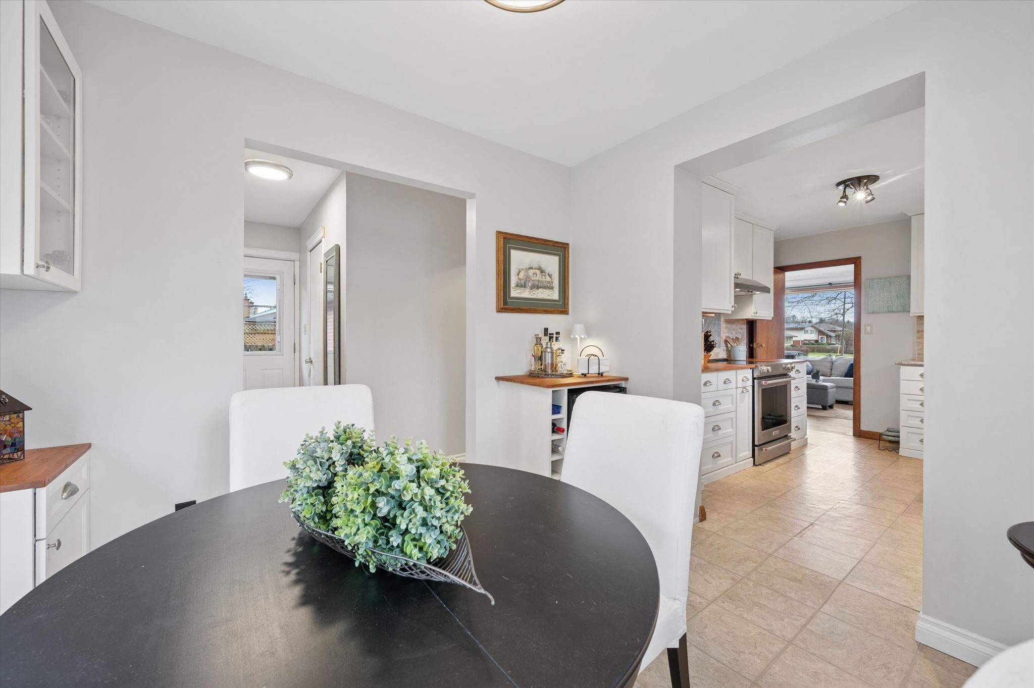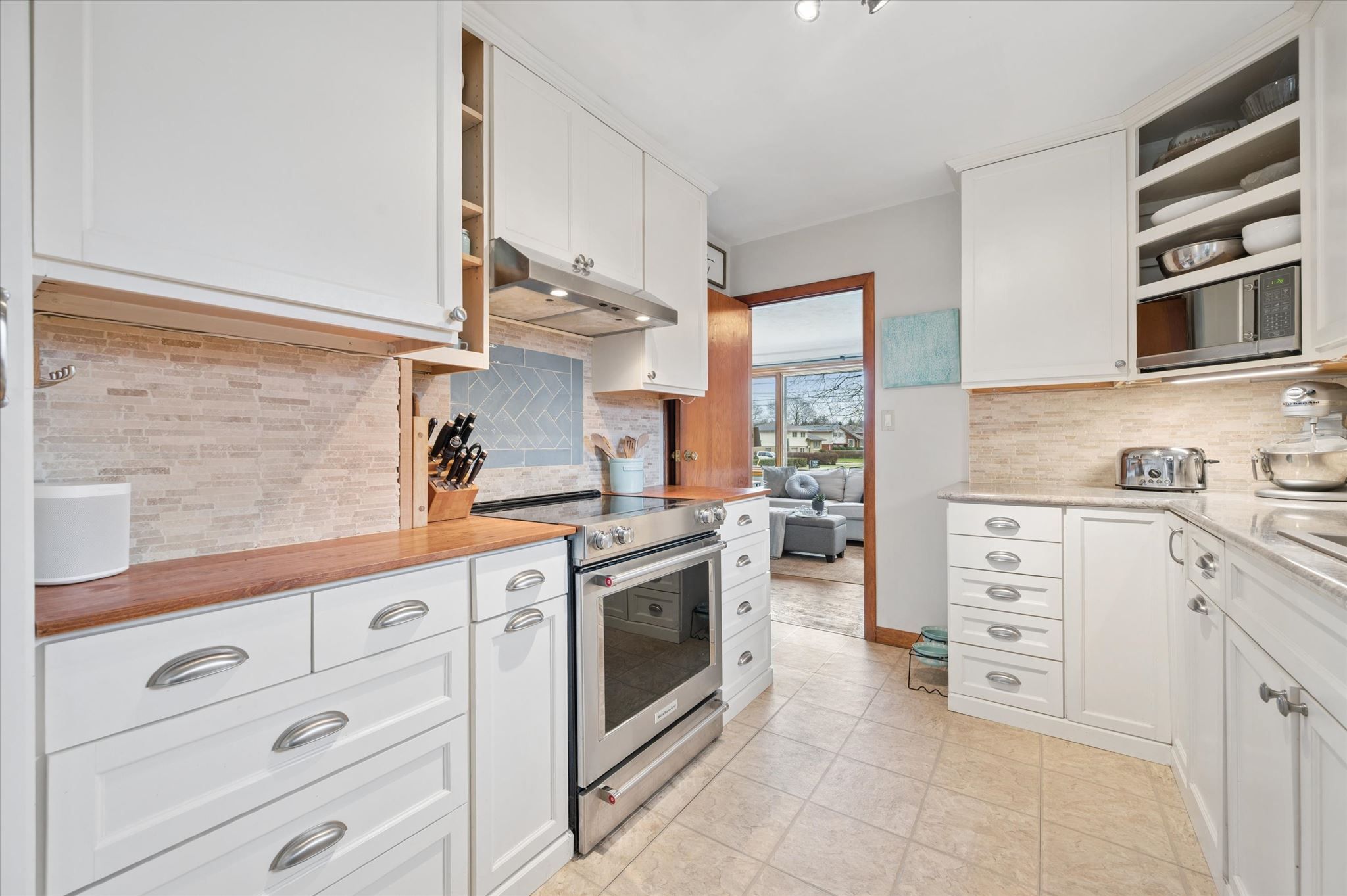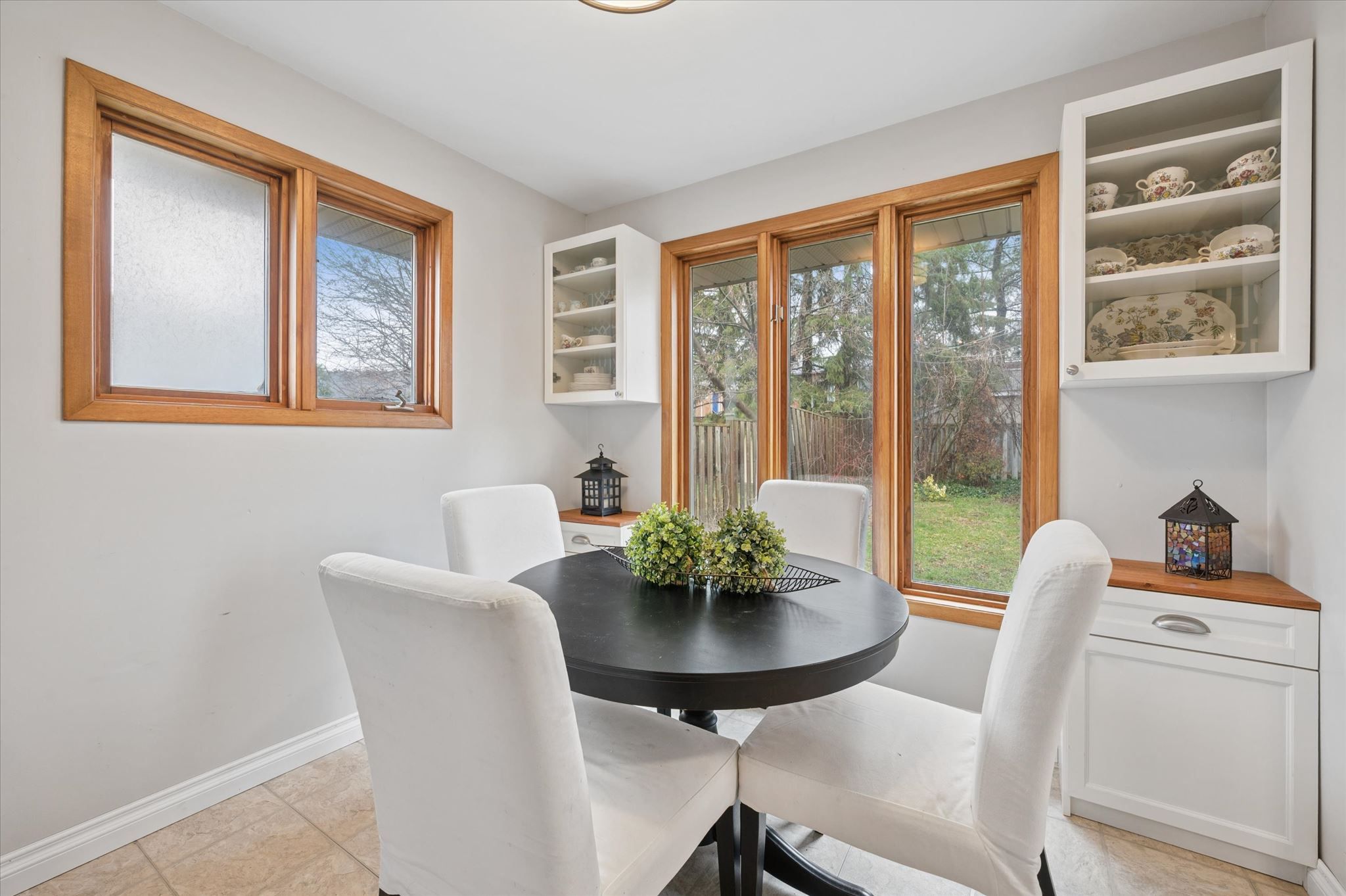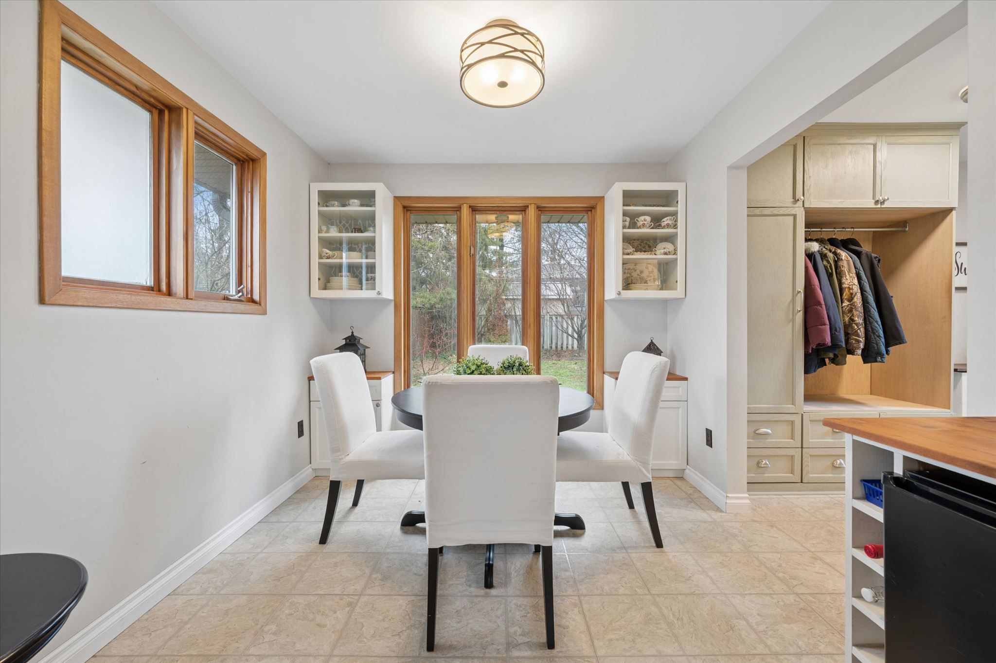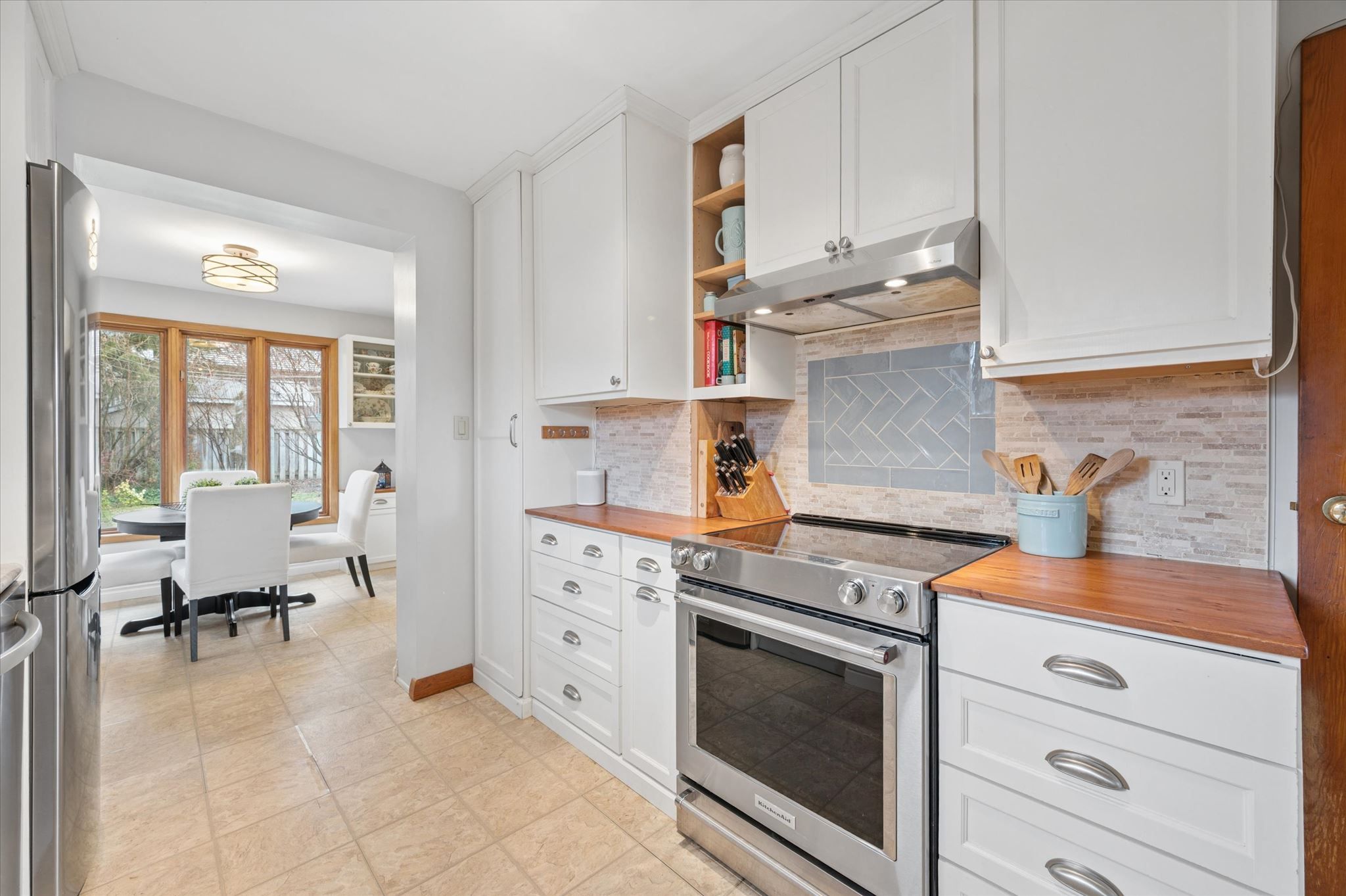 • Updated kitchen flows into a cozy sitting area with backyard views.
