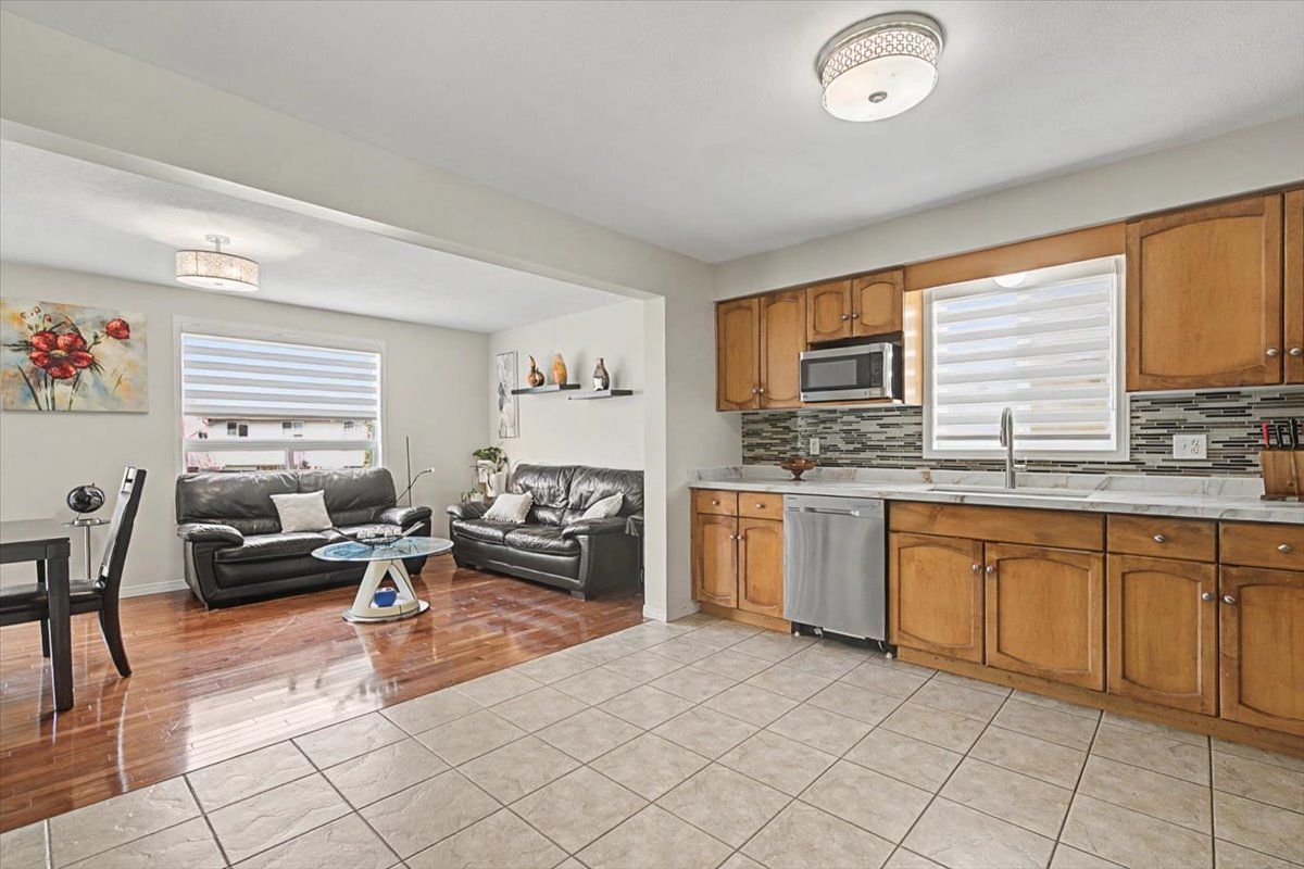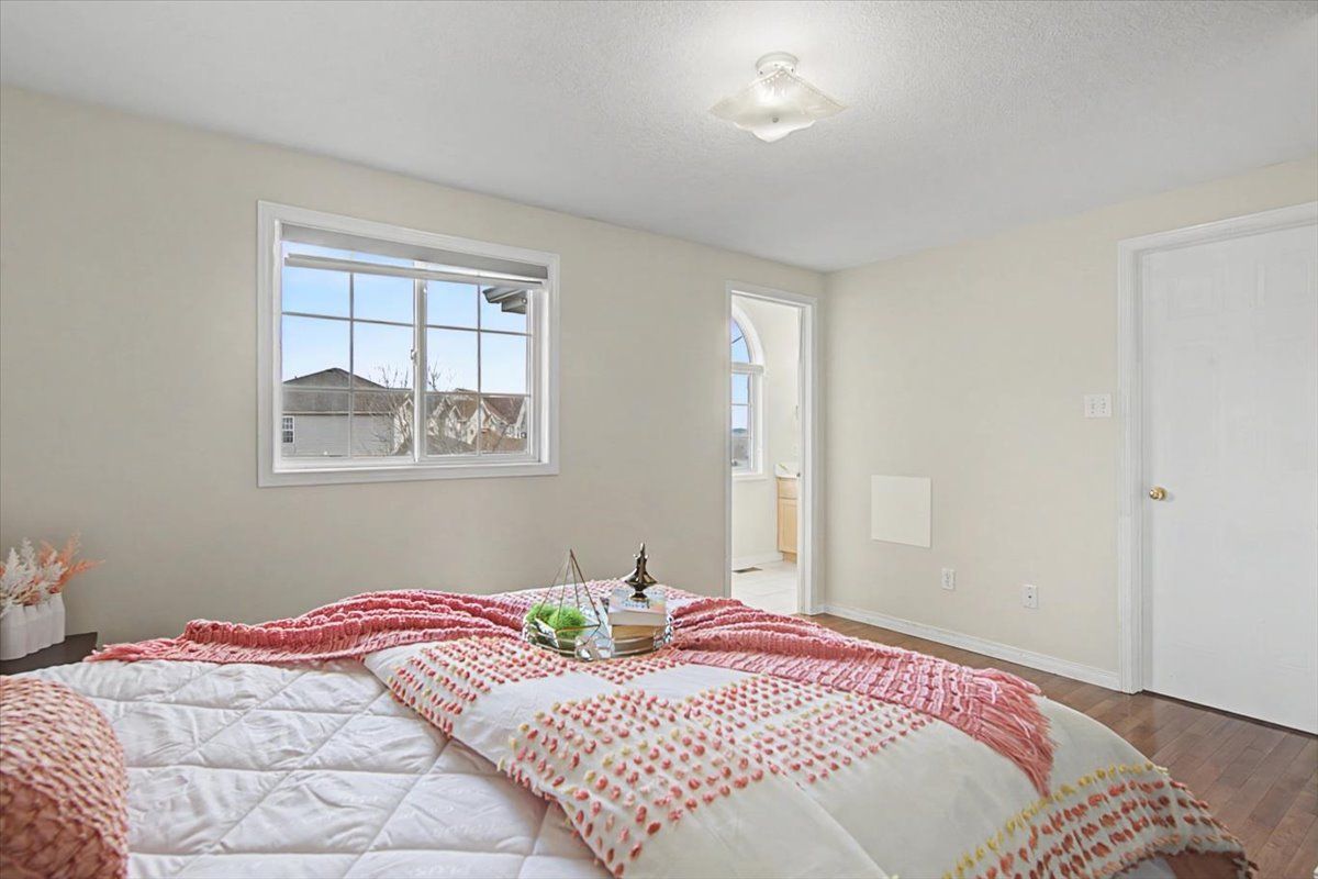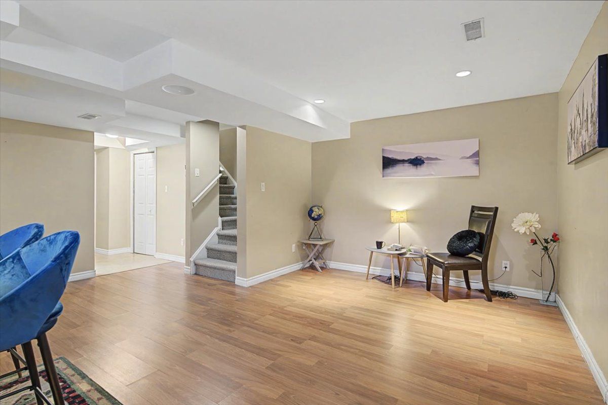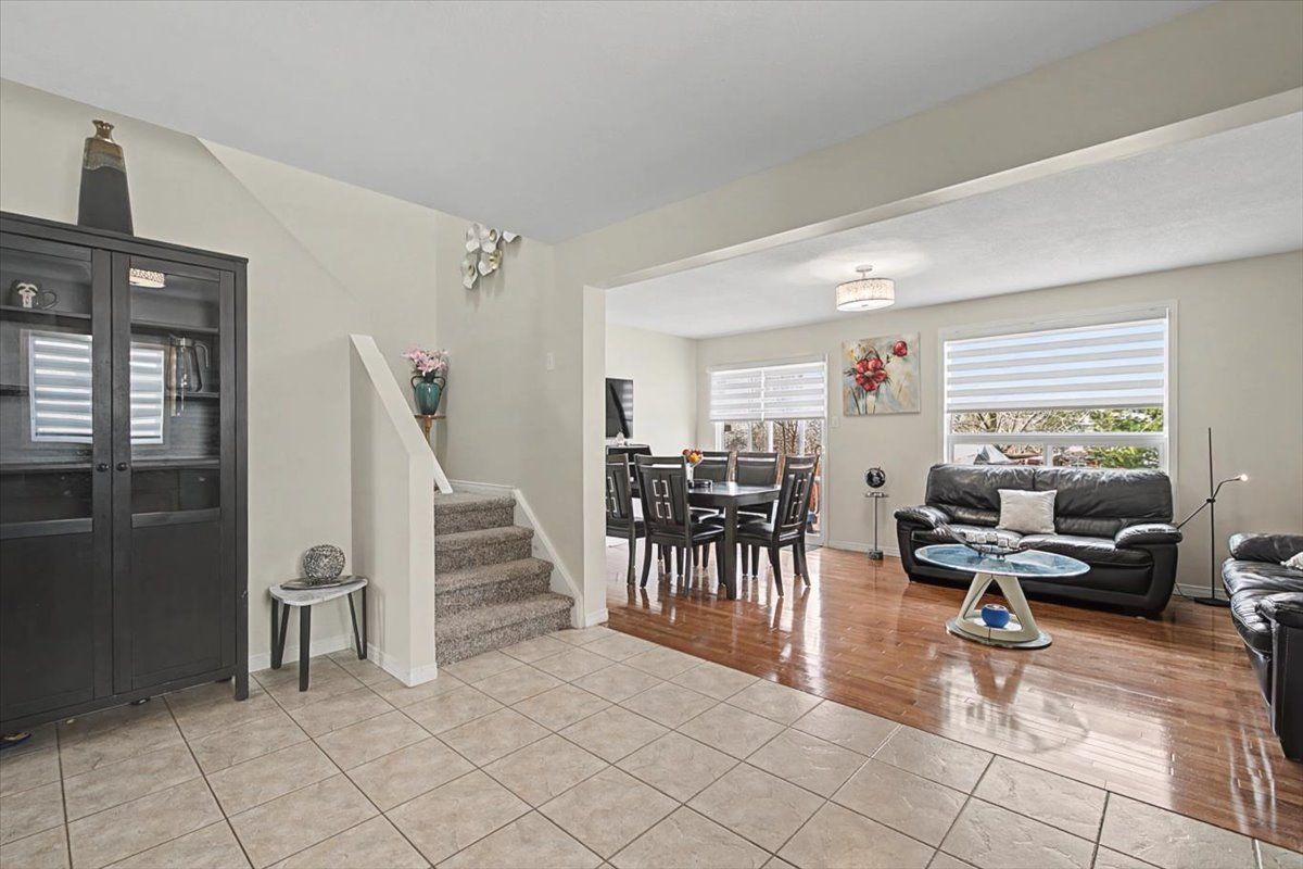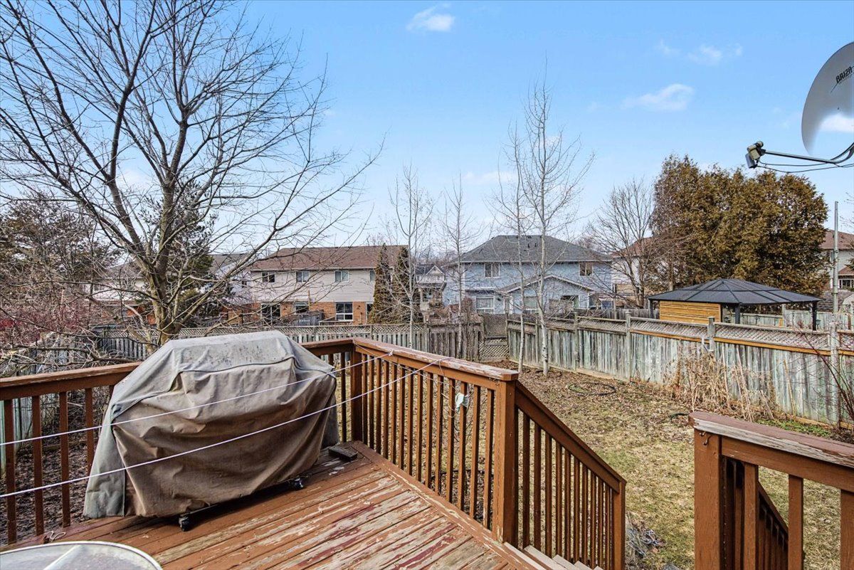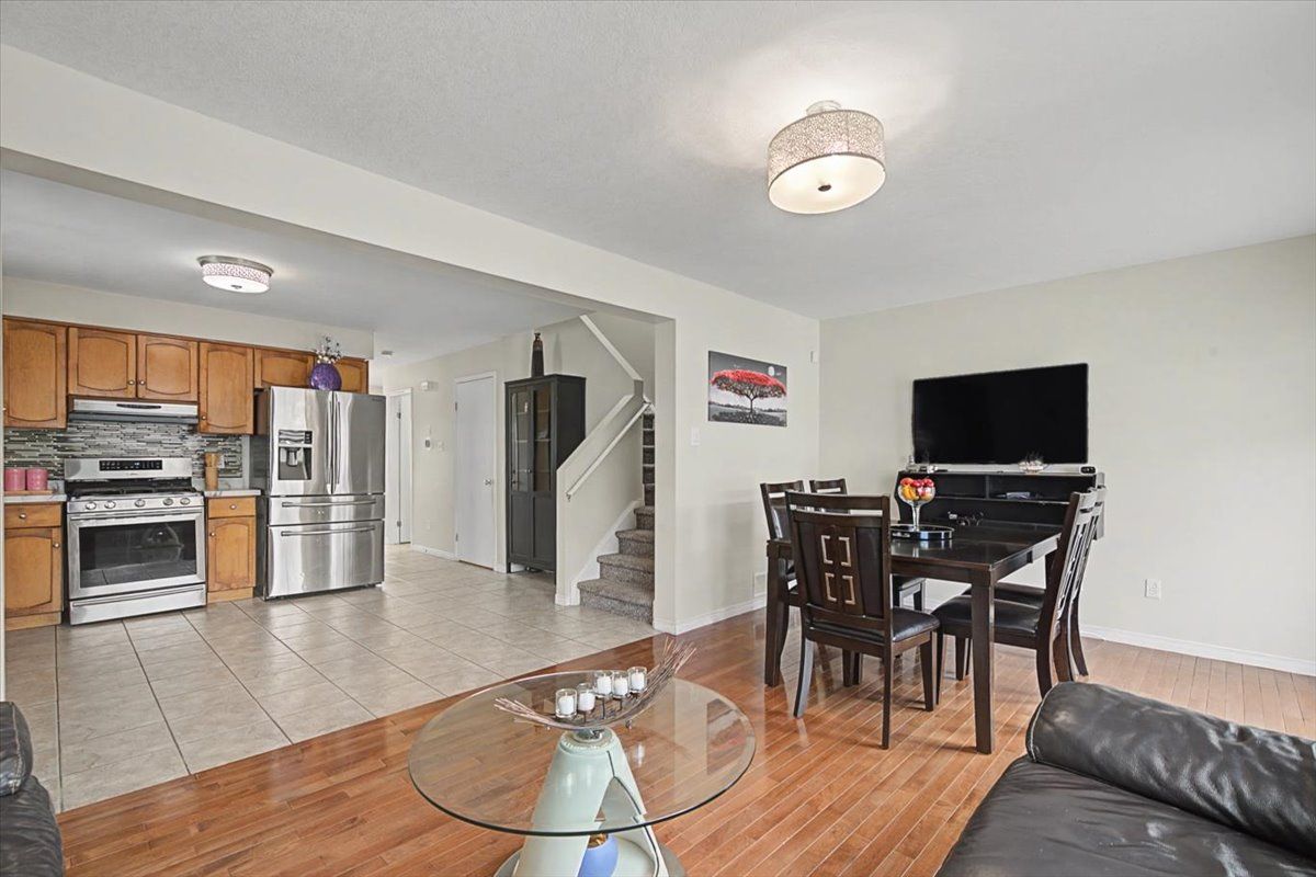 Welcome to 56 raspberry lane! This freehold semi-detached home offers 3 bedrooms, 3. 5 bathrooms, and a finished basement. The open-concept main floor features bright living and dining areas with hardwood floors, a stylish kitchen with stainless steel appliances and new quartz countertops, and a convenient powder room. Sliding doors open to a private, fully fenced pie shaped large backyard with a deck. Upstairs, the primary bedroom includes a walk-in closet and 4-piece ensuite, while two additional bedrooms share a full 4-piece bathroom, both with new quartz countertops. The finished basement adds extra living space with a recreation room, 3-piece bathroom with tiled shower, laundry, and storage. The roof and skylight were updated in 2017. With plenty of storage throughout and a location close to parks, schools, and commuter routes, this home is ready for you to move in. Book your safe, private viewing today
