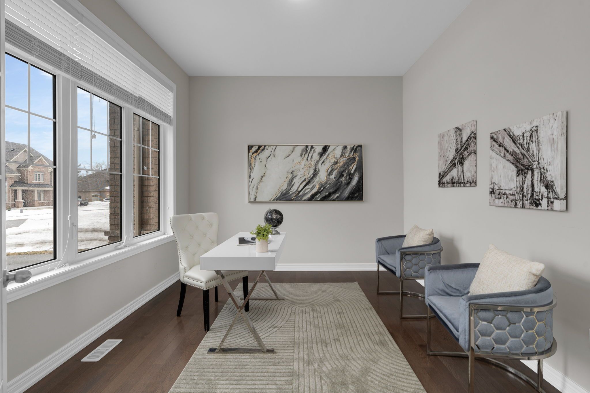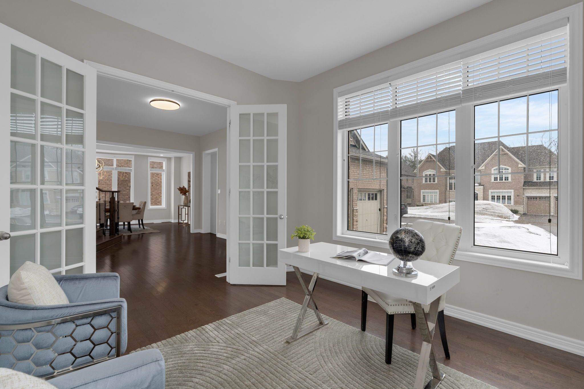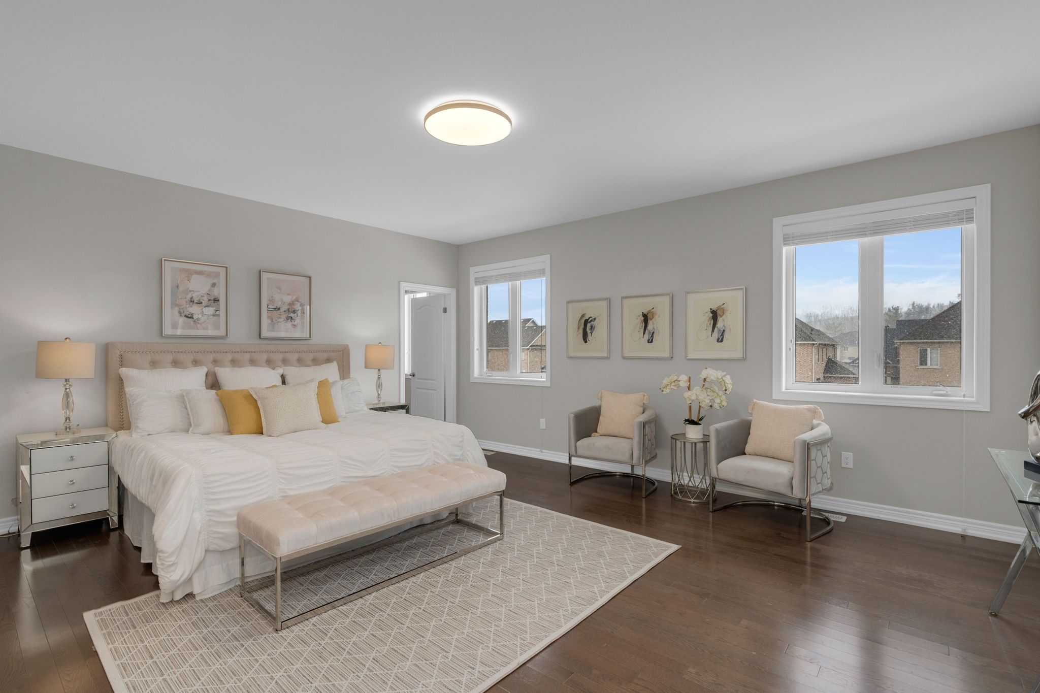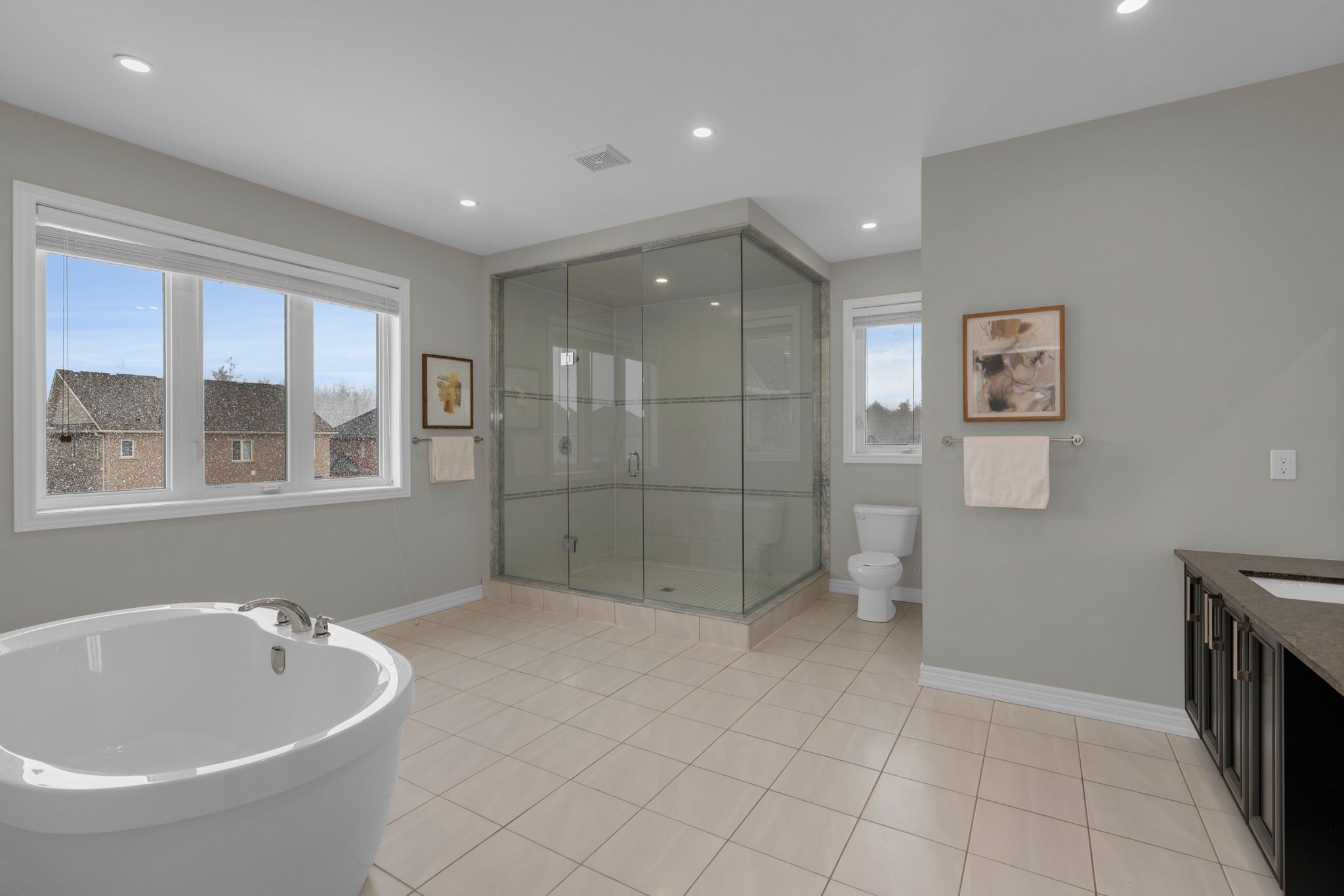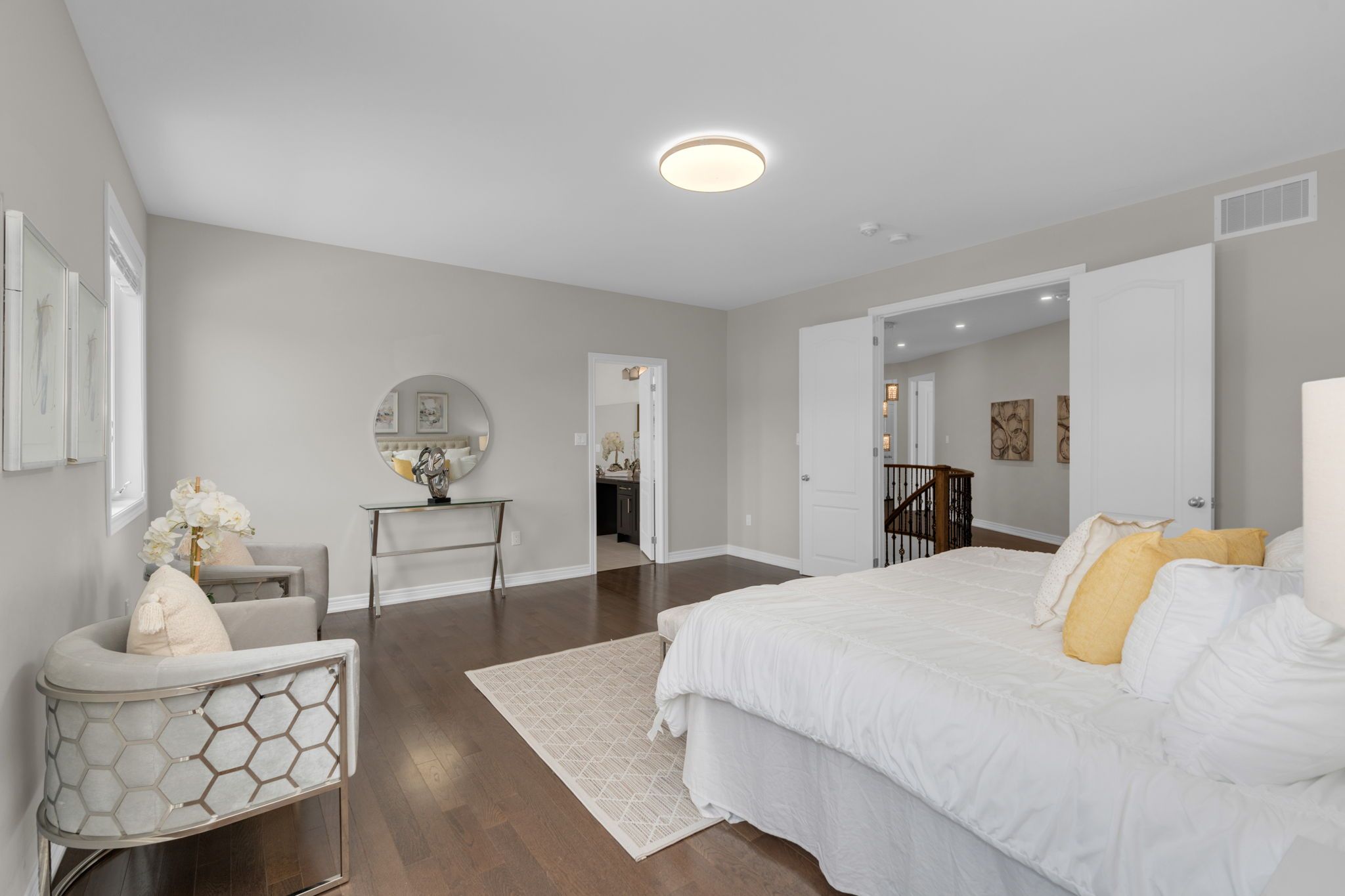 Set within the prestigious stonemanor woods community, this home stands out for its scale, layout, and level of finish. 5 bedrooms, 4 car garage and offering over 4,000 square feet, the design is both expansive and intentional, with a rare layout where each bedroom features its own ensuite, creating a level of privacy and comfort that's hard to find. The 10ft ceiling main floor offers a natural flow between principal rooms, anchored by a well-appointed kitchen with granite countertops, extended cabinetry, and a large island, opening to a bright family room with fireplace. A main floor office with french doors and a functional mudroom add to the everyday convenience. Situated on a wide, pool-sized lot, the property offers space to grow, while the four car garage split into two separate double bays provides flexibility rarely seen. The unfinished basement offers future potential for additional living space or an in-law suite. Ideally located just minutes to barrie, snow valley, trails, parks, and everyday amenities, offering a balance of space, privacy, and accessibility.