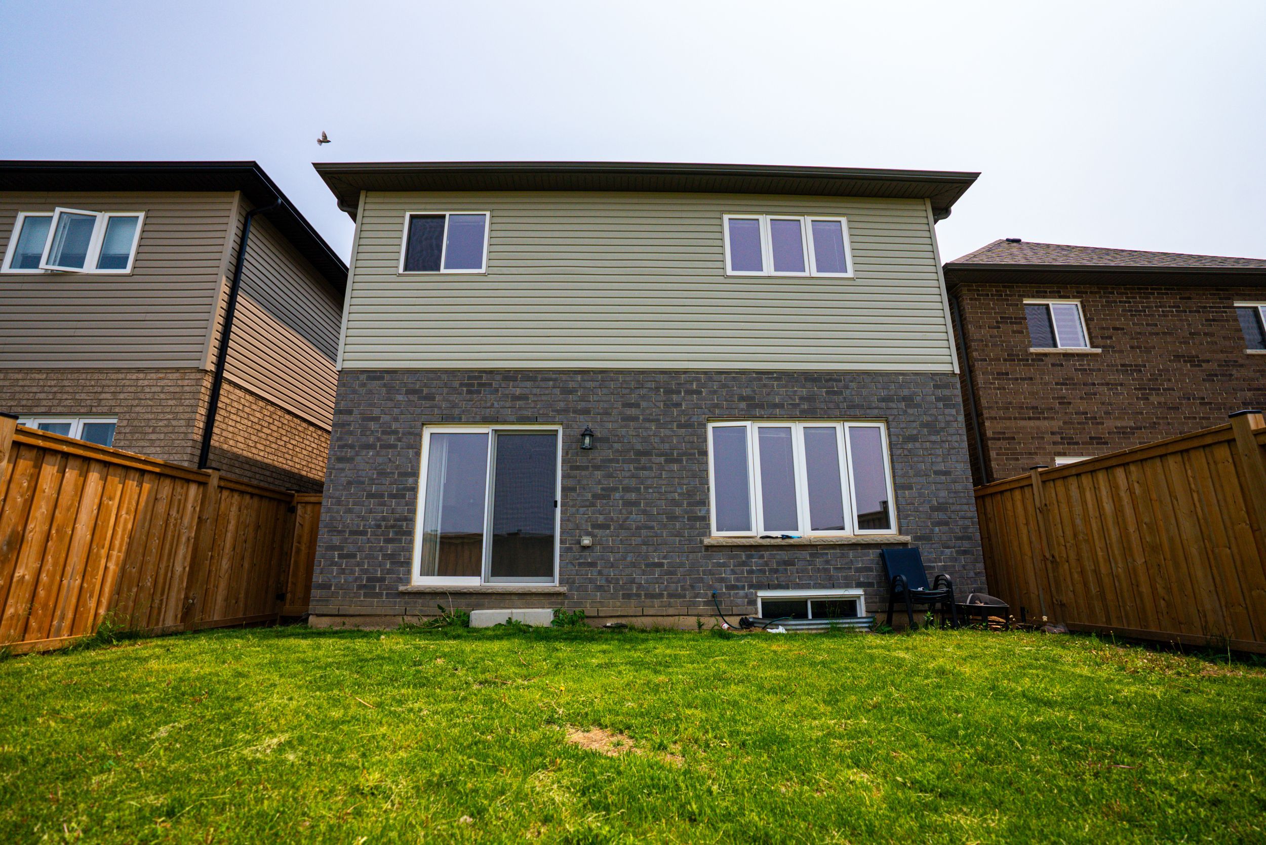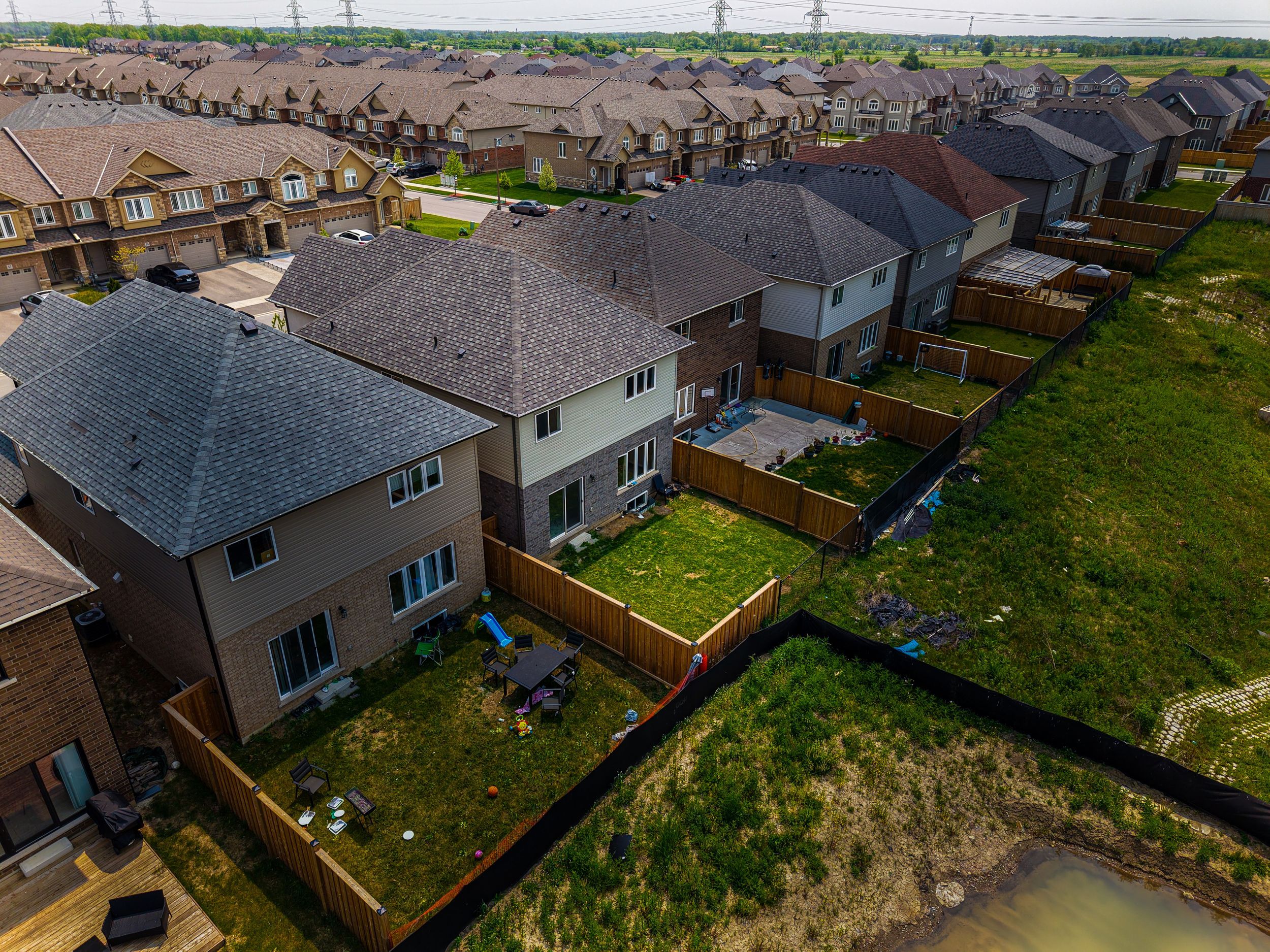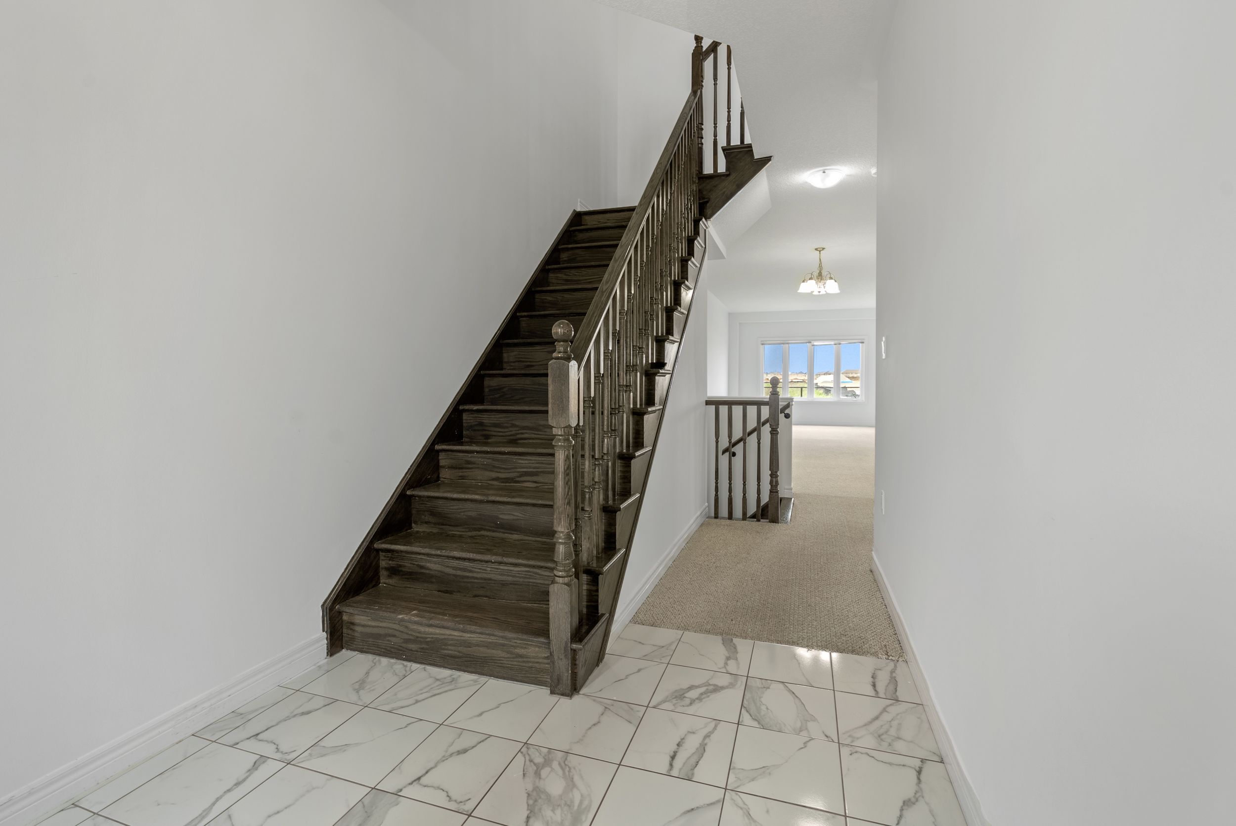 Welcome to 56 rockledge drive a spacious and sunlit 4-bedroom detached home backing onto a serene pond and walking trail in a family-friendly hamilton neighbourhood. This 2,365 sq. Ft. Residence offers functional elegance and an ideal layout for modern living. Step inside to find 9-foot ceilings and an open-concept living, dining, and kitchen area, perfect for everyday comfort and entertaining. The kitchen features tile flooring, stainless steel appliances, ample cabinetry, and a dedicated dining space with a walk-out to the backyard. Upstairs, you will find four generously sized bedrooms, including two with private ensuites, and an additional 4-piece bath to accommodate family and guests. A powder room on the main floor adds convenience, and plush broadloom carpeting adds warmth throughout most of the home. The unfinished basement offers great potential for future living space or storage. Enjoy peaceful views of the pond right from your own backyard no rear neighbours, just nature and tranquility. Located just minutes from schools, parks, shopping, restaurants, and easy access to the qew and lincoln alexander parkway, this home delivers on both location and lifestyle.