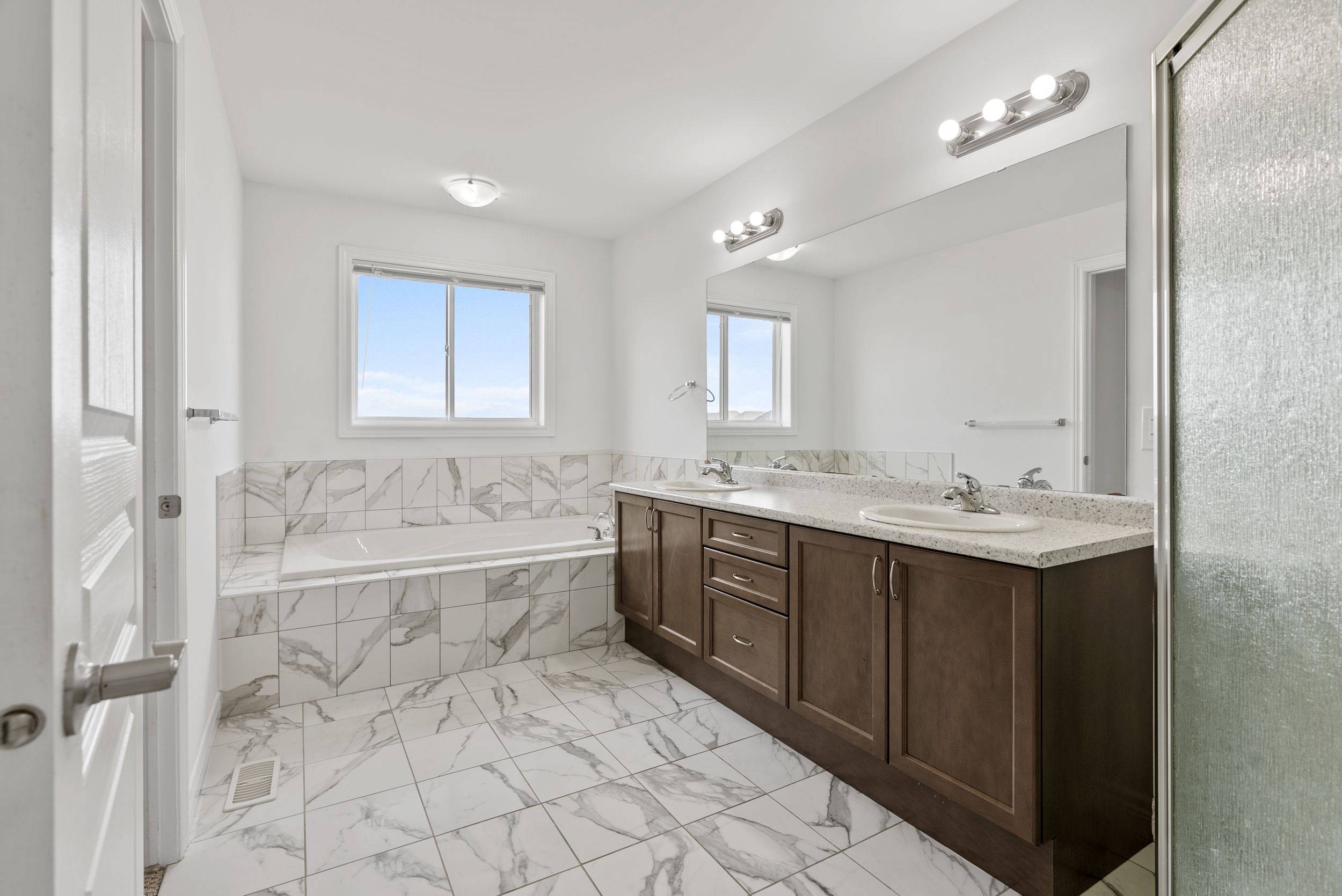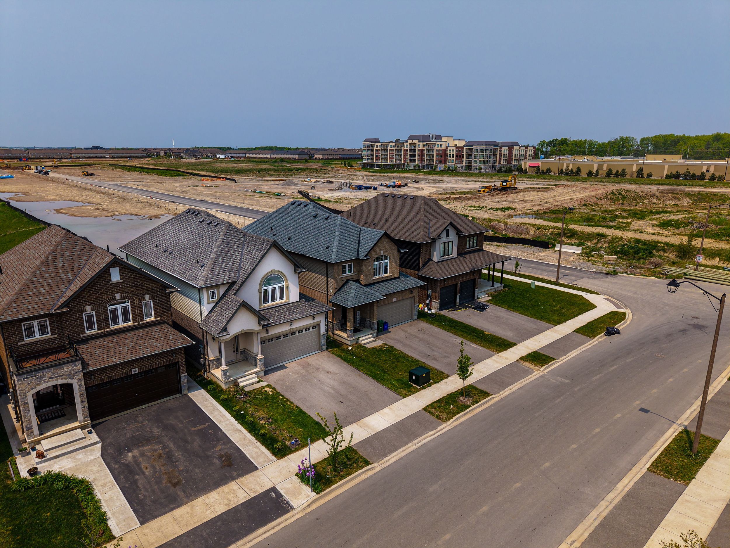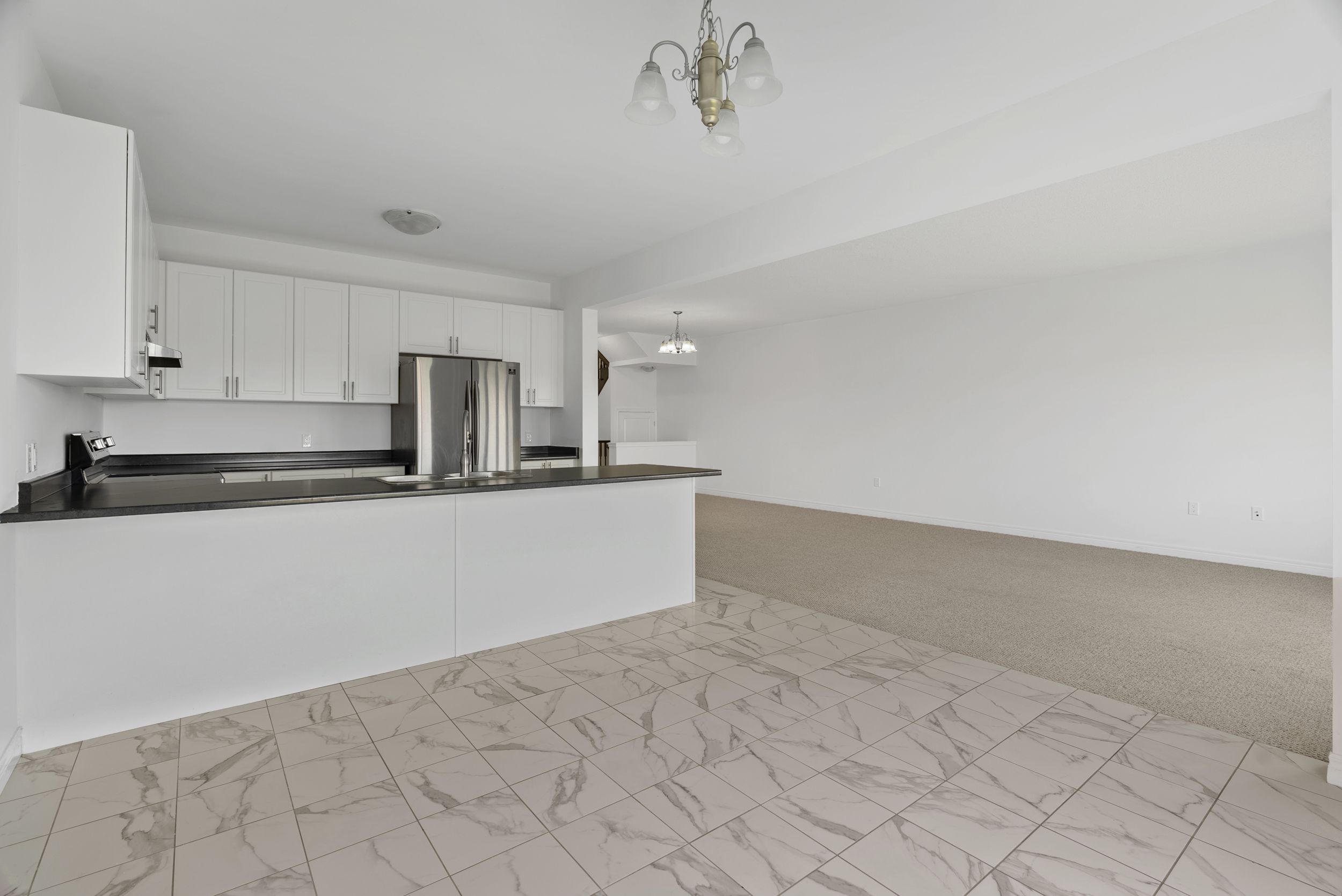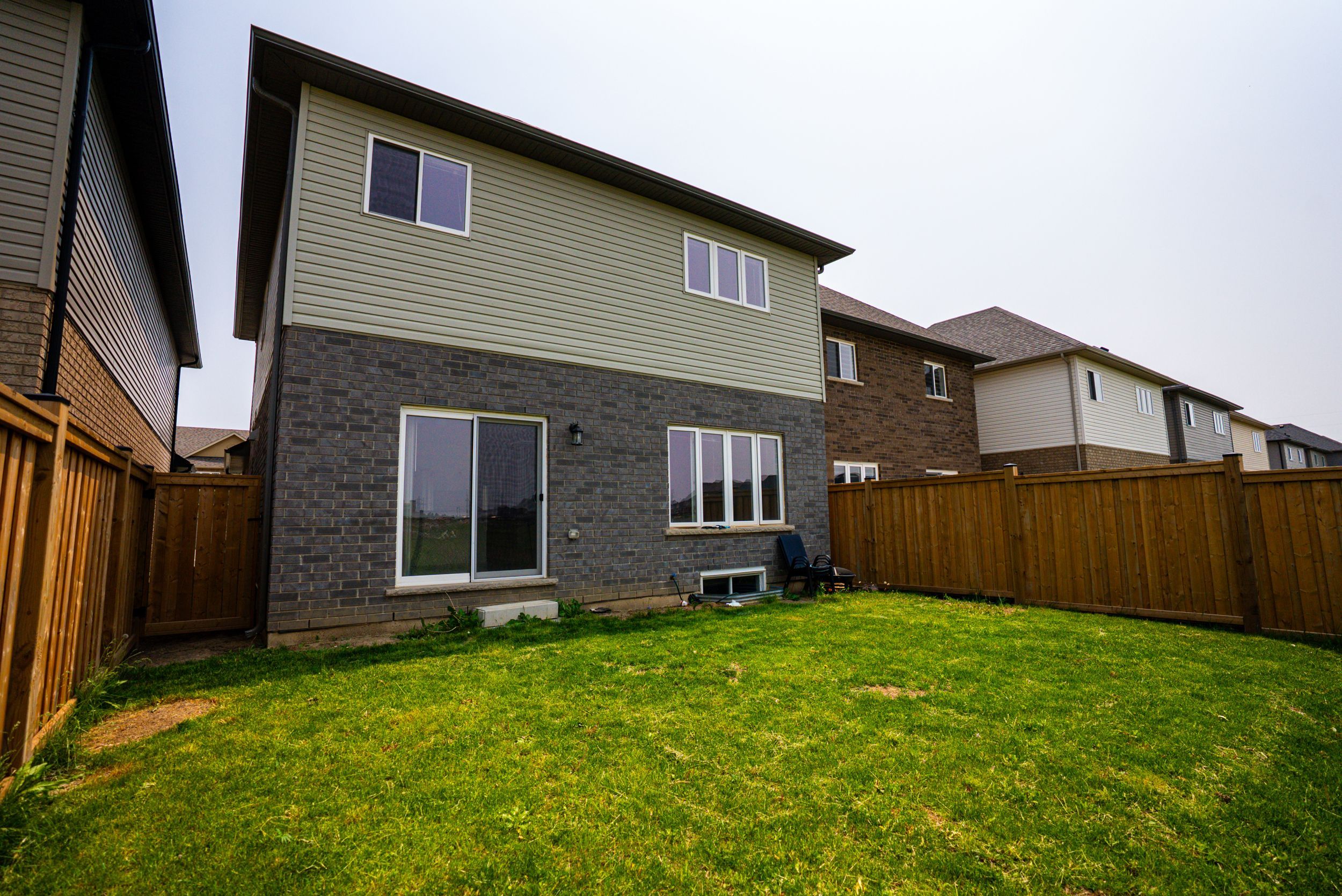Welcome to 56 rockledge drive a spacious and sunlit 4-bedroom detached home backing onto a serene pond and walking trail in a family-friendly hamilton neighbourhood. This 2,365 sq. Ft. Residence offers functional elegance and an ideal layout for modern living. Step inside to find 9-foot ceilings and an open-concept living, dining, and kitchen area, perfect for everyday comfort and entertaining. The kitchen features tile flooring, stainless steel appliances, ample cabinetry, and a dedicated dining space with a walk-out to the backyard. Upstairs, you will find four generously sized bedrooms, including two with private ensuites, and an additional 4-piece bath to accommodate family and guests. A powder room on the main floor adds convenience, and plush broadloom carpeting adds warmth throughout most of the home. The unfinished basement offers great potential for future living space or storage. Enjoy peaceful views of the pond right from your own backyard no rear neighbours, just nature and tranquility. Located just minutes from schools, parks, shopping, restaurants, and easy access to the qew and lincoln alexander parkway, this home delivers on both location and lifestyle.