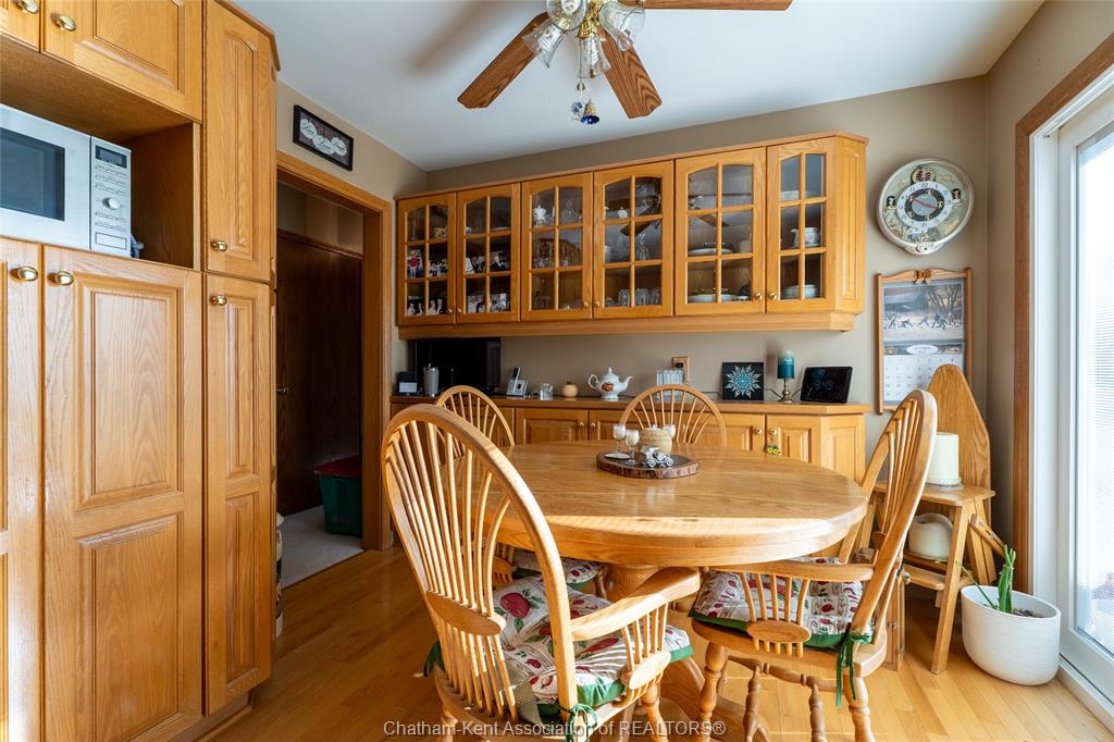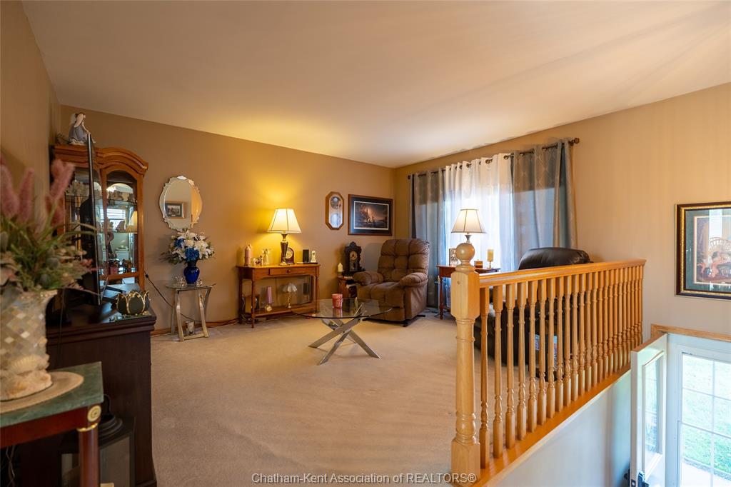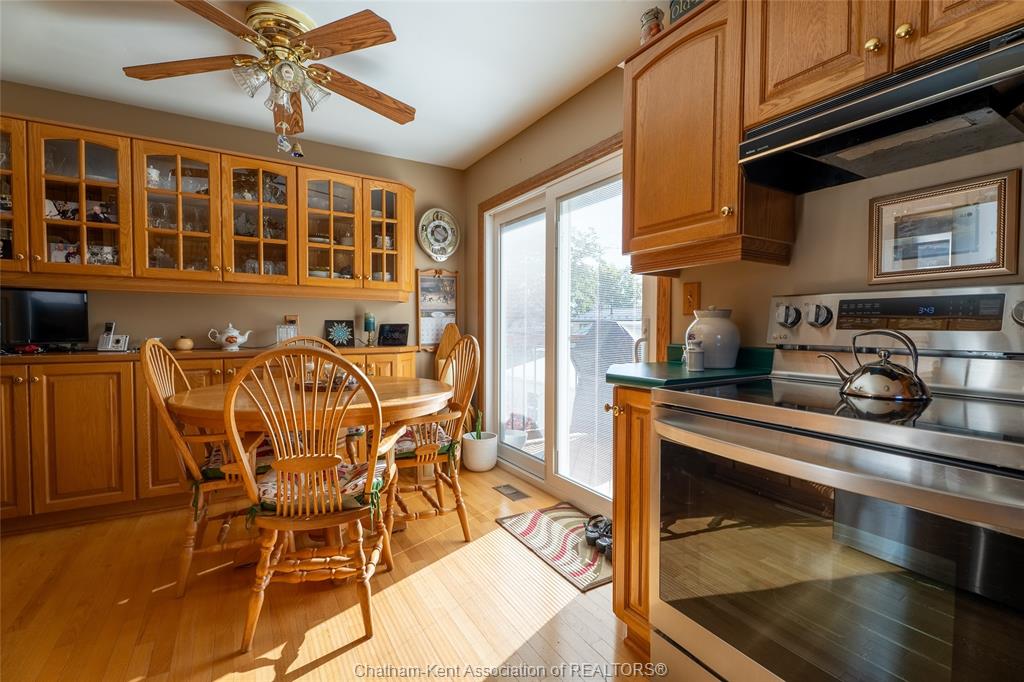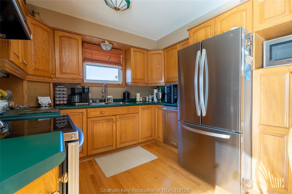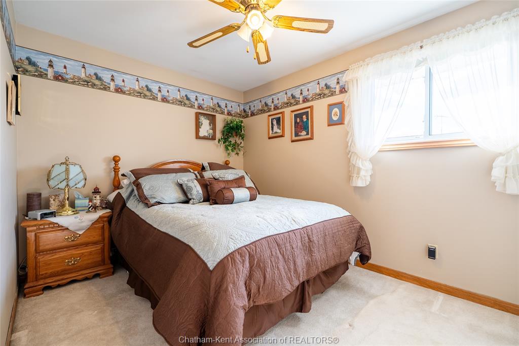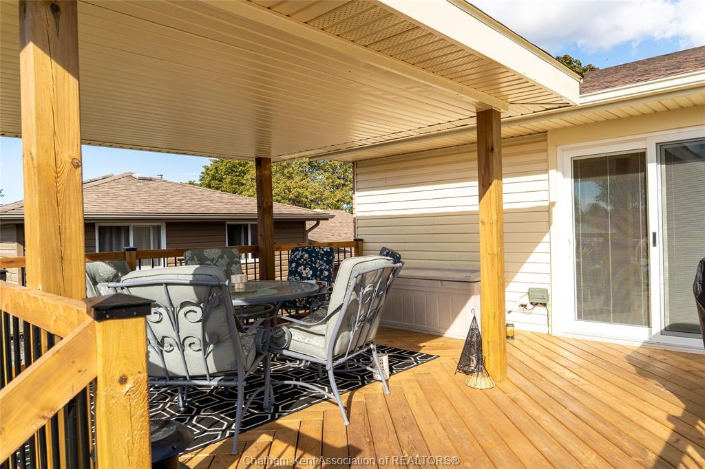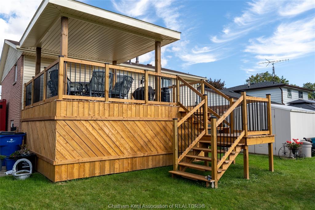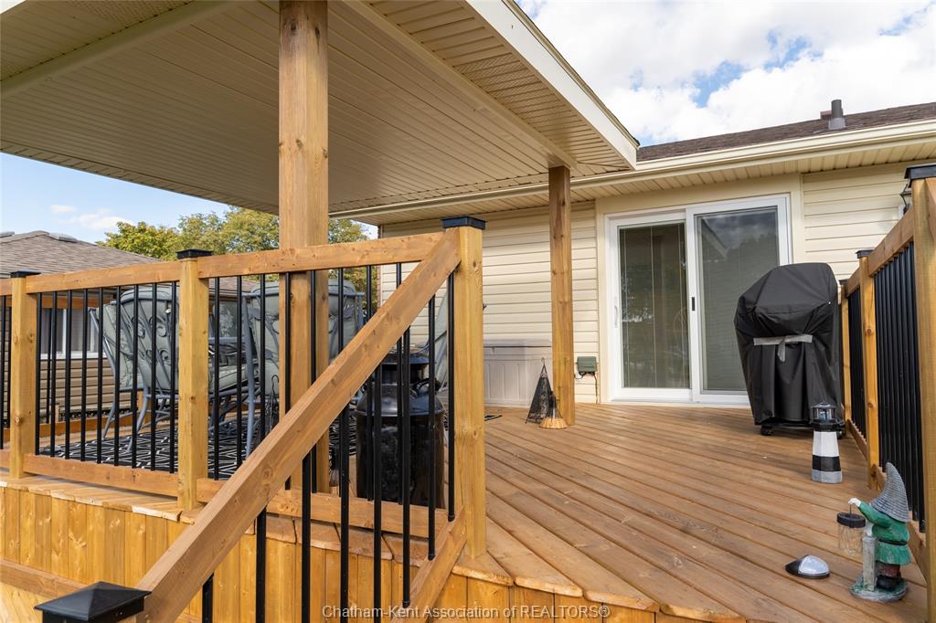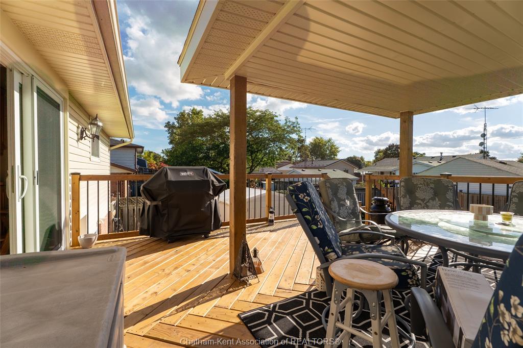 Welcome to this beautifully maintained raised ranch on a quiet crescent in chatham’s desirable northside neighbourhood. Pride of ownership is evident inside and out, with immaculate landscaping, lush gardens, and an inground sprinkler system front and back keeping everything picture-perfect. The main level offers a bright, inviting open-concept living and dining area, a custom oak eat-in kitchen with built-in cabinetry, and new patio doors (2025) leading to a spectacular multi-level covered deck built in 2025 — ideal for entertaining or relaxing while overlooking the beautifully fenced backyard. Two comfortable bedrooms and a 4-piece bath complete the main floor. The lower level features a spacious family room with fireplace, a third bedroom or optional home office, a convenient 2-piece bath, laundry area, storage, and a walk-out to the backyard. Outdoors, enjoy two storage sheds, a manicured lawn, and tasteful landscaping that enhance this home’s curb appeal and functionality. Located in a peaceful, family-friendly area close to parks, schools, and shopping — this home is move-in ready and a true standout for those seeking quality, comfort, and care.