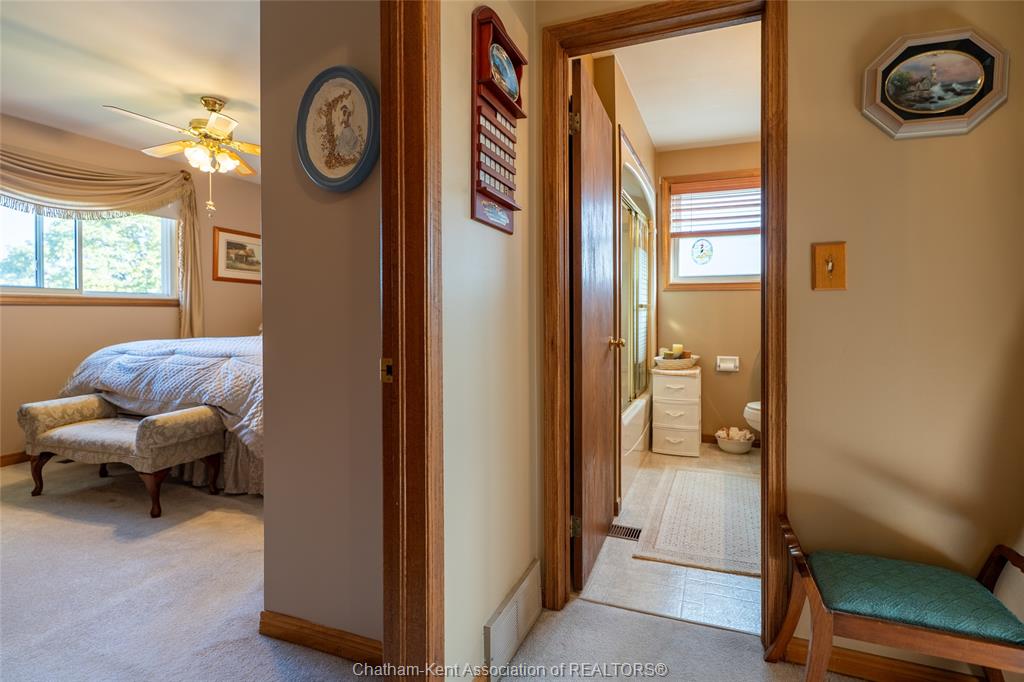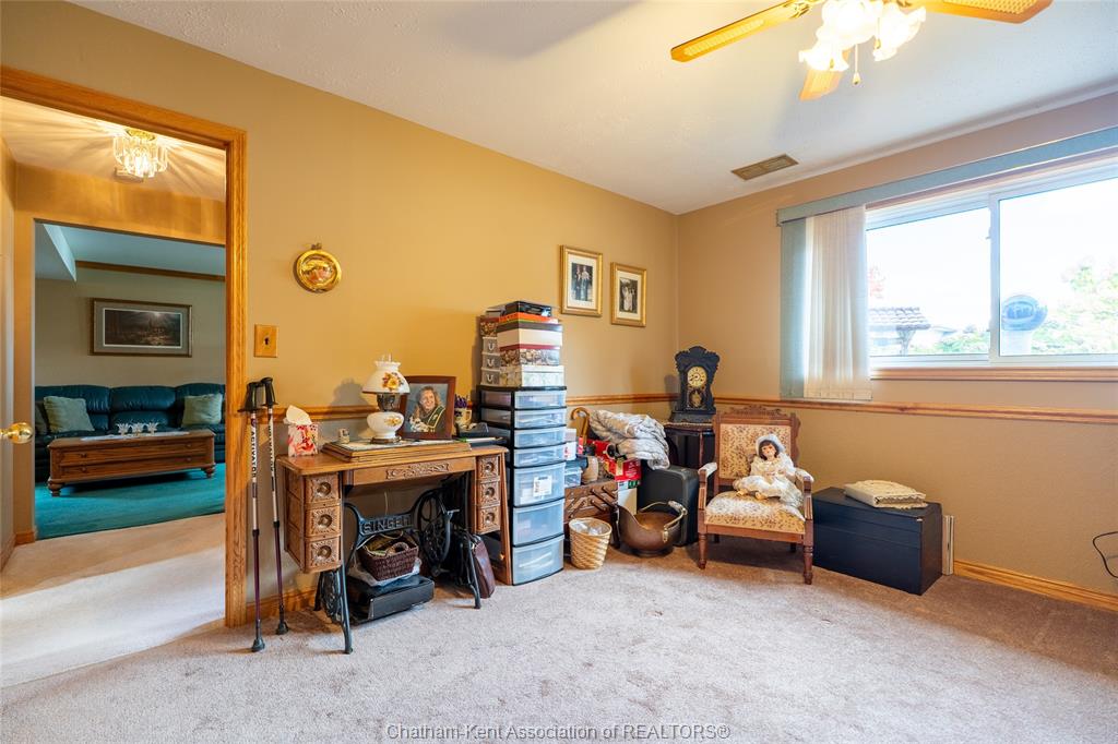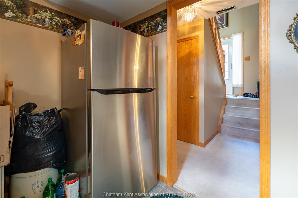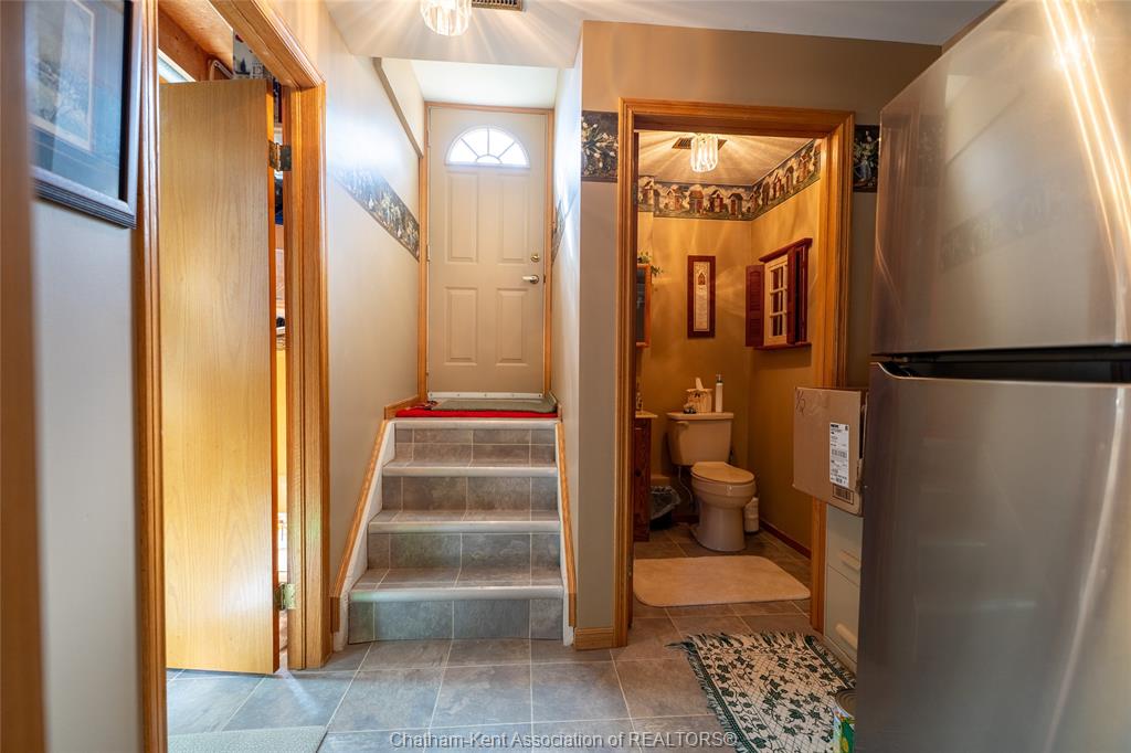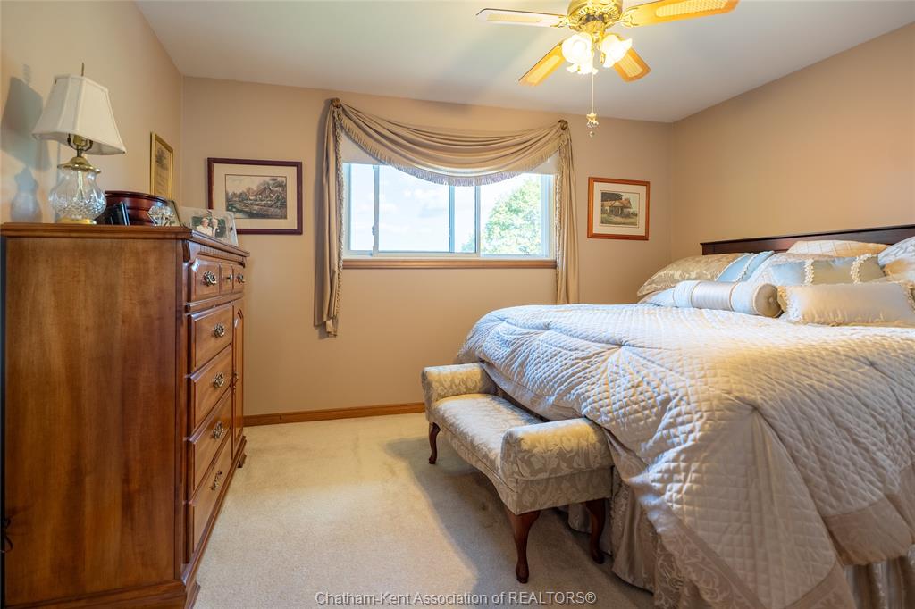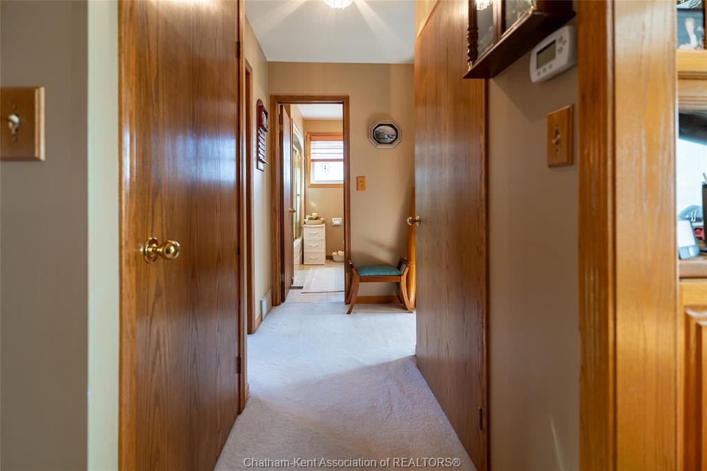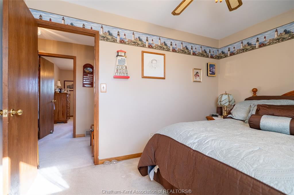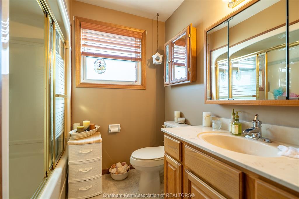 Welcome to this beautifully maintained raised ranch on a quiet crescent in chatham’s desirable northside neighbourhood. Pride of ownership is evident inside and out, with immaculate landscaping, lush gardens, and an inground sprinkler system front and back keeping everything picture-perfect. The main level offers a bright, inviting open-concept living and dining area, a custom oak eat-in kitchen with built-in cabinetry, and new patio doors (2025) leading to a spectacular multi-level covered deck built in 2025 — ideal for entertaining or relaxing while overlooking the beautifully fenced backyard. Two comfortable bedrooms and a 4-piece bath complete the main floor. The lower level features a spacious family room with fireplace, a third bedroom or optional home office, a convenient 2-piece bath, laundry area, storage, and a walk-out to the backyard. Outdoors, enjoy two storage sheds, a manicured lawn, and tasteful landscaping that enhance this home’s curb appeal and functionality. Located in a peaceful, family-friendly area close to parks, schools, and shopping — this home is move-in ready and a true standout for those seeking quality, comfort, and care.