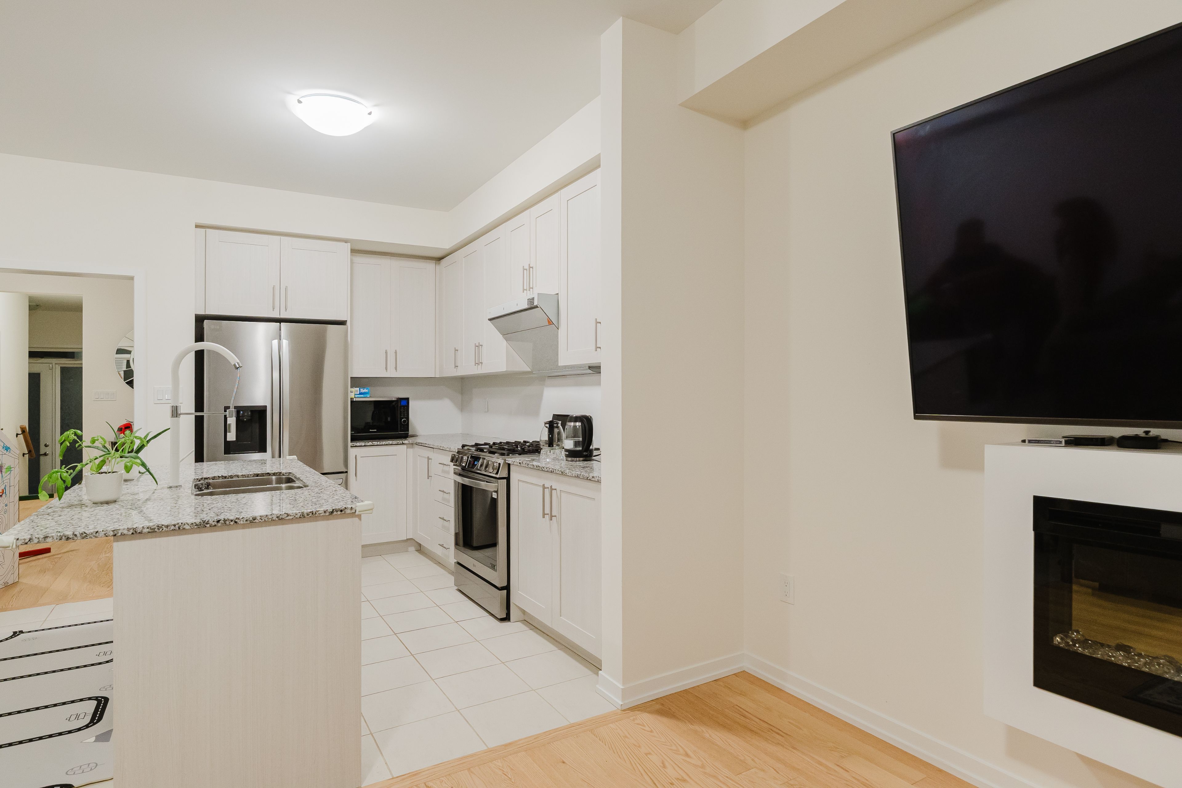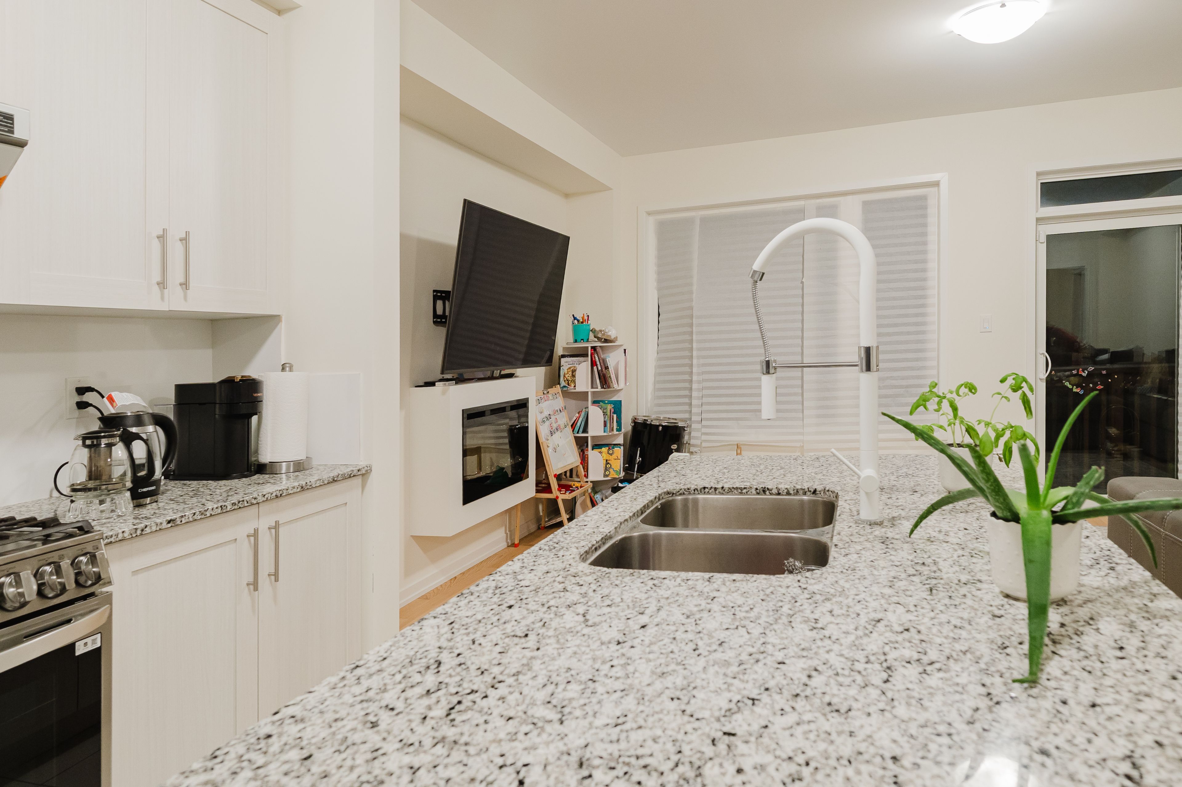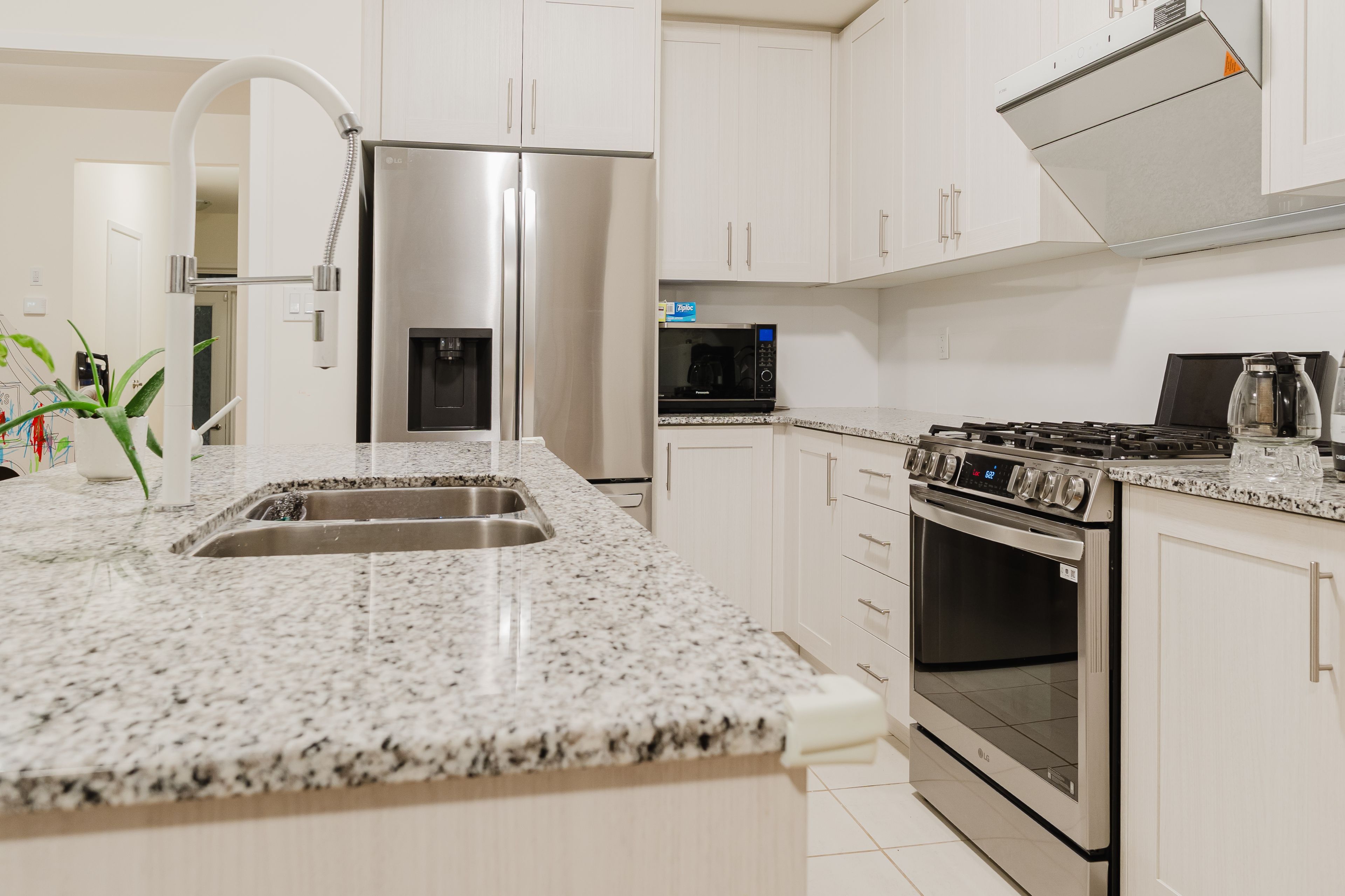 • Gourmet kitchen featuring granite countertops, perfect for cooking and hosting.