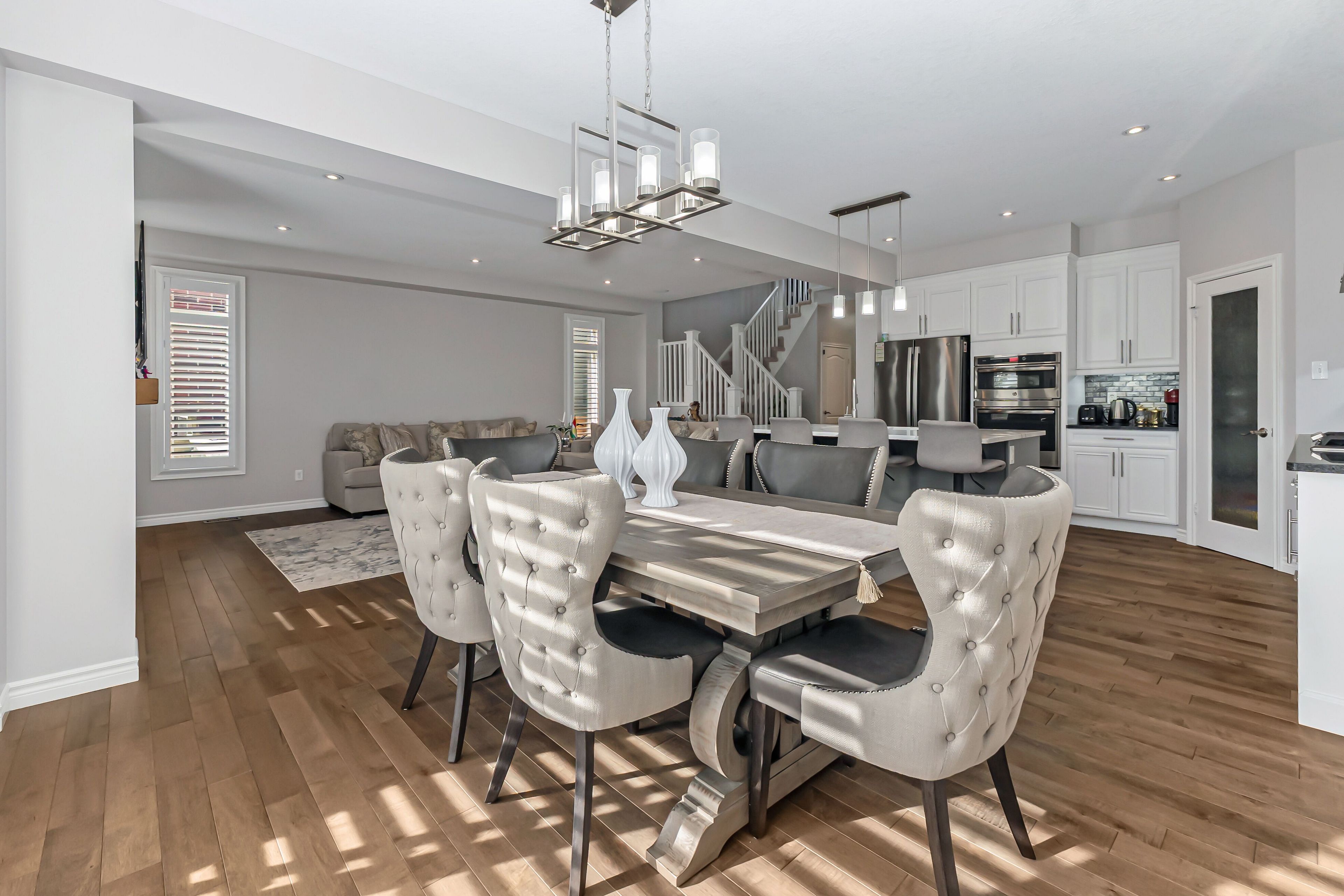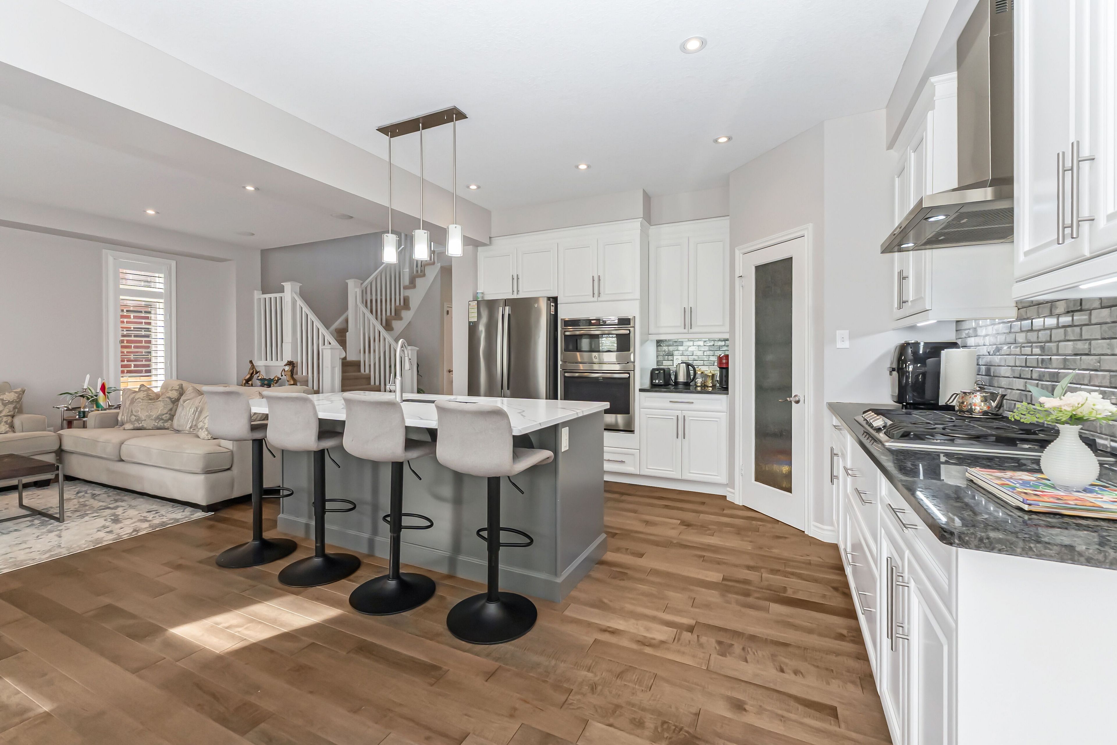 Welcome to this stunning 3+2 bed, 4 bath two-storey home where style, comfort, and privacy come together effortlessly. Backing onto a peaceful wooded area with no rear neighbours, this home offers the ultimate retreat in one of new hamburgs most sought-after neighbourhoods. Step outside to a beautiful composite deck, , the spacious primary bedroom features serene treetop views and a fully renovated ensuite with spa-like finishes . Modern kitchen with quartz countertops throughout, builtin appliances & huge walkin pentry for extra space and thoughtful upgrades at every turn, this home is truly move-in ready. Legal basement apartment for additonal income. Enjoy the perks of small-town living with big-city convenience steps from the wilmot rec centre, mike schout wetlands reserve, local shops, and great restaurants. All just 15 minutes to kitchener-waterloo and 45 minutes to the gta.