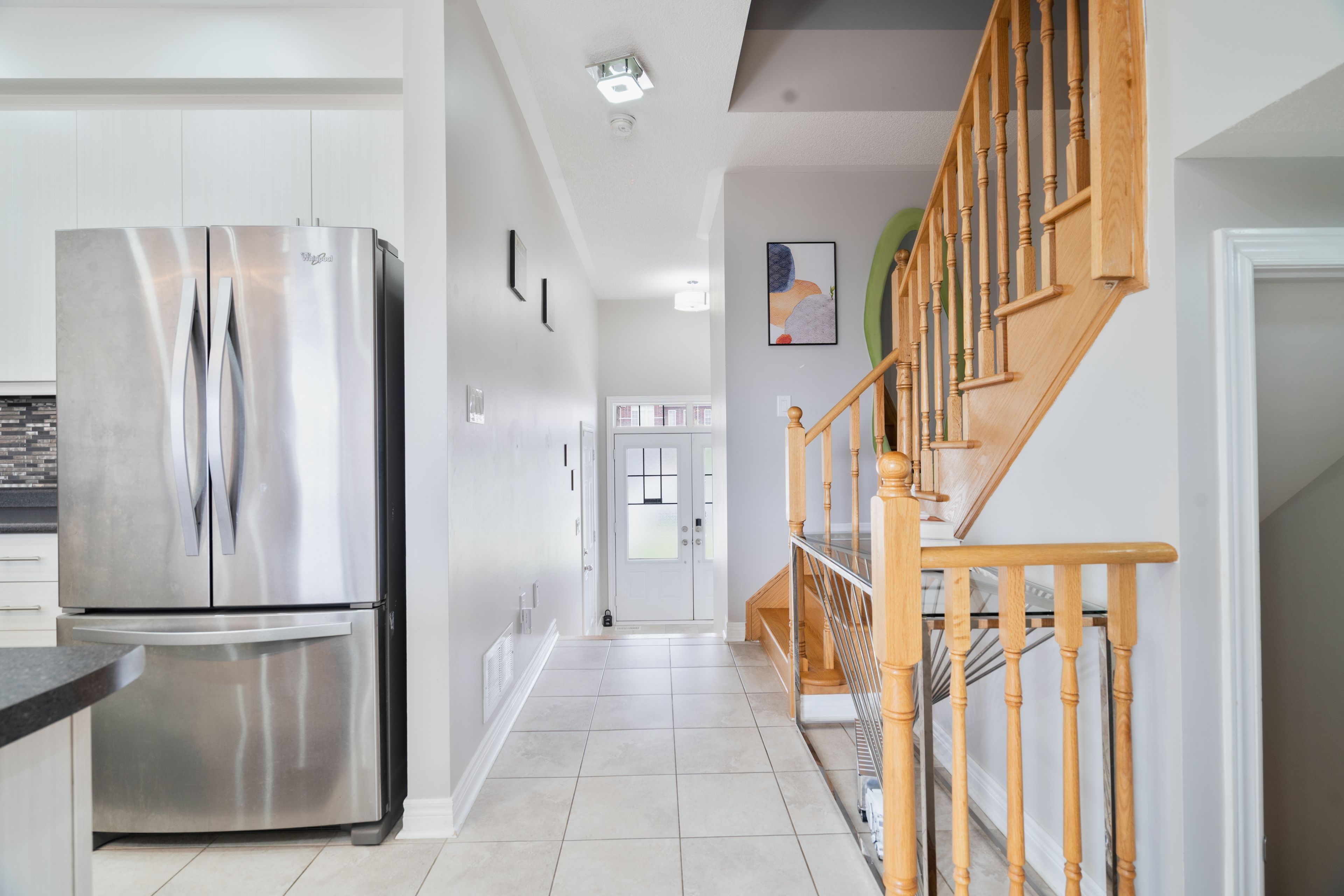 Shows a++! Approx. 2,015 sq. Ft. Of total living space in this immaculate all-brick north end barrie townhouse in a prime and very convenient location, just off bayfield st. Quick highway access, close to simcoe county forest trails, east bayfield community centre, schools, and all major amenities. 3 bed, 2. 5 bath with finished basement and primary ensuite. Open-concept main floor with 9' ceilings, hardwood floors, 42" cabinetry, breakfast bar, inside garage access, and walkout to 16' x 16' deck & fenced yard. Updates include pot lights throughout, exterior pot lights, and security cameras.