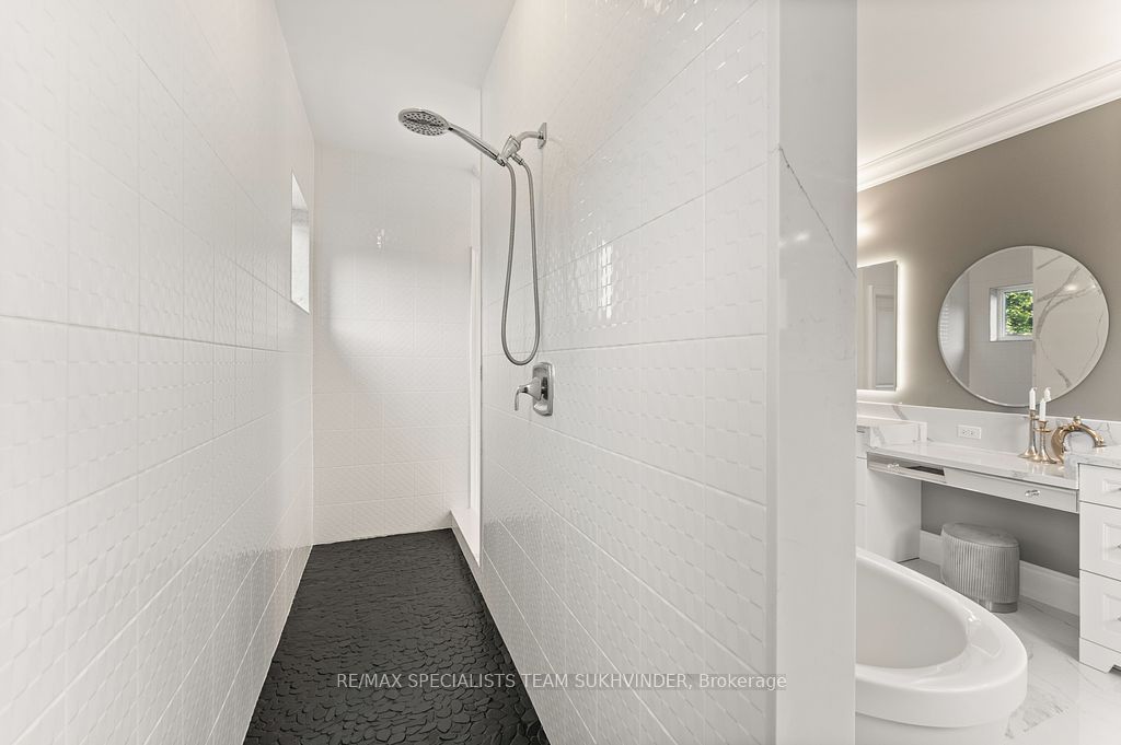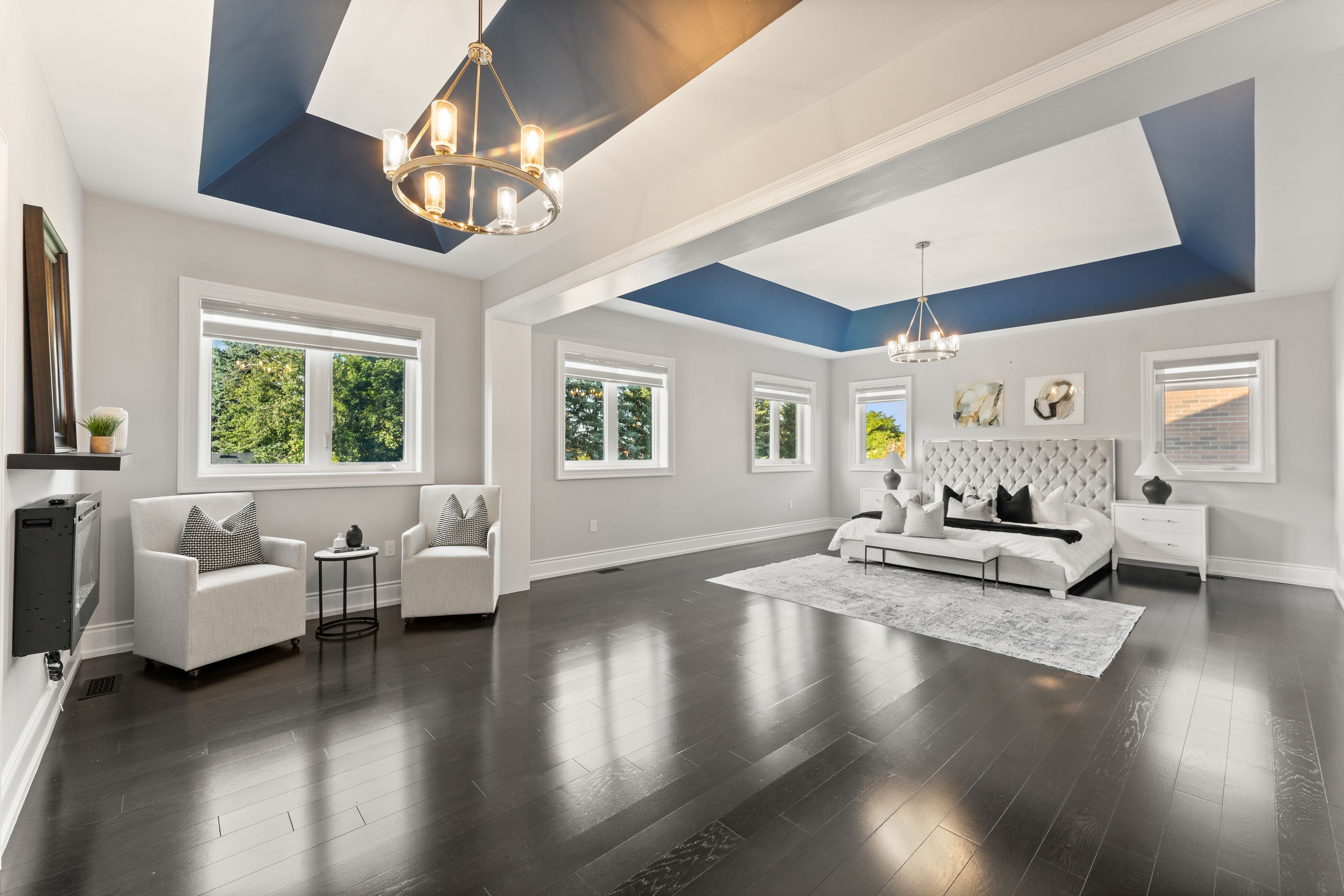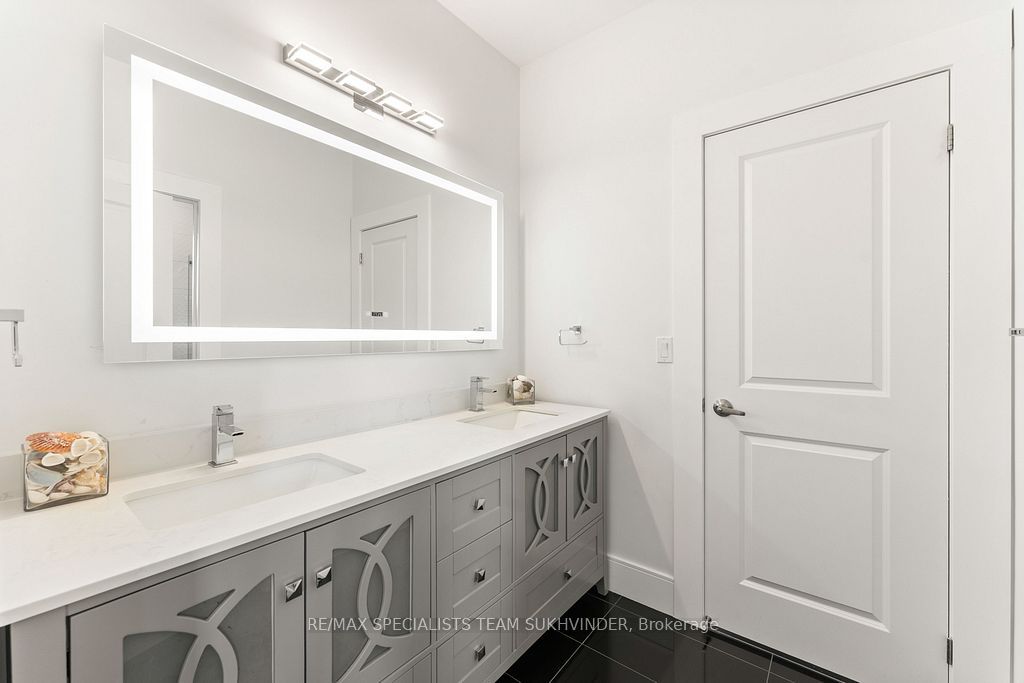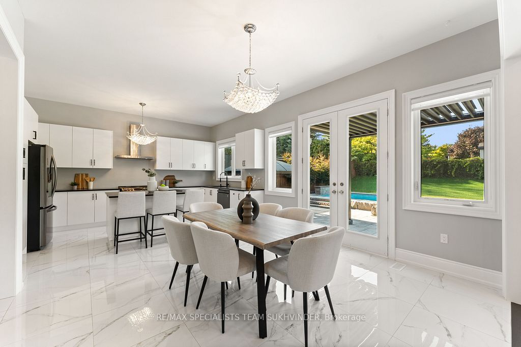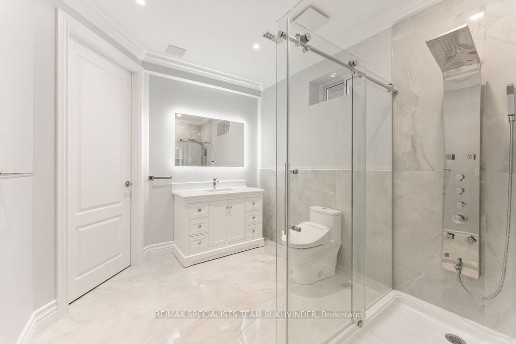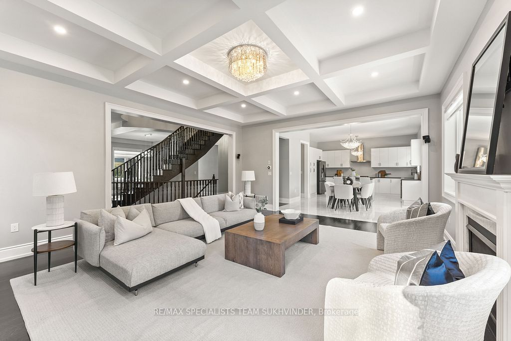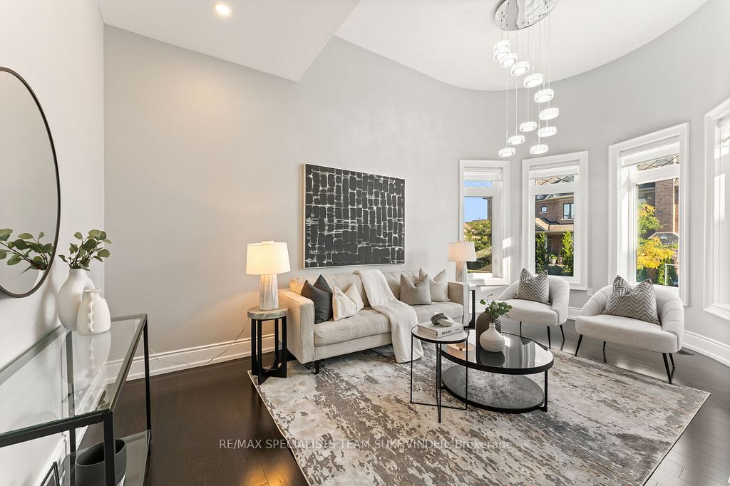 Architecturally captivating estate in sought-after sharon, set on a premium 69 x142 ft lot. Showcasing over 4,100 sq ft above grade, this luxuryresidence blends timeless elegance, modern indulgence, and resort-style living. A 3-car garage with parking for 9 vehicles enhancesconvenience and prestige. Step inside to a dramatic open to above foyer with a curved staircase, dazzling chandelier, and expansive sunlitwindows. The main level boasts soaring 10 ft ceilings, designer-curated finishes, and refined formal entertaining spaces. The chefs kitchen is atrue show piece sleek cabinetry, quartz counters, oversized island, and professional-grade stainless steel appliances flowing seamlessly into aluminous breakfast area and a grand family room with intricate waffle ceilings. The main-floor laundry features heated floors and bespoke builtins, elevating everyday functionality. The upper level offers an elegant primary retreat, complete with a tray ceiling, massive walk-in closet, and aspa-inspired ensuite featuring a freestanding soaker tub, opulent walk-through shower with dual entries, and elegant double vanities. Threeadditional bedrooms are spacious each with access to bathrooms. The lower level hosts an in-law suite with private ensuite, perfect forextended family or guests, with the flexibility to customize the remaining space. Outdoors, the backyard is a private resort professionallylandscaped grounds with extensive stonework, a pergola, hot tub, and a sparkling inground pool with stone surround, complemented by aconvenient outdoor shower. Perfectly designed for both lavish entertaining and tranquil everyday enjoyment. All within minutes to go transit,hwy 404, upper canada mall, top schools, parks, and scenic trails. This exceptional residence defines luxury living in sharon.