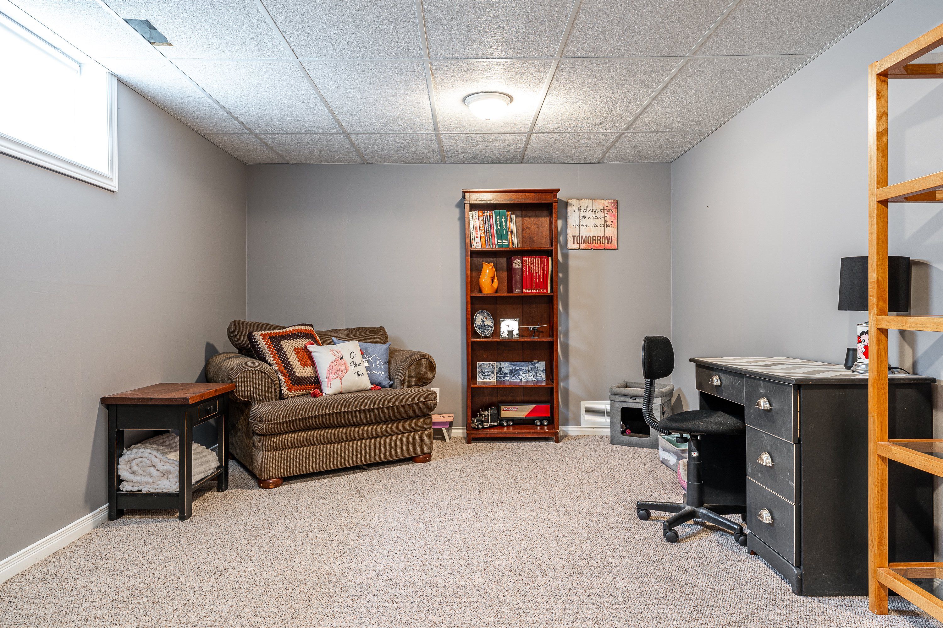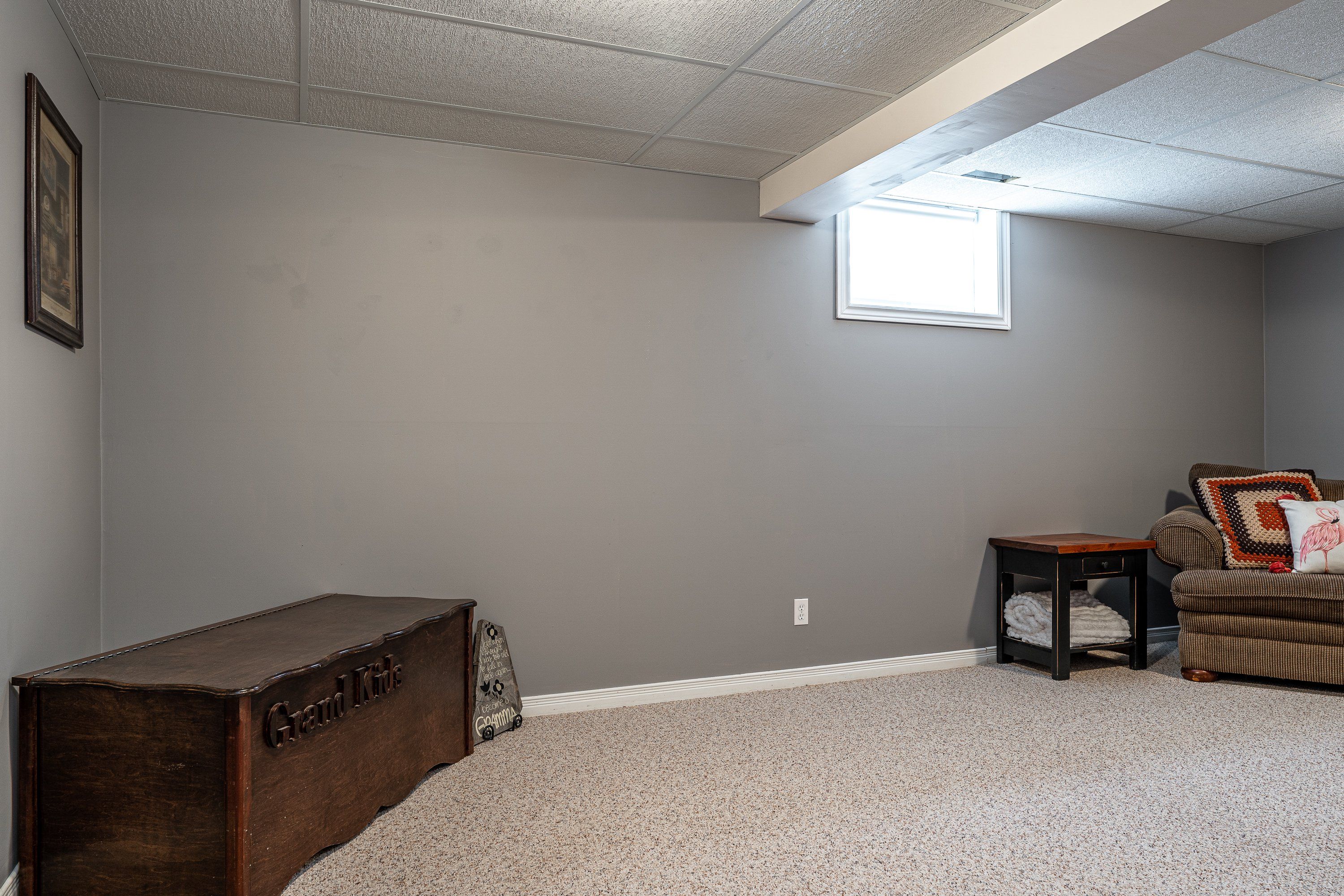 • Finished basement rec room provides extra living space and storage options.