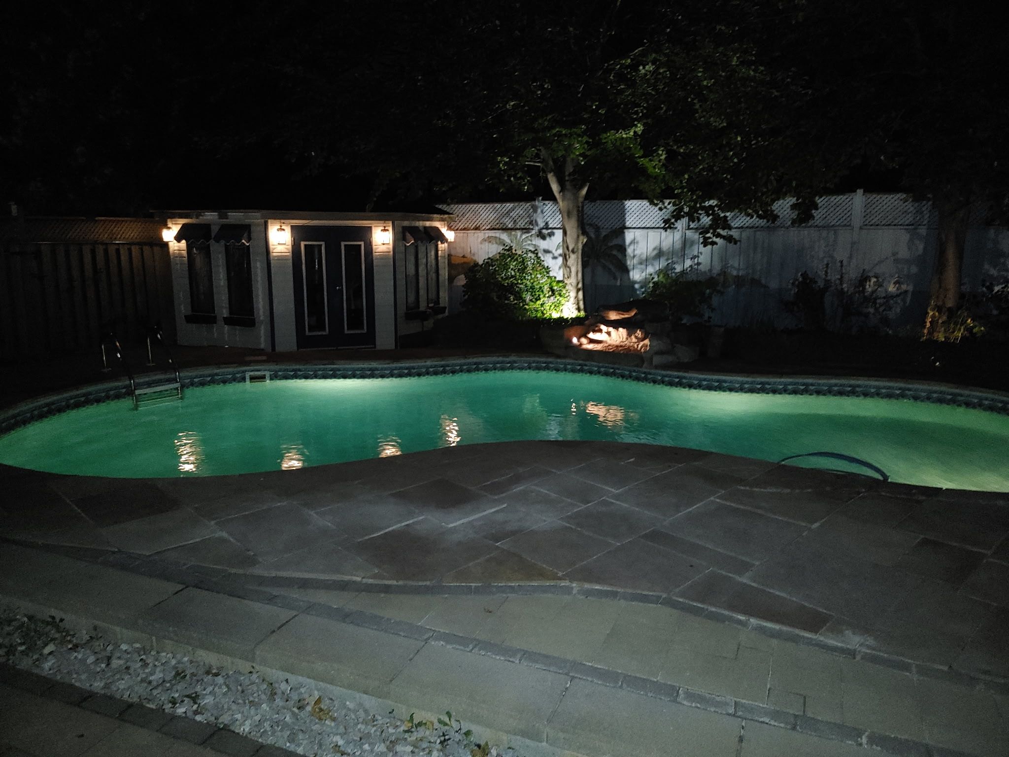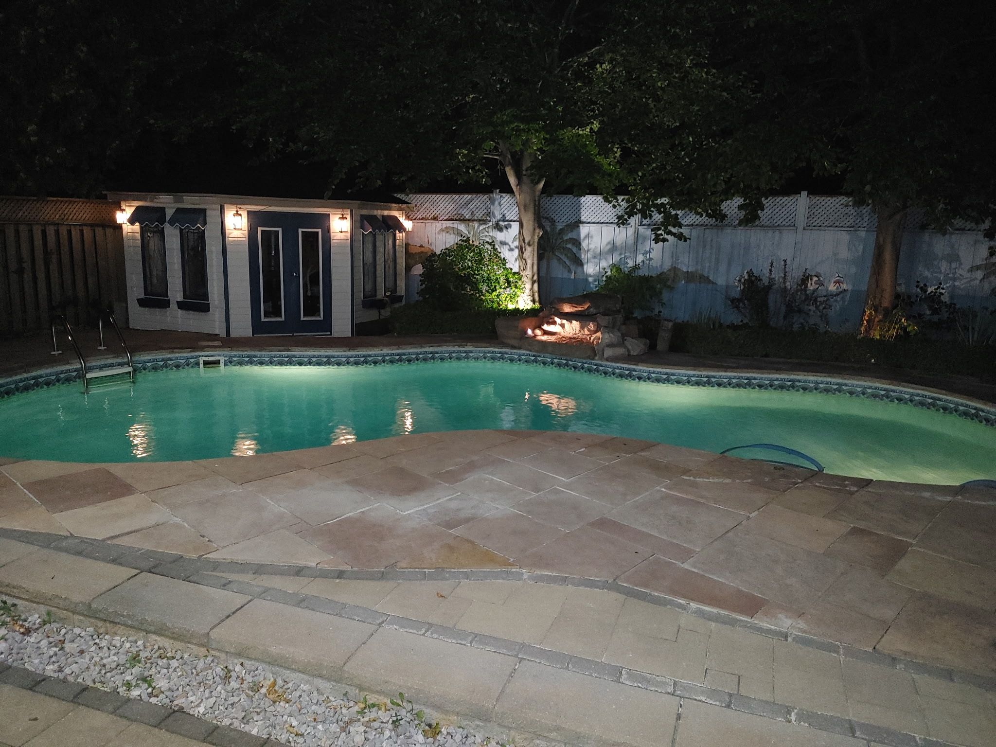 • Inground saltwater swimming pool with a waterfall for relaxation.